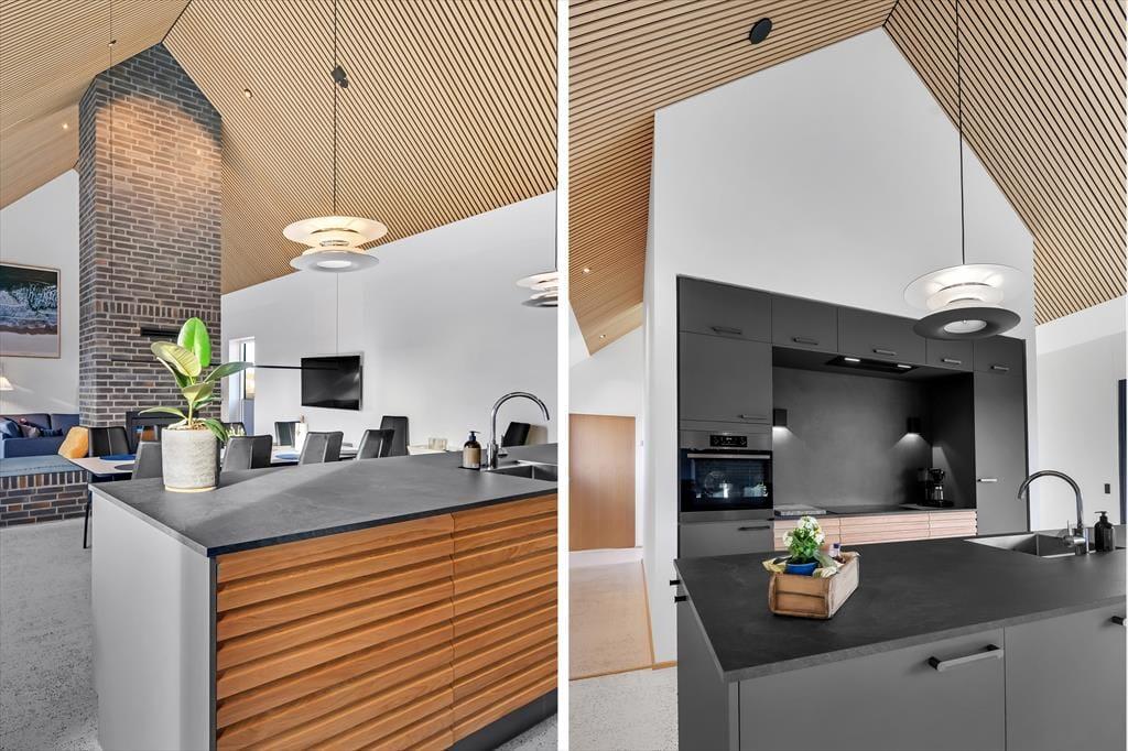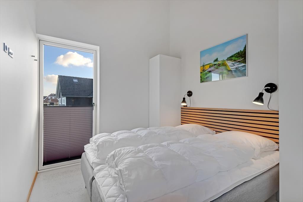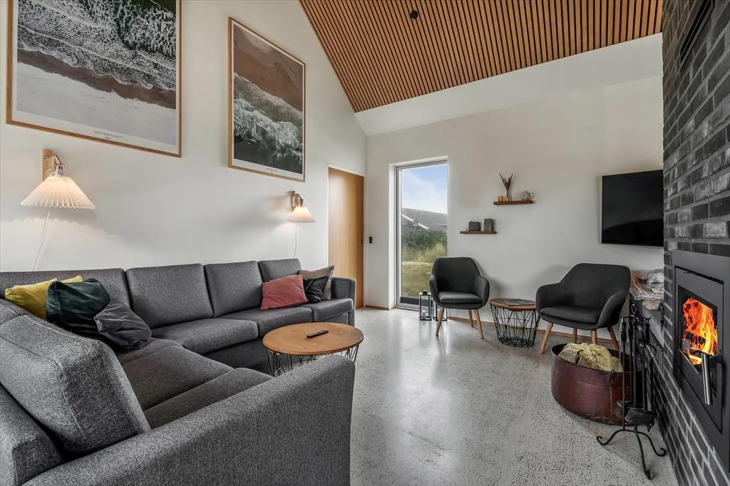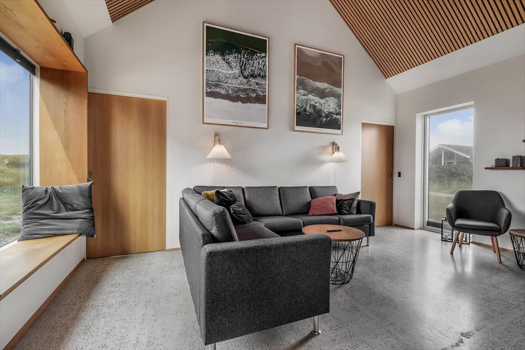 Når du træder ind i dette nye sommerhus, bliver du mødt af en lys og indbydende atmosfære. Stuen og køkkenet ligger i åben forbindelse, hvilket skaber et rummeligt og hyggeligt opholdsområde for hele familien. Store vinduer lader lyset strømme ind og giver udsigt til den smukke klitrække udenfor. Huset har 4 dejlige soveværelser, som alle er smagfuldt indrettet med lyse farver, der skaber en afslappende stemning. Badeværelserne er moderne og veludstyret.