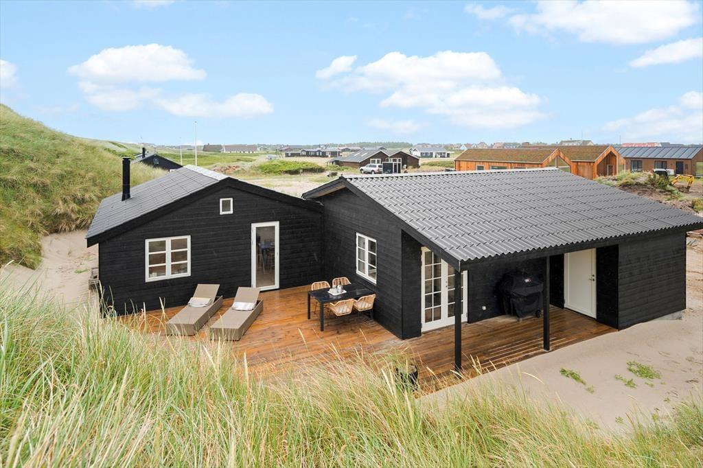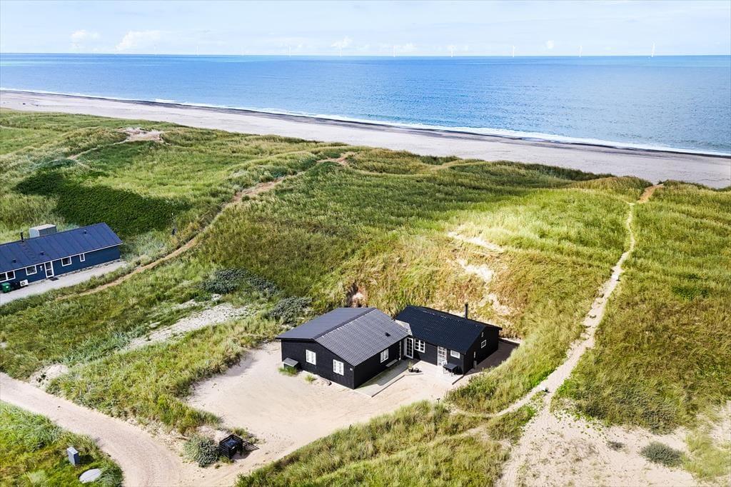 Udendørslivet på Crownvej 20 er noget helt særligt. Her får du to flotte træterrasser at vælge imellem – den ene mod sydvest er delvist overdækket, så du kan nyde udelivet i både sol og let regn. Det er det perfekte sted at nyde en stille morgenstund med fuglesang og frisk havluft eller at samles til grillmiddag i aftensolen. Haven ligger ugeneret i læ af klitterne, og de naturlige omgivelser skaber en tryg ramme for både leg og afslapning – også for familiens hund, som vil elske friheden og de mange nye dufte. Lyset, vinden og den særlige stemning ved Vesterhavet gør sig stærkt gældende her – og du vil hurtigt føle dig forbundet med den omkringliggende natur.