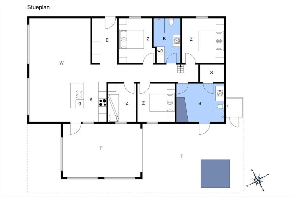 Sommerhusets udemiljø er helt i top – med en stor og solrig terrasse, hvor der både er plads til afslapning, samvær og lidt ekstra hverdagsluksus. Her finder du nemlig både en udendørs spa og en udebruser, så du nemt kan skifte mellem kolde dukkerter i havet og varme bobler under åben himmel. Terrassen er indrettet, så du kan nyde solen hele dagen, og når aftenen falder på, kan du tænde op i grillen og samle familien til middag i det fri. Den omkringliggende græsplæne giver god plads til leg og boldspil, og din hund kan trygt være med overalt. Her får du en dejlig base til at nyde udelivet i ro og fred – med havbrisen i håret og fuglesang i baggrunden.