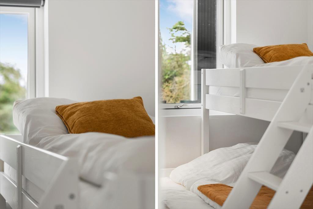 Når du træder ind i sommerhuset på Gloryvej 14 A, møder du et lyst og velindrettet hjem, hvor alt er placeret med omtanke. Indretningen er moderne og stilfuld, uden at gå på kompromis med hyggen – og der er masser af plads til både nærvær og ro. Køkken og stue ligger i åben forbindelse og udgør det naturlige samlingspunkt, hvor ferien leves med god mad, brætspil og afslappende stunder i sofaen. Uanset årstid er det skønt at kunne tænde op i brændeovnen og mærke varmen brede sig i rummet. Sommerhuset rummer også en hems, der hurtigt bliver børnenes favoritsted – en hyggelig lille oase til leg og læsning. Alt i alt får du her en feriebolig, hvor det er nemt at lande og føle sig hjemme.