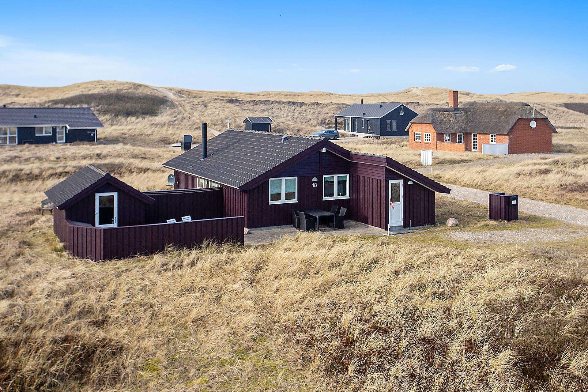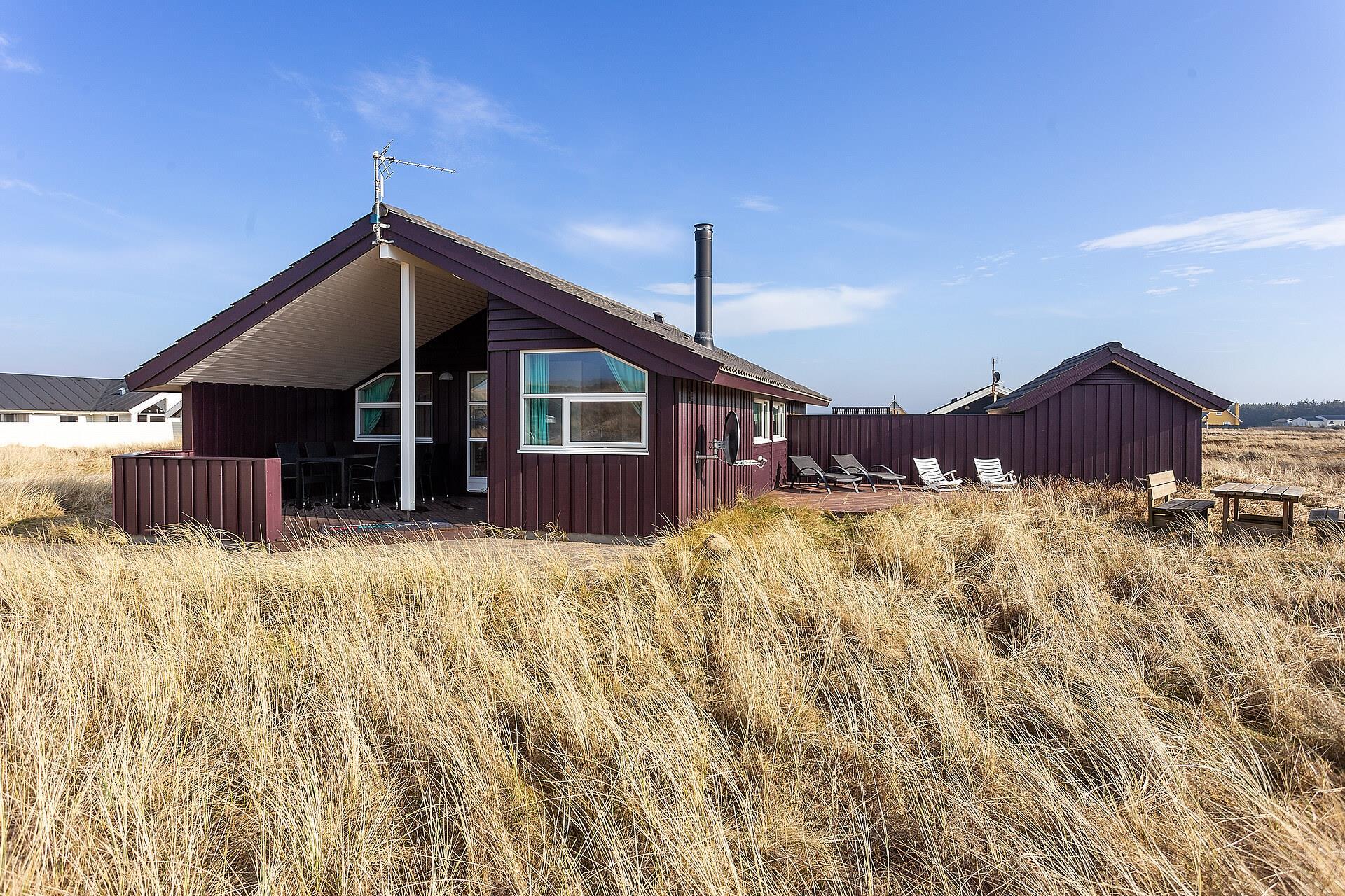 Huset har udgang til et flot terrasseanlæg. En af terrasserne er delvis overdækket og den anden er åben, men der forefindes selvfølgelig havemøbler, solvogne og grill. På terrassen er der adgang til en skøn udendørs spa, så tænk sig at sidde udenfor og nyde udsigten til klitterne og høre havets brusen i baggrunden med et dejlig glas vin og bare slappe af medens spaen sørger for at kroppen blir godt masseret igennem. Husets beliggenhed tæt på Vesterhavet gør det meget nemt at gå over klitterne og straks være nede på stranden, som hver eneste dag uanset årstid giver en ny og dejlig oplevelse. Eller hvad med at gå op på klitten ved aftenstide og sidde og nyde den flotte solnedgang over Vesterhavet. Et absolut kvalitetshus som er perfekt uanset hvilken årstid i ønsker at holde ferie.