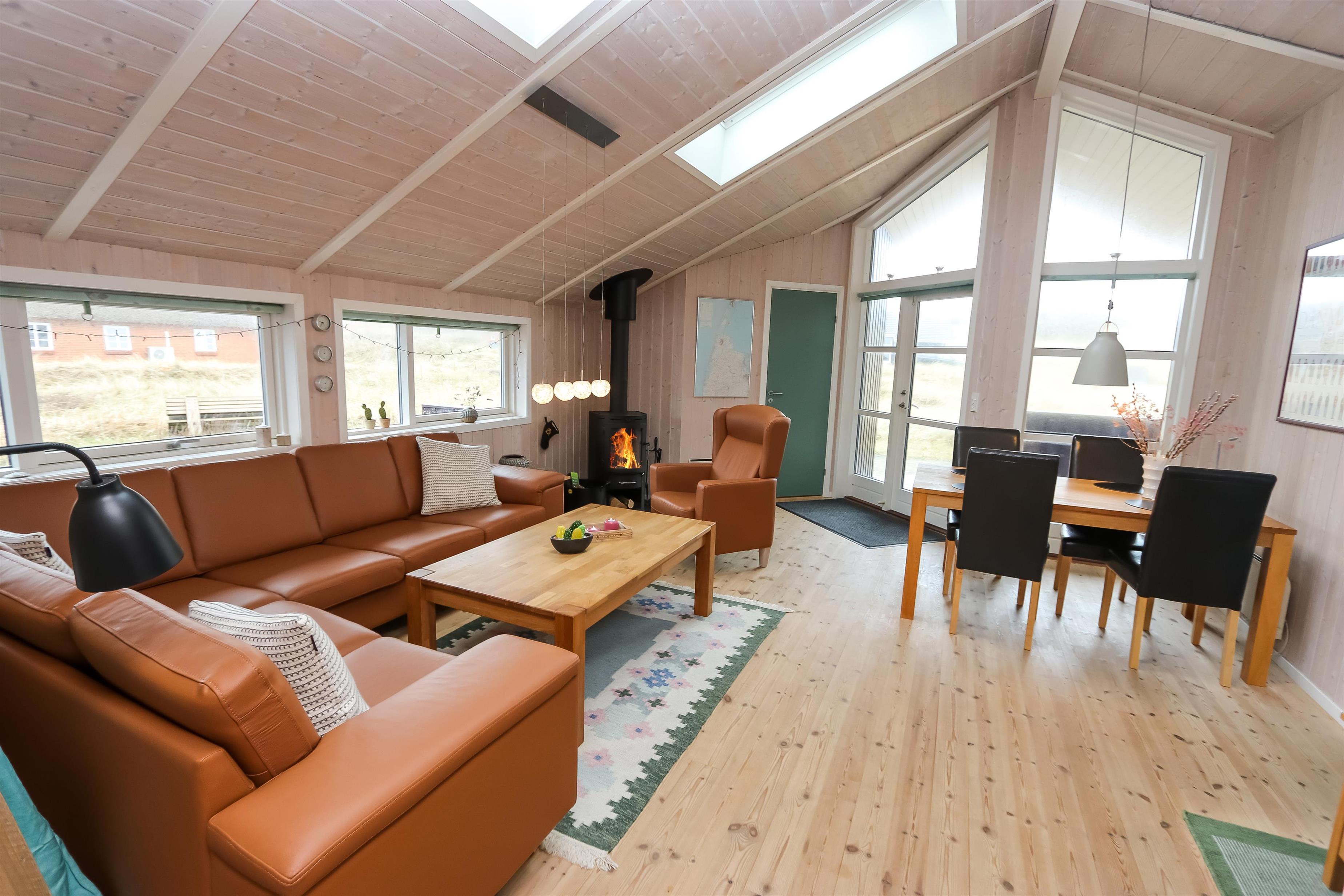 Godt feriehus på 99 m2 bygget i 2005 og løbende renoveret. Der er 3 soverum i huset (1DS, 1ES, 2ES). Desuden er der en hems, hvor der er 2 sovemuligheder. Husets stue er indrettet med lædermøbler af god kvalitet og indeholder desuden TV med danske og tyske programmer, DVD og CD-afspiller samt trægulv. Husets brændeovn og varmepumpe er medvirkende til at forbrugsomkostninger er lavere. Dejlig køkken med glaskeramisk komfur, opvaskemaskine, emhætte, mikroovn og køle-/fryseskab. Gulvet i køkkenafdelingen er linoleum. Der er 2 badeværelser i huset. Det ene badeværelse er med toilet, håndvask, bruser, spa og adgang til sauna. Det andet badeværelse er med toilet og håndvask. Der forefindes vaskemaskine og tørretumbler. Har man el-bil eller en Plug-In hybrid, så er der Ladeboks ved huset. Huset er et ikke ryger hus og husdyr er ikke tilladt.