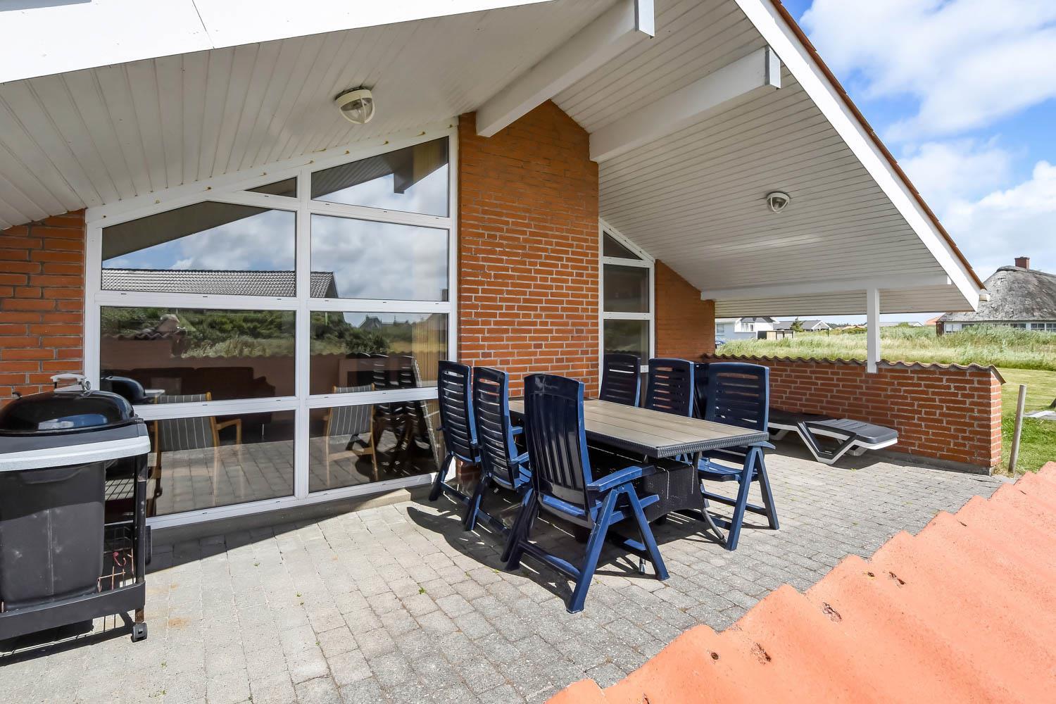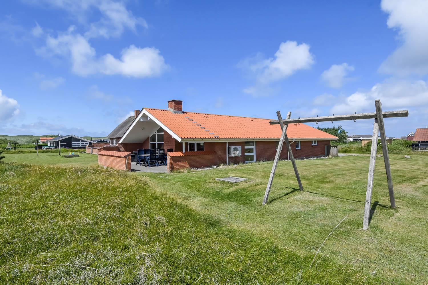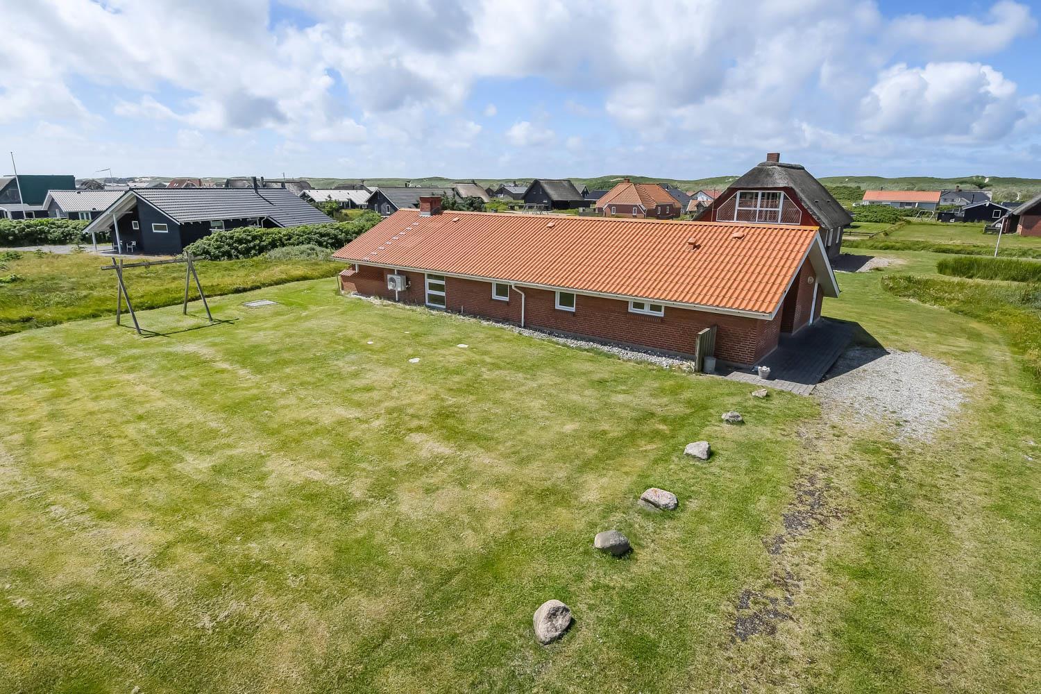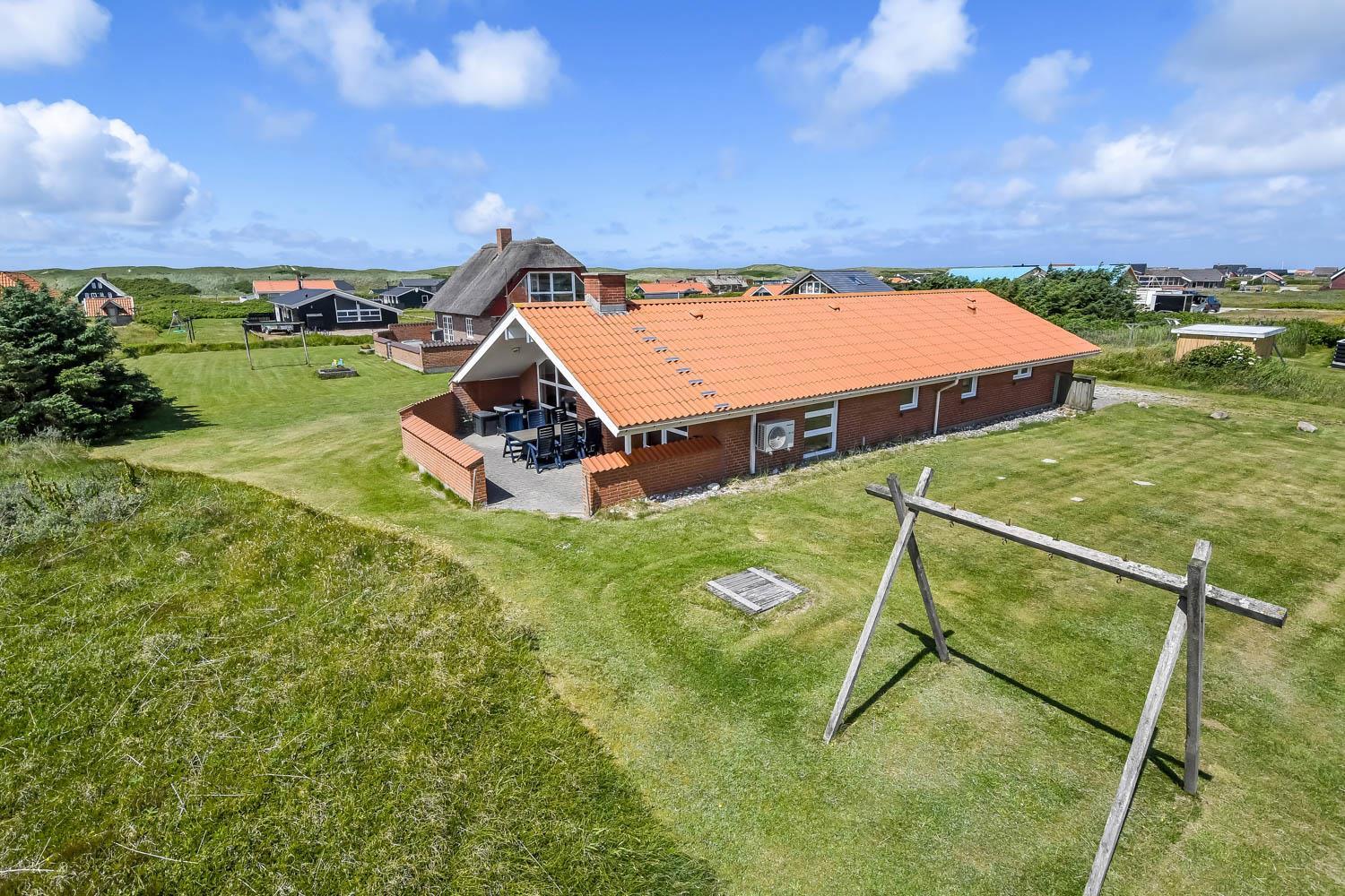 Huset er beliggende på en 1573 m2 stor naturgrund tæt på Vesterhavet. Fra stuen er der udgang til en delvis overdækket terrasse med læ mur. Der er havemøbler, solvogne og grill. På grunden er der gynge og sandkasse. Husets beliggenhed blot 200 m fra Vesterhavet er ideelt så man kan komme på stranden til fods. Ønsker man at opleve andet end strand og vand ligger både Thyborøn og Lemvig kun en kort køretur væk. Den hyggelige havneby Thyborøn byder på mange gode forretninger, aktiviteter og attraktioner som er et besøg værd. Lemvig som er en gammel handelsby, ligger smukt i bakker og bølgers land, her er der en skøn havnepromenade med legeplads, gågade med specialforretninger og flere gode restauranter. Dette hus er meget velegnet til en familie eller 2 familier som ønsker at holde ferien sammen i et dejligt hus tæt på Vesterhavet.