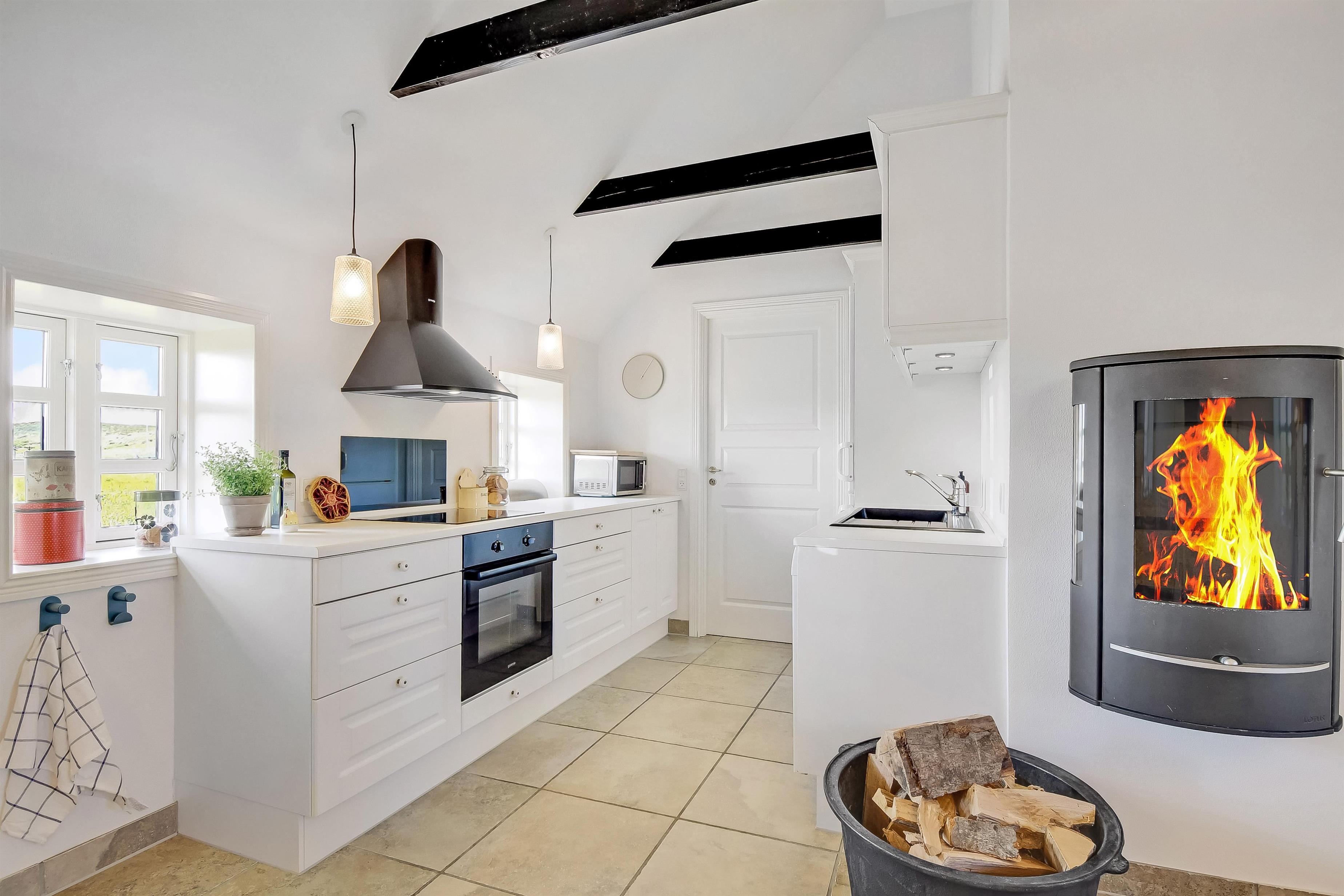 Allerede når bilen rammer grusvejen, med få meter til huset, bliver det klart at belliggenhed og hus er noget ganske særligt. Når man drejer ind på grunden og parkerer bilen begynder ferien. En dejlig entre byder velkommen (men pas på – døren er lav). Dejlig opholdsstue kombineret med et flot køkkenhjørne byder jer velkommen. Køkkenet har alt i service og køkkengrej og er også udstyret med keramisk kogeplade, indbygningsovn, emhætte, køleskab med fryseboks og opvaskemaskine. Tæt ved køkkenet står spisebordet til 6 personer, som hele familien kan samles ved når sulten skal stilles. Opholdsstuen har en polstersofa, fibernet-TV som også har en Chromecast så der er mulighed for streaming af radio og TV programmer samt adgang via en stige til en hyggelig hems – som de små helt sikkert sætter stor pris på. En flot væghængt brændeovn kan opvarme huset, så man kan holde varmen på de kolde efterårsdage. 3 flotte værelser (1DS, 1DS, 1DS). Fantastisk badeværelse med muret bruseniche, vaskesøjle med vaskemaskine og tørretumbler, toilet, håndvask og klinkegulv med gulvvarme samt lækkert spabad. Hele huset har klinkegulv med gulvvarme, så du aldrig fryser om fødderne, ligesom det er meget rengøringsvenligt. Opholdsrummet er bygget i kip og det føles rummeligt og luftigt. Ikke ryger hus. Husdyr ikke tilladt.
