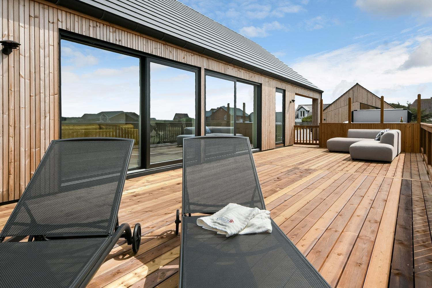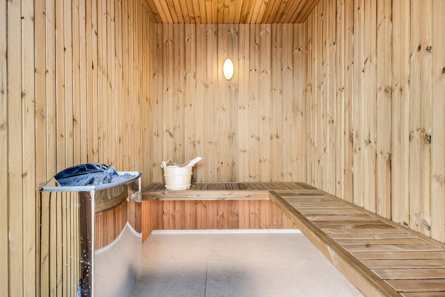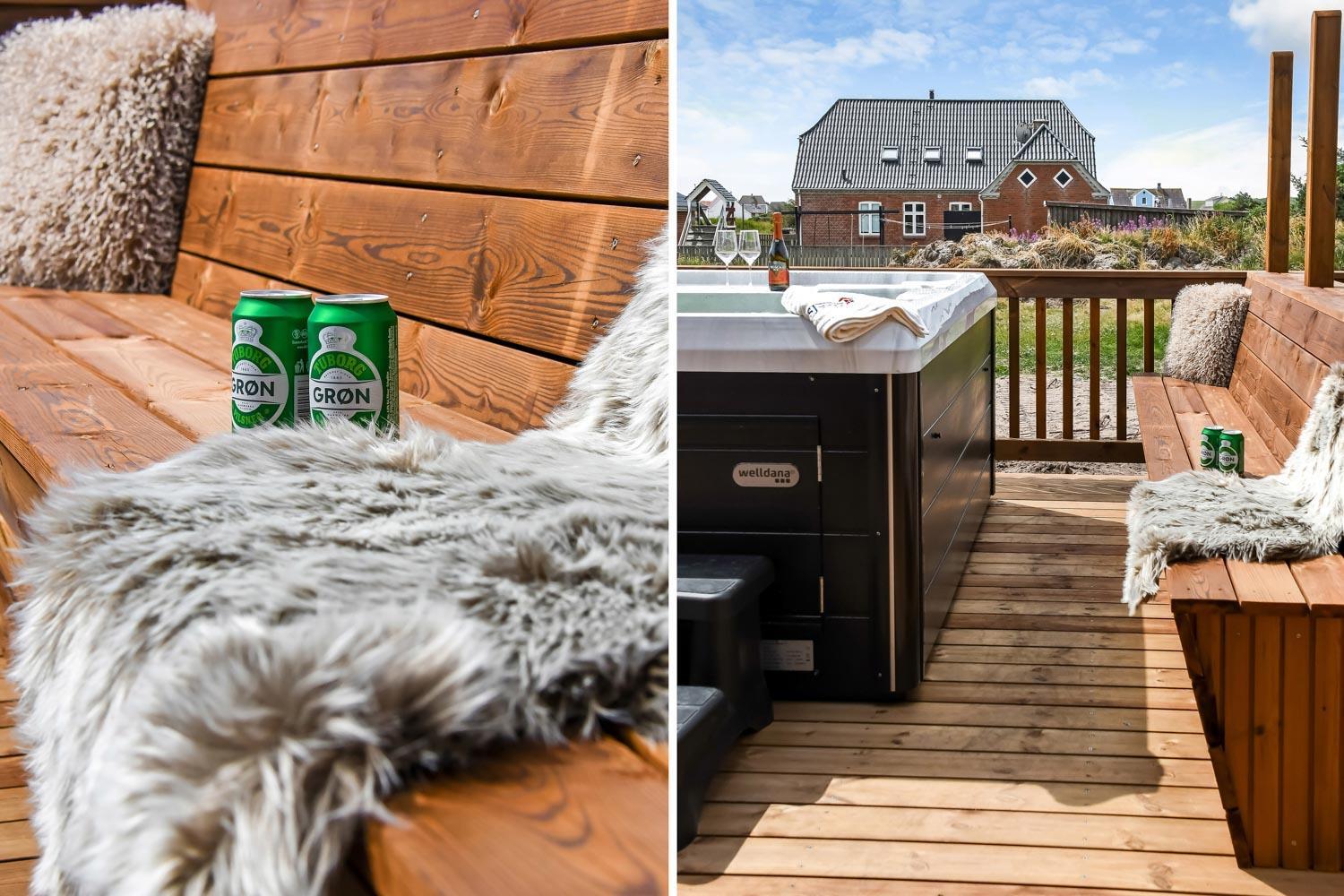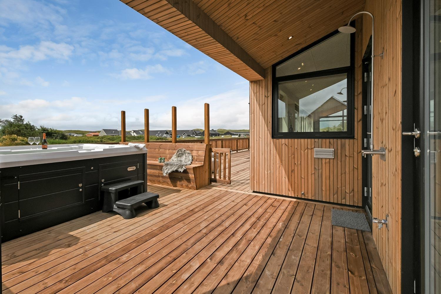 Efter en frisk gåtur i klitterne kan du vælge mellem den udendørs spa eller en tur i saunaen som har indgang udefra, og der er desuden en udebruser, hvor udsigten over klitterne fuldender oplevelsen. Denne afdeling på terrassen er afskærmet og helt privat.
