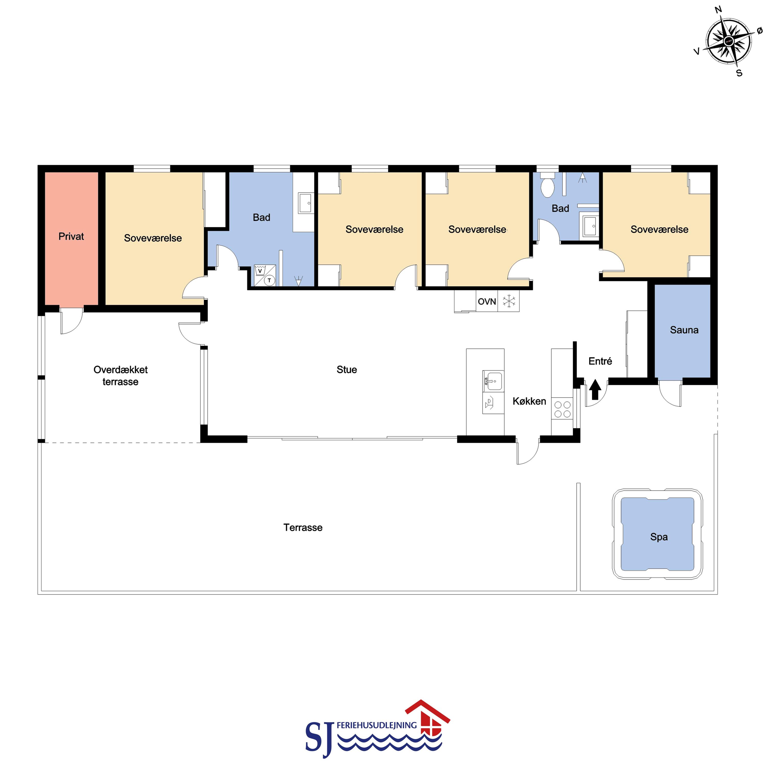 Huset rummer op til 8 personer og en hund, fordelt på 4 gode værelser, og har et stort, åbent fællesrum med store panoramavinduer. Her kan I nyde udsigten til klitterne ved Vesterhavet, dagen lang.