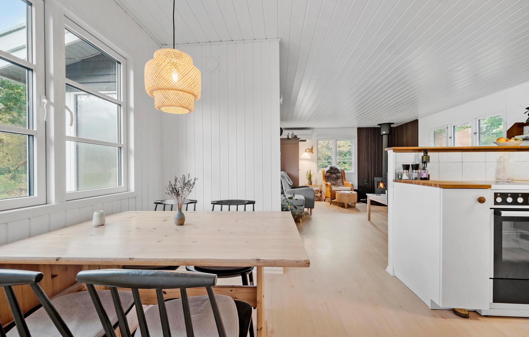 Ved den maleriske Yderby Lyng Strand venter jer en uforglemmelig familieferie fyldt med fælles oplevelser og afslappende stunder. Start dagen med en lækker morgenmad, som I kan tilberede i husets åbne og veludstyrede køkken. Nyd jeres måltider ved det hyggelige spisebord eller i den indbydende vinterhave. Overalt kan I nyde feriehusets behagelige atmosfære i ro og mag.