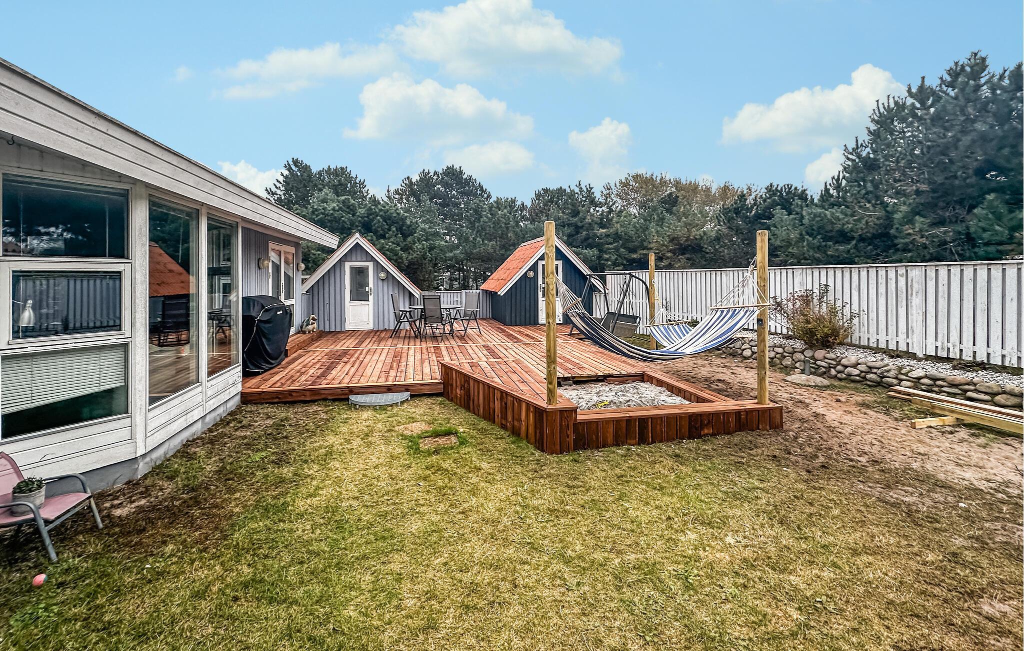 Familievenligt træhus i Yderby Lyng med stor grund og tæt på vandet, perfekt til afslapning og aktiviteter.
