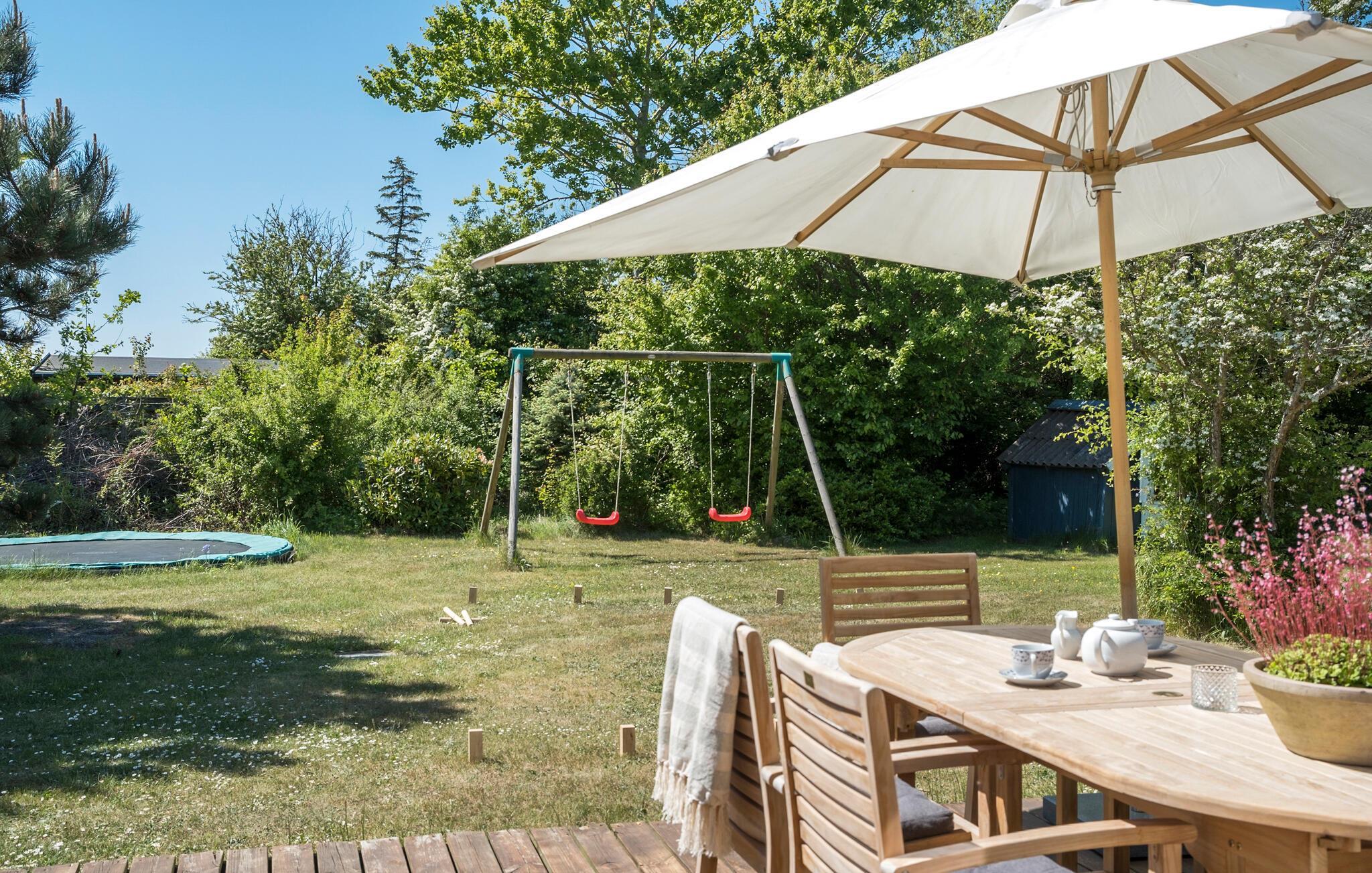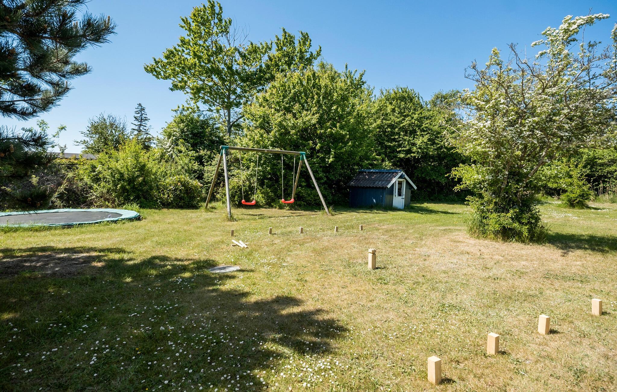 Der er også tænkt på de yngste feriegæster. Mens de voksne slapper af på terrassen, kan børnene boltre sig på trampolinen eller på gyngerne. Det lille legehus er et godt sted til teselskaber, mens brændeovnen lægger op til samvær i en hyggelig atmosfære. Shelteren er også et sted, der vil glæde børnene.