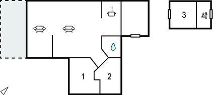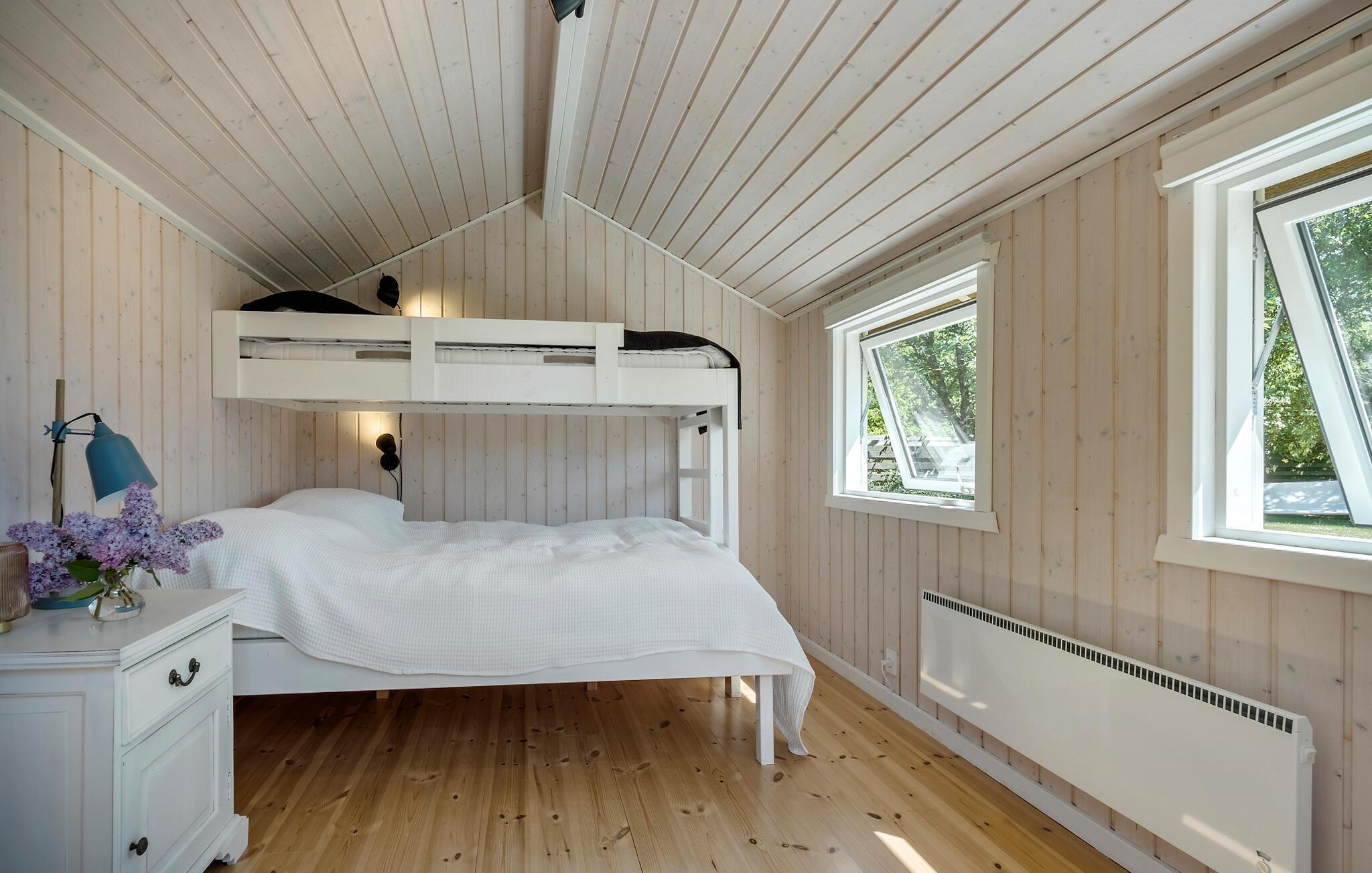 Soveværelse (nr. 1) - 2 Sovepladser. (Dobbeltseng(e)). 1 Soveplads. (Etageseng(e)).