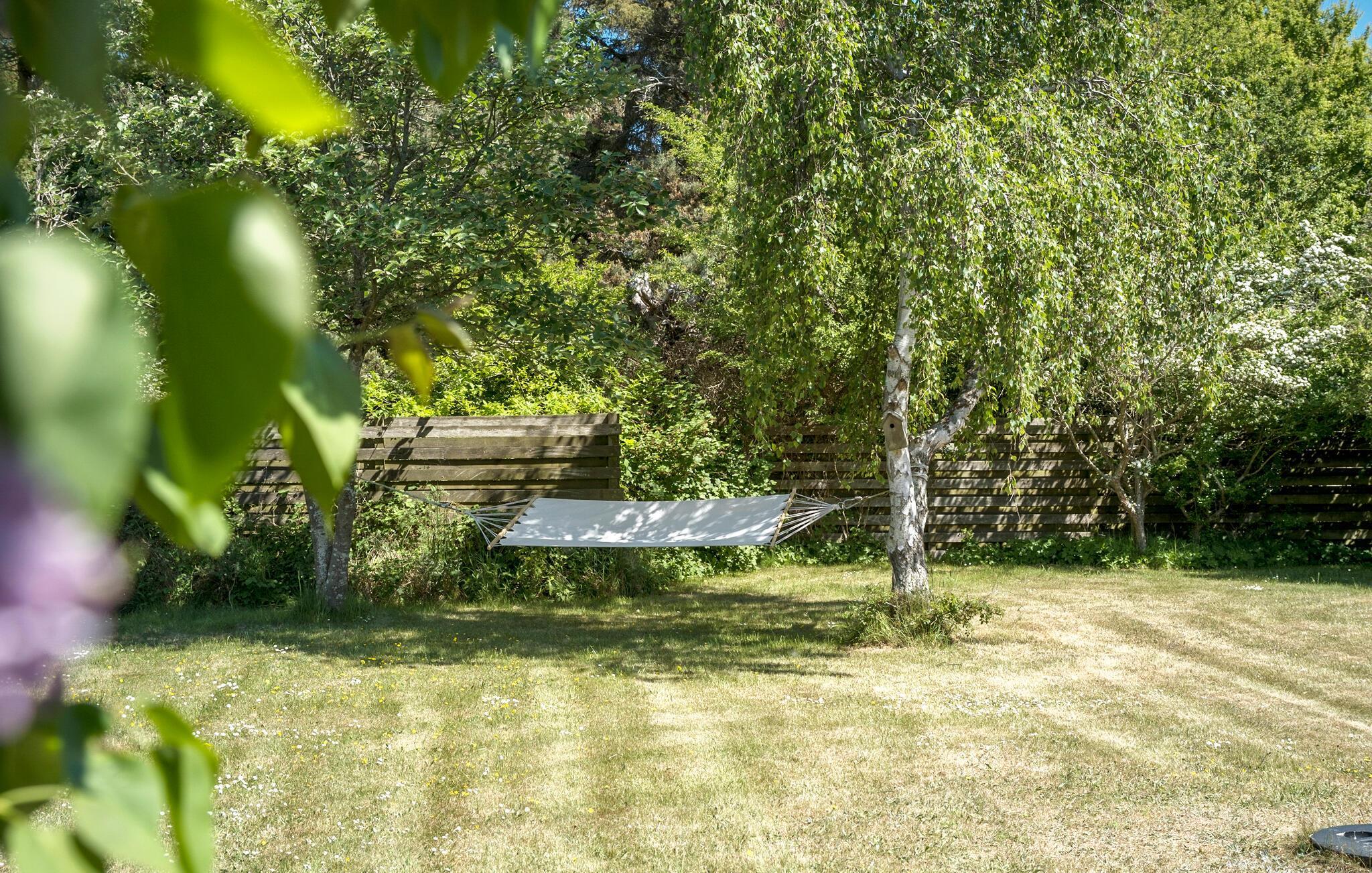 Hyggeligt feriehus ved Yderby Lyng Strand med sauna, trampolin og tæt på stranden.