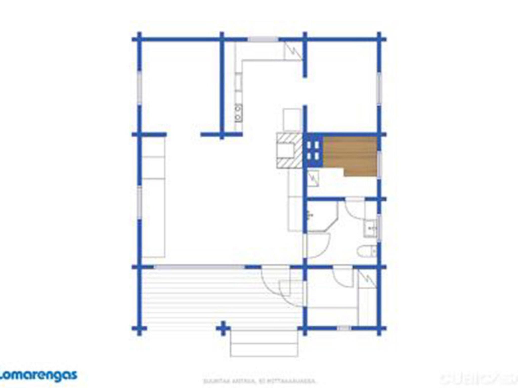 Log cottage 1990, renovated in 2016, kitchen-living room with sofa bed, sleeping alcove double bed (120 cm wide), sleeping alcove 1 bed (bed width 90 cm), washroom, sauna (electric stove), dressing room, terrace.