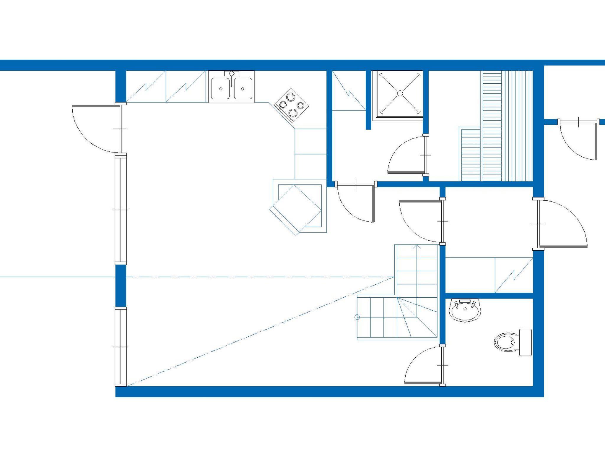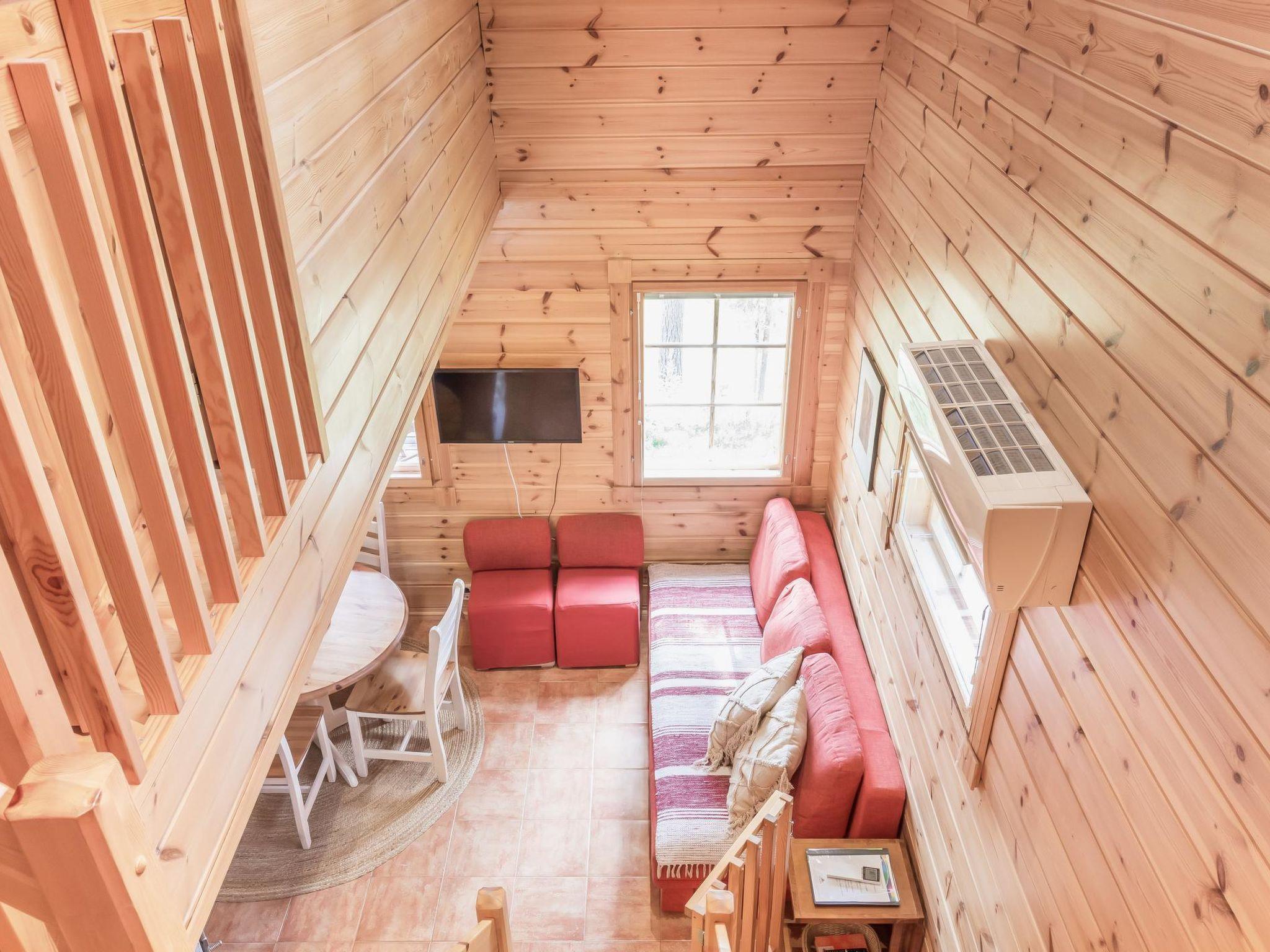 Upstairs one bedroom with a double bed, lobby with two separate beds and two easy-chairs as extra beds. Air sourced heat pump.