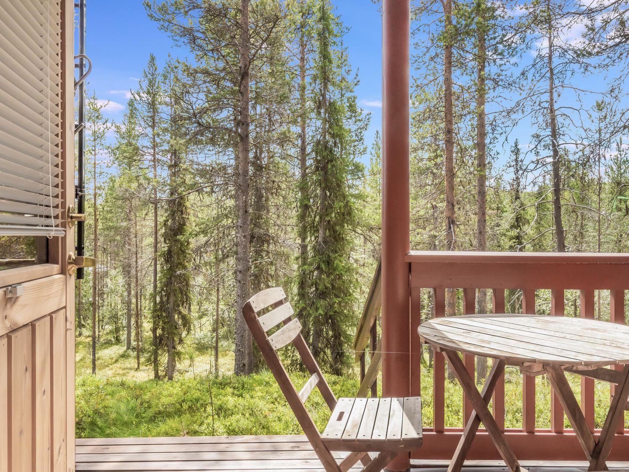 40 km north of Kolari, lake Äkäslompolo 1,5 km, lake Pikku-Kaupinjärvi 500 m, lake Iso-Kaupinjärvi 1,2 km, swimming beach 3 km. Log rowhouse apartment 50 m2 + upstairs 12 m2 , built 2005. IN downstairs livingroom/kitchen,sauna (electric), shower, separate toilet.