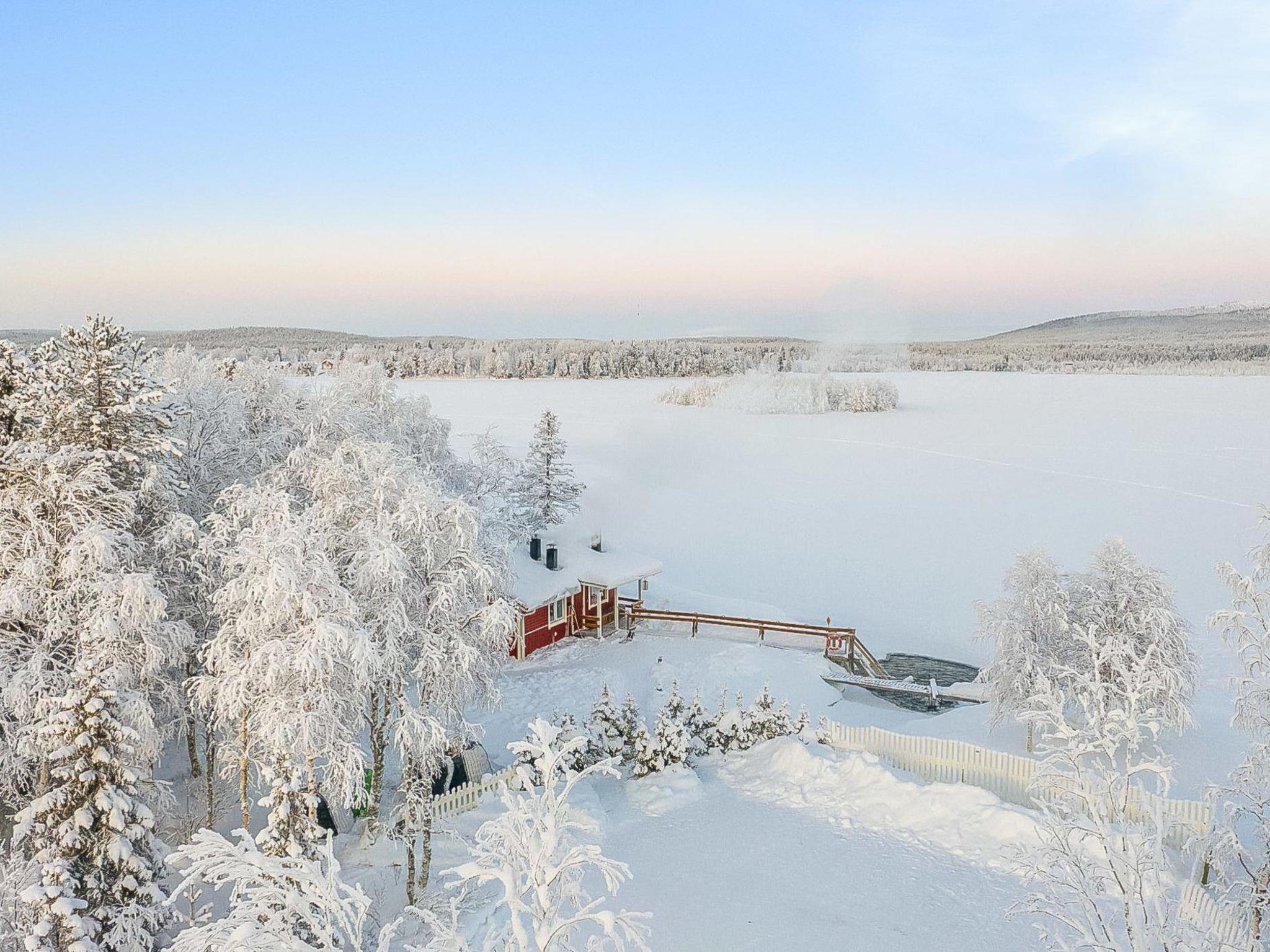 200 km north of Rovaniemi, L. Äkäslompolojärvi 220 m (length 1 km, width 2 km), shallow and deep shore, hard clay bottom, public beach, boats shared. Wooden flat 1970, renovated 2002, at other end ski care room for cottage village, living room/kitchen, bedroom 2 beds, bedroom double bed +1 bed, washroom, sauna (elec. stove ), porch. Fireplace is special, one made of metal. Free Wi-fi and Northern Lights alarm. By arrangement also lakeshore sauna, distance 220 m. Roofed grill shared, distance 20 m.