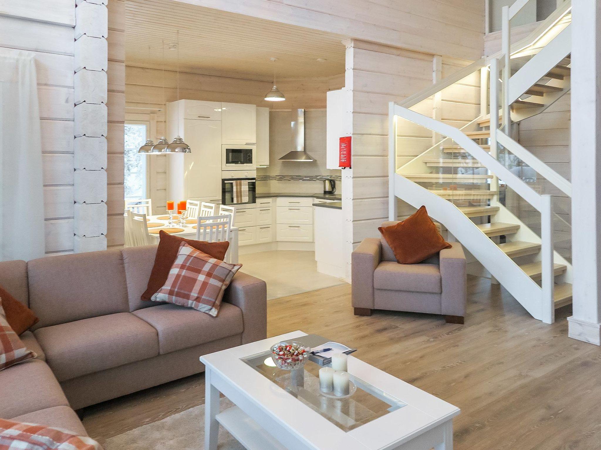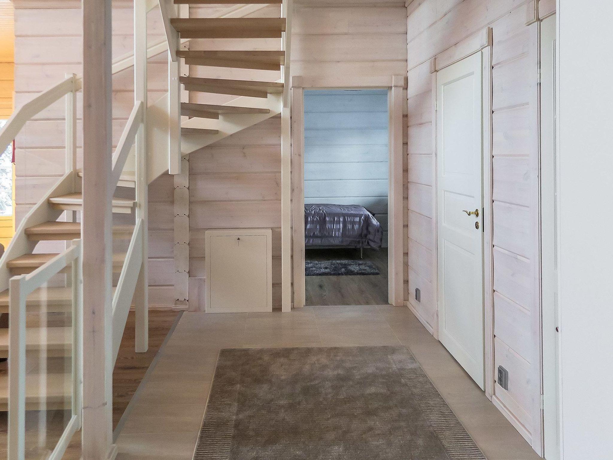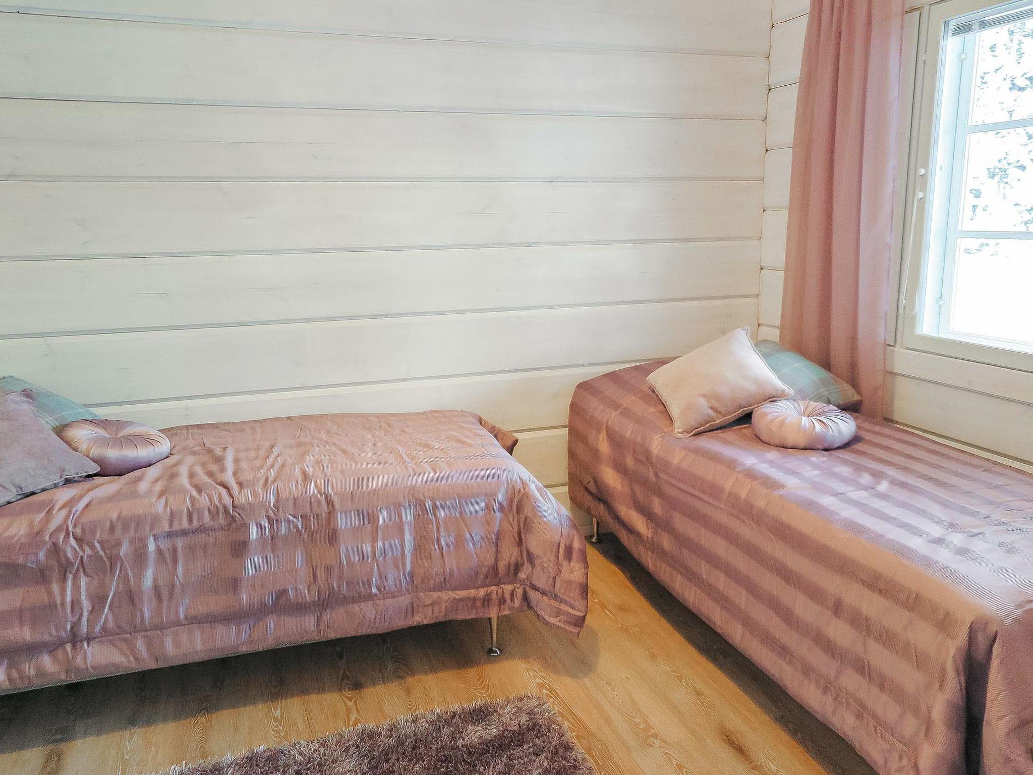 40 km north of Kolari, in Äkäslompolo, a log cottage, built 2016. 150 m², downstairs with 2 bedrooms, one with double bed and other with 2 separate beds, livingroom/kitchen, spacious sauna (electric heated), washroom, toilet. Upstairs with 2 bedrooms, one with double bed, other with 2 separate beds, toilet, shower, hydro massage bath. Other: Internet USB modem, warm storage with ski waxing table.