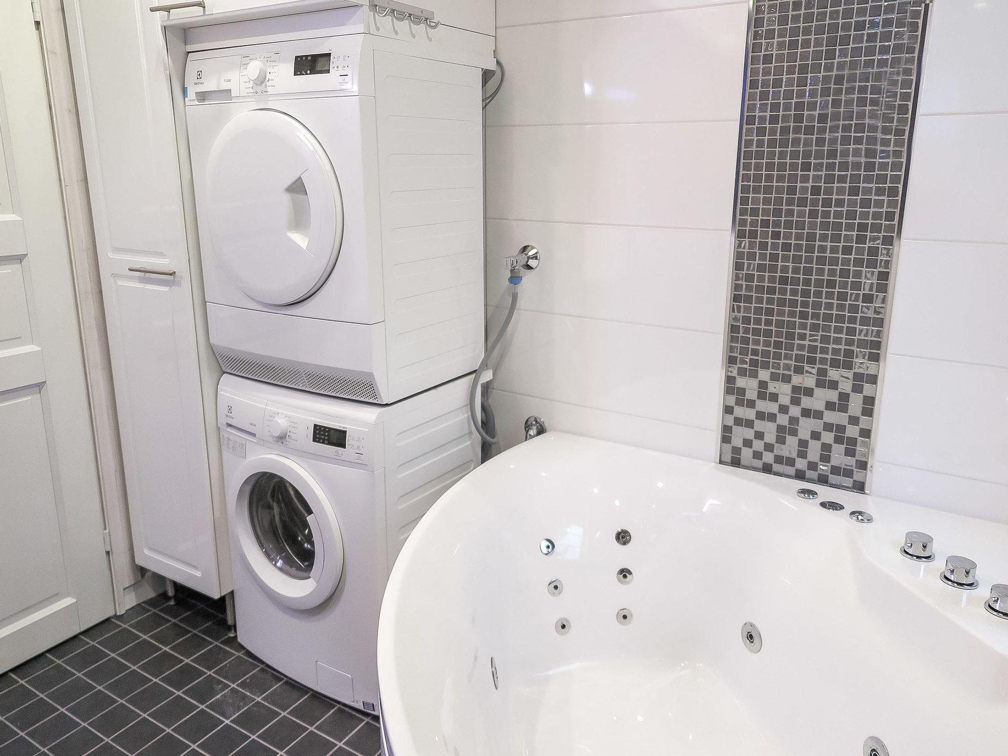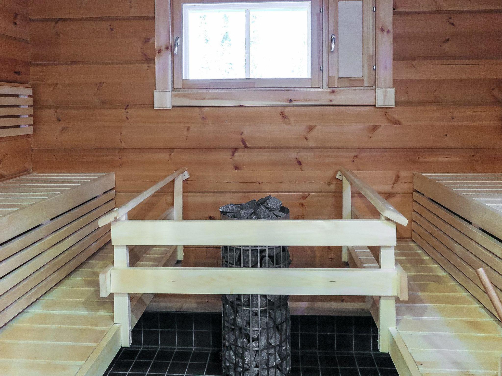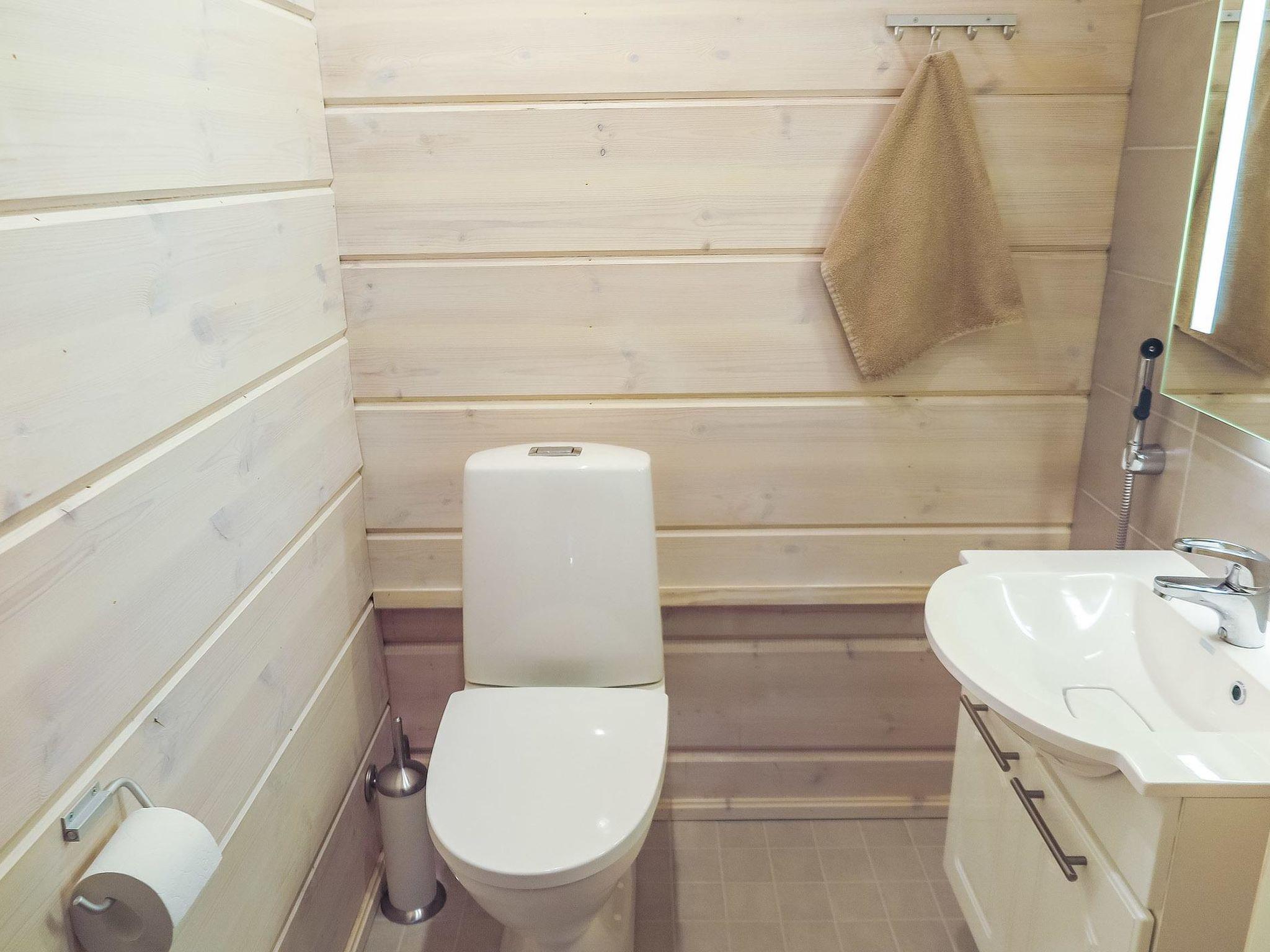 40 km north of Kolari, in Äkäslompolo, a log cottage, built 2016. 150 m², downstairs with 2 bedrooms, one with double bed and other with 2 separate beds, livingroom/kitchen, spacious sauna (electric heated), washroom, toilet. Upstairs with 2 bedrooms, one with double bed, other with 2 separate beds, toilet, shower, hydro massage bath. Other: Internet USB modem, warm storage with ski waxing table.