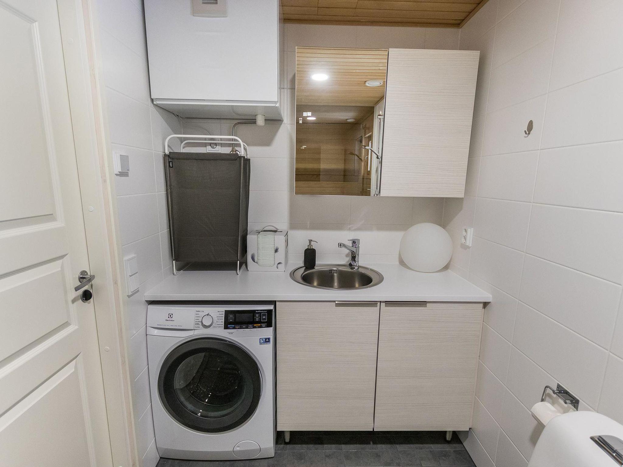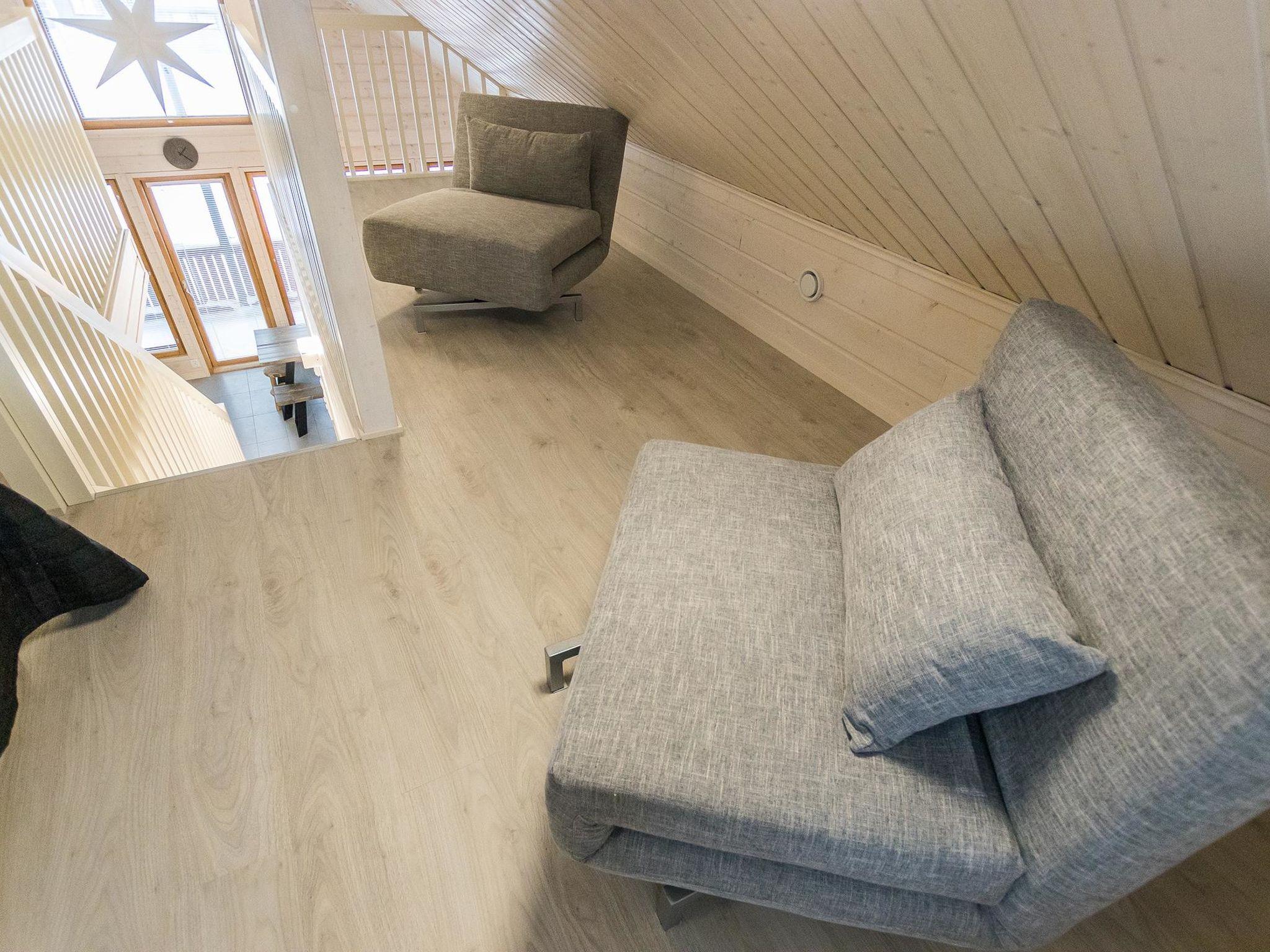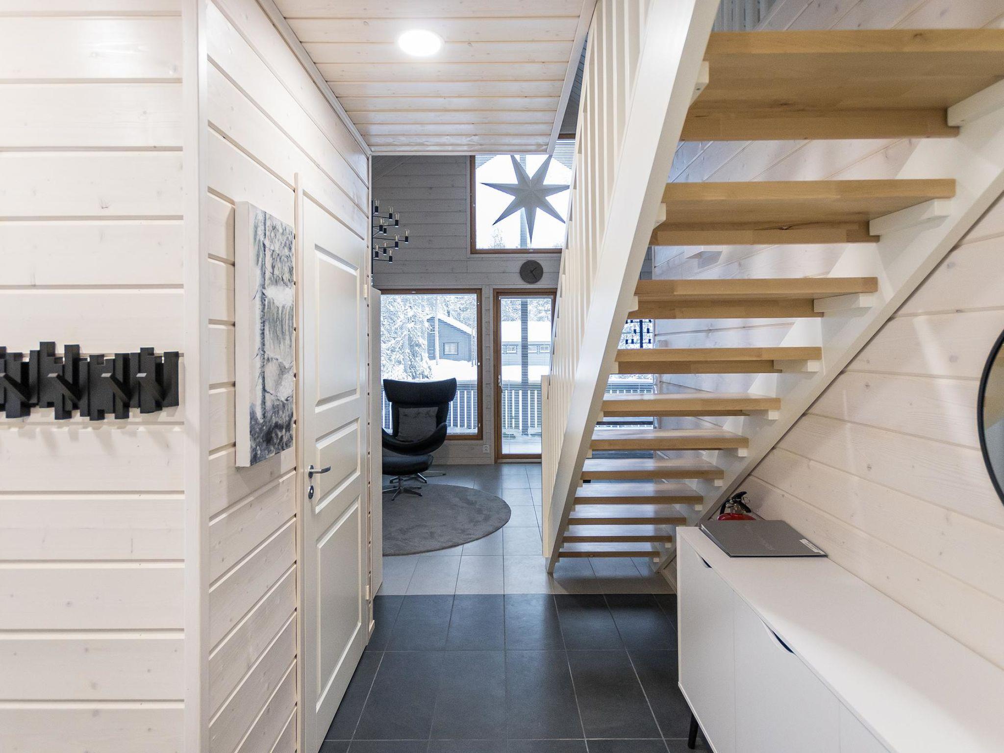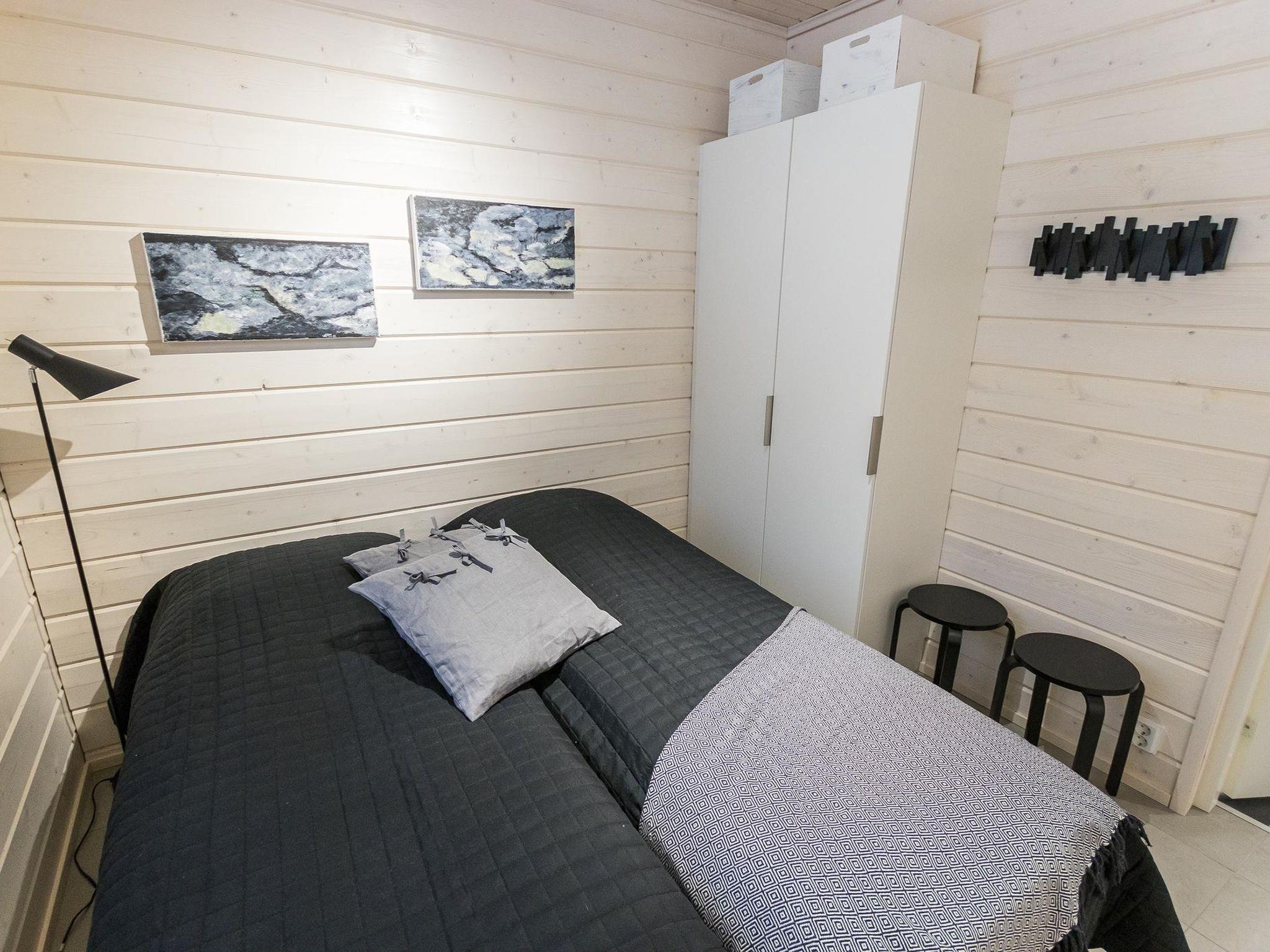40 km north of Kolari, lake Äkäslompolo 1,5 km, swimming beach about 2 km. Separate wooden house, built in 2021. Livingroom/kitchen, two bedrooms, one with two separate beds and other with a double bed, loft with 2 separate beds and 2 lounge chairs that fold into beds, electric sauna, shower, 2 toilets, one in the shower room.