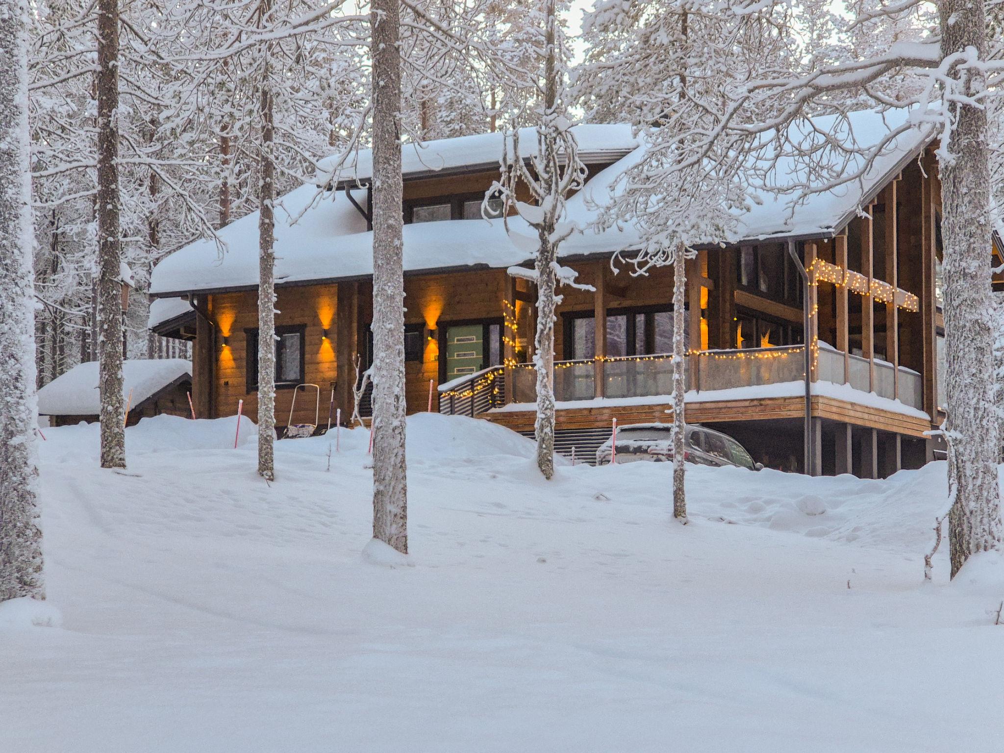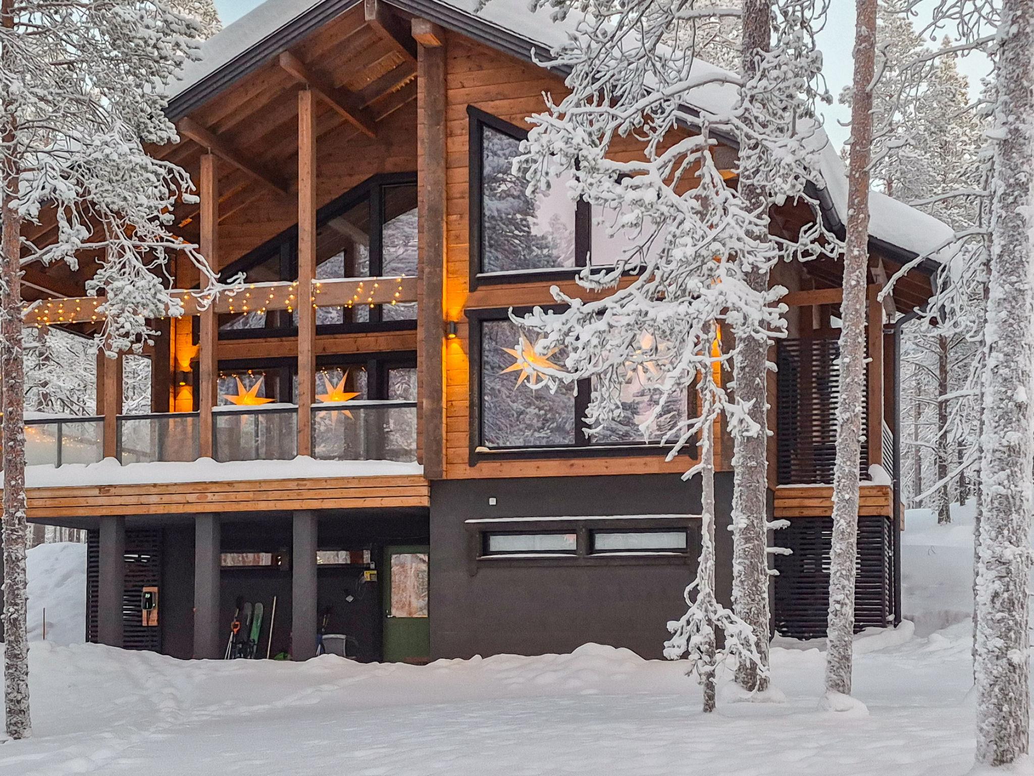 Villa Valoisa is a high quality villa located in the Äkäslompolo tourist center in the beautiful Kaulavaara area, built in 2024. Built of solid logs and heated by geothermal energy, the villa is comprehensively equipped and beautifully decorated. The total usable area is approx. 235 m².