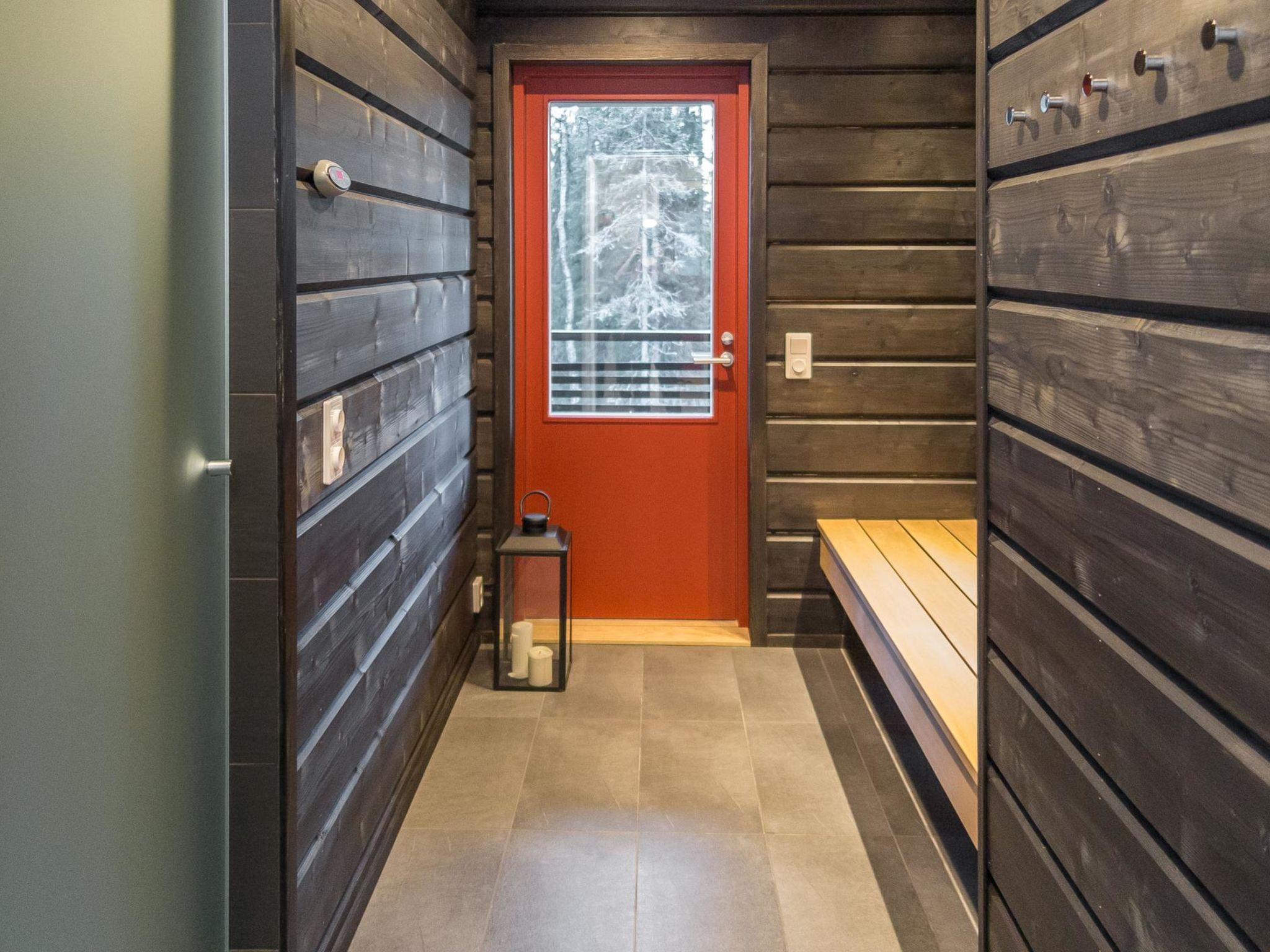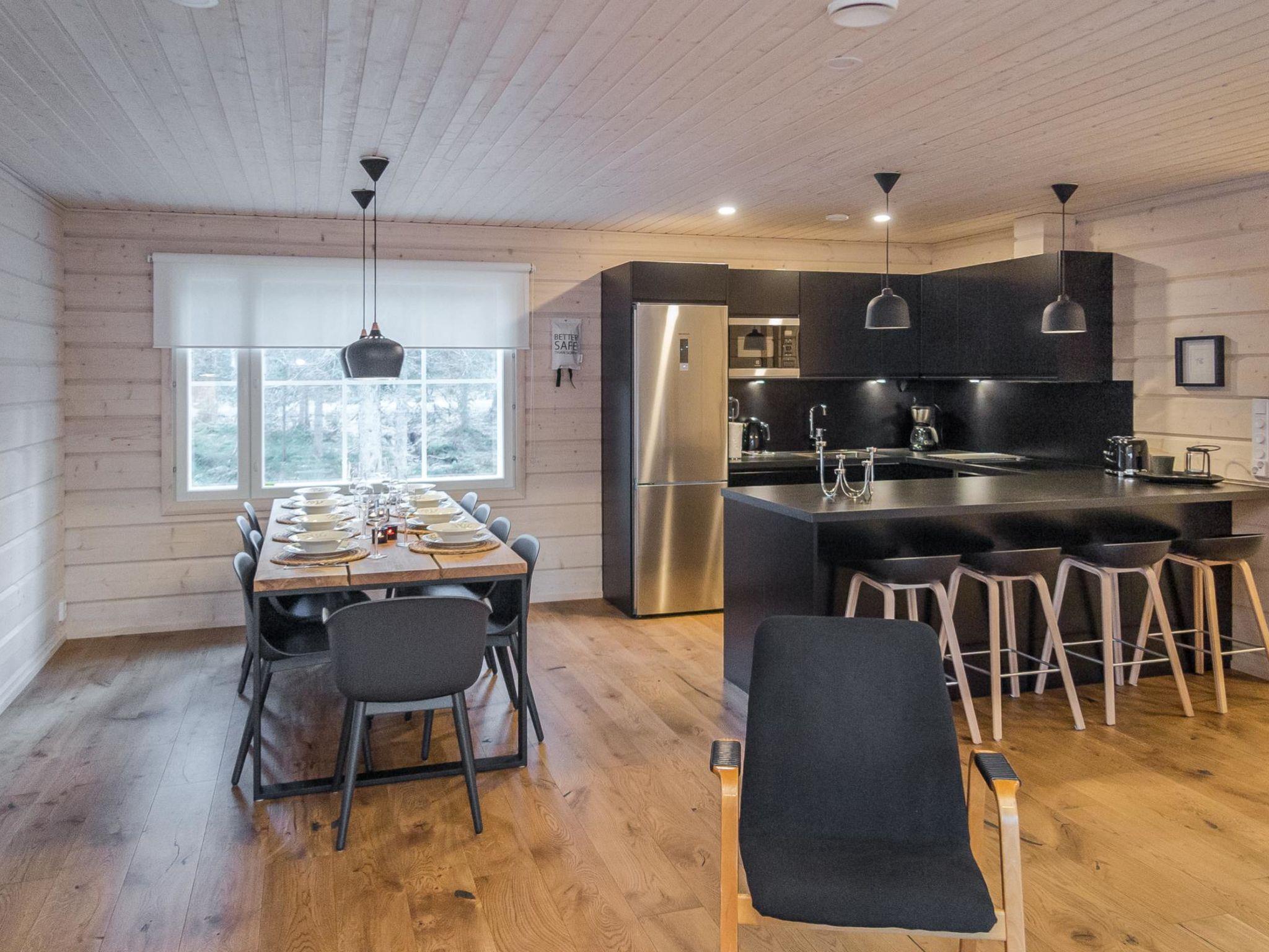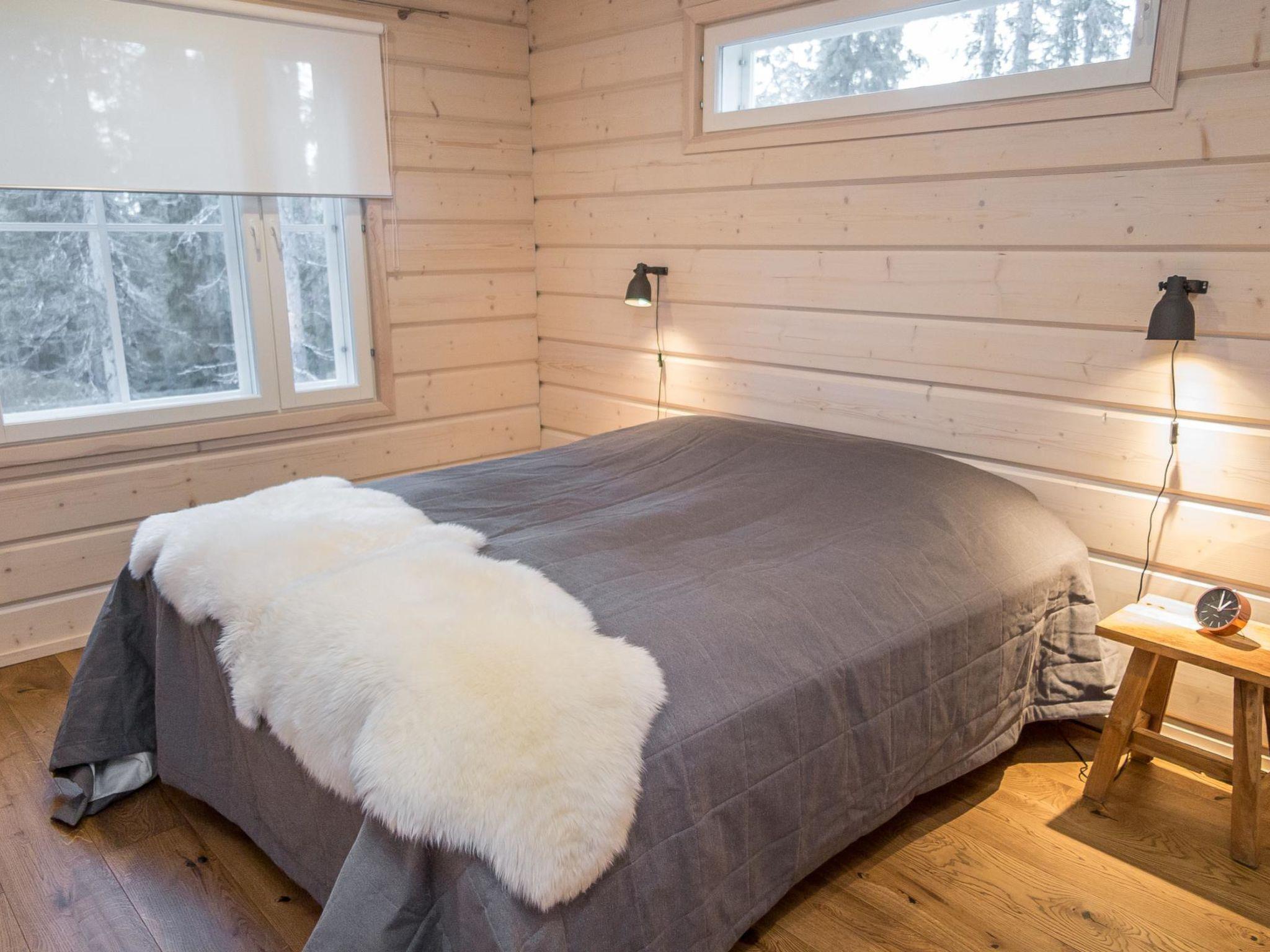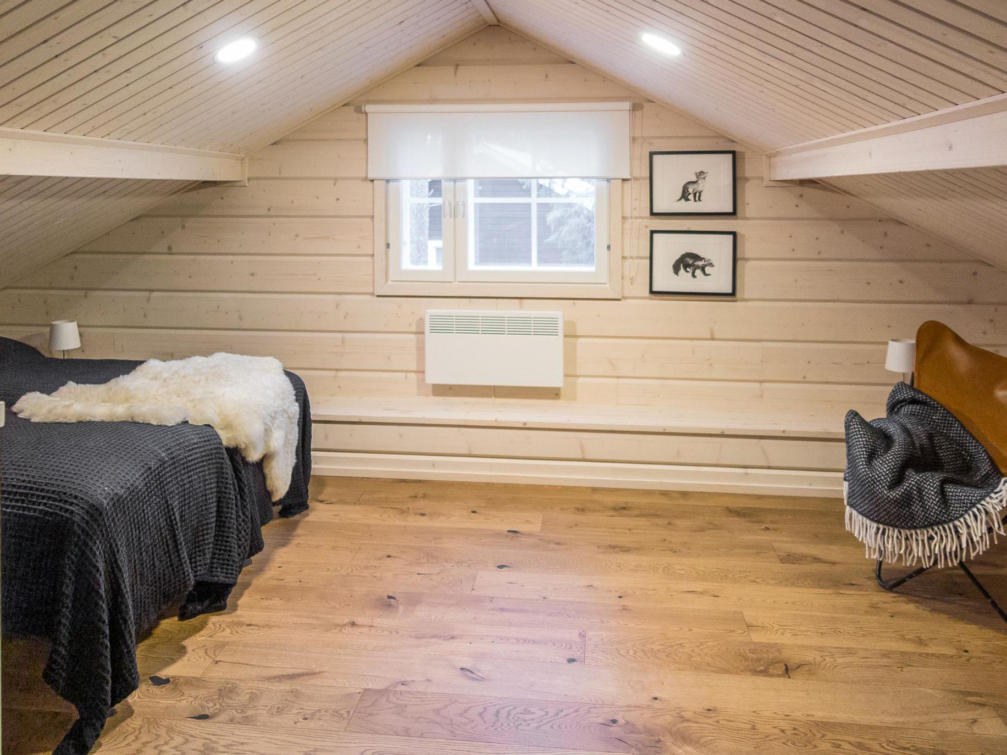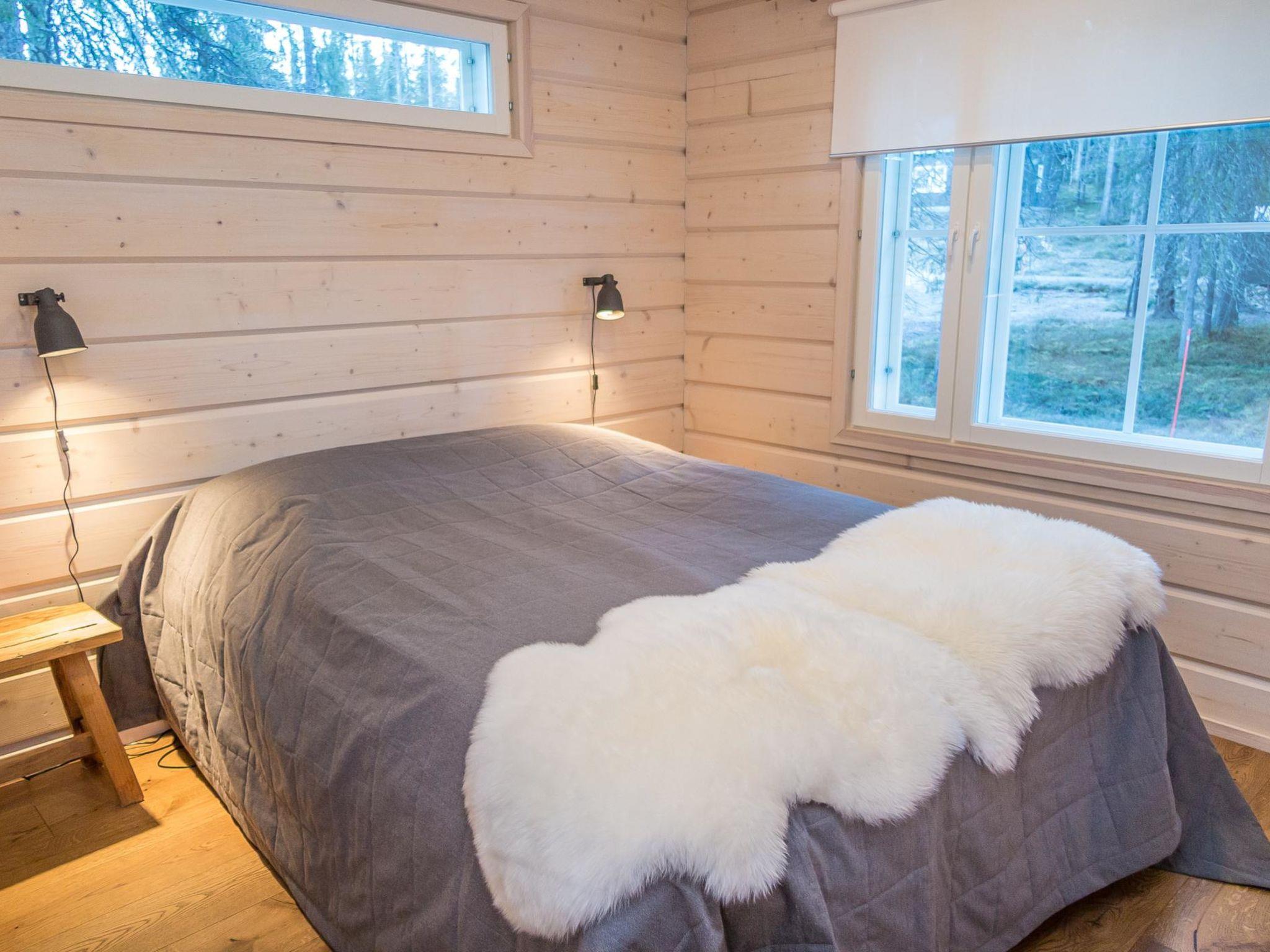 40 km north of Kolari. Log cottage, built 2018. In down stairs Livingroom/kitchen, two bedrooms with a double bed, electric sauna (electric heated) , shower, two separate toilets. In upstairs 4 separate beds and seating area. Other equipment: wi-fi, baby cot, high chair, potty, 2 kick sledges (during winter).