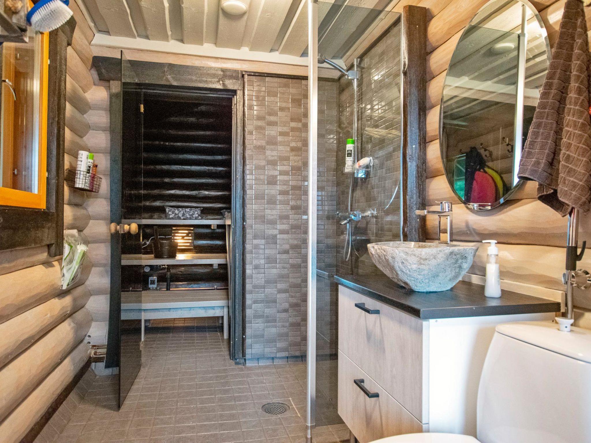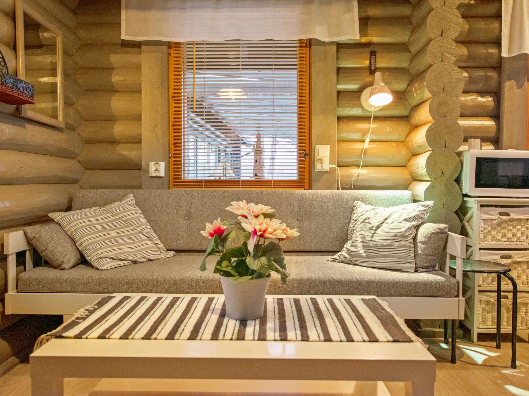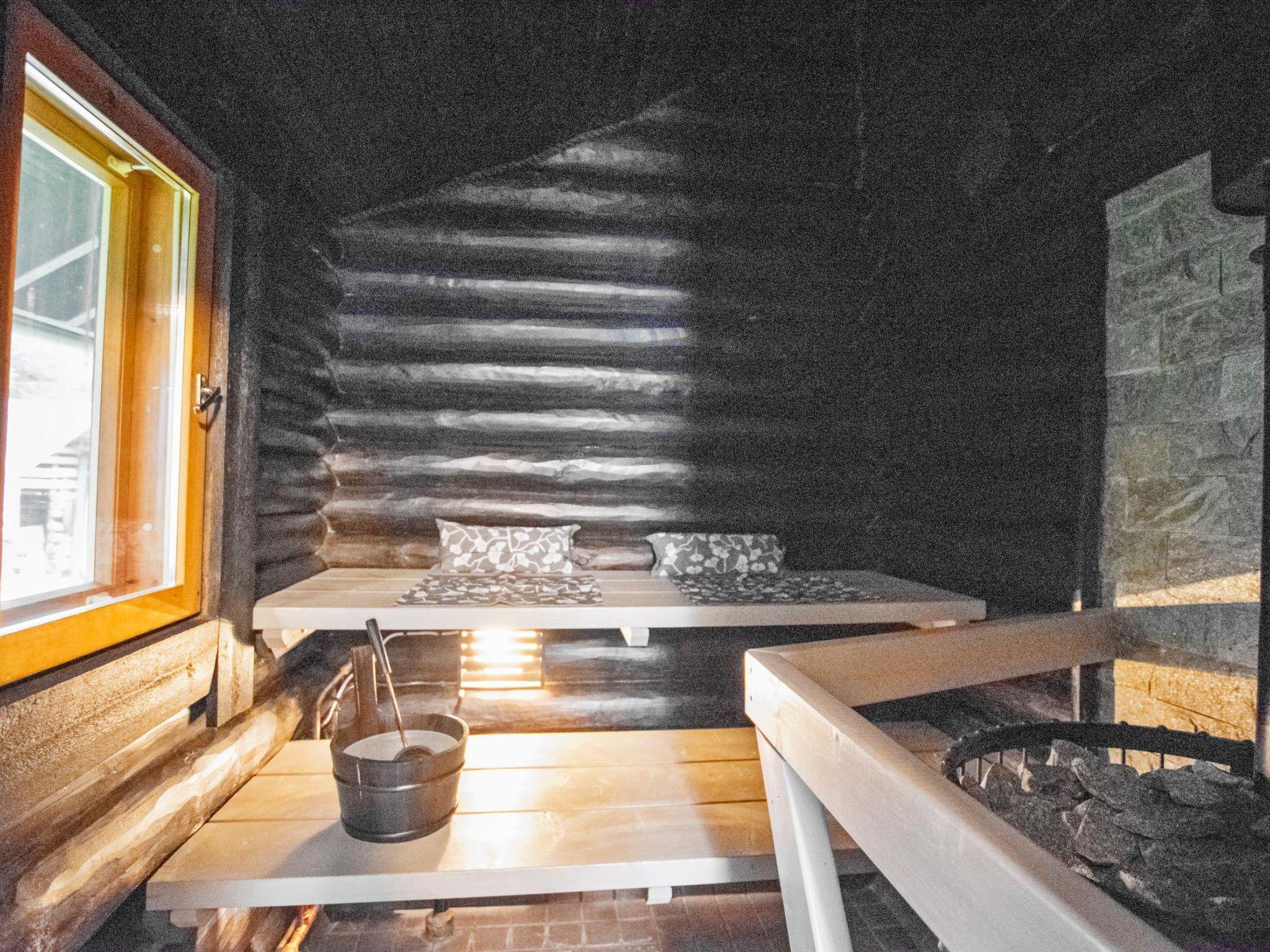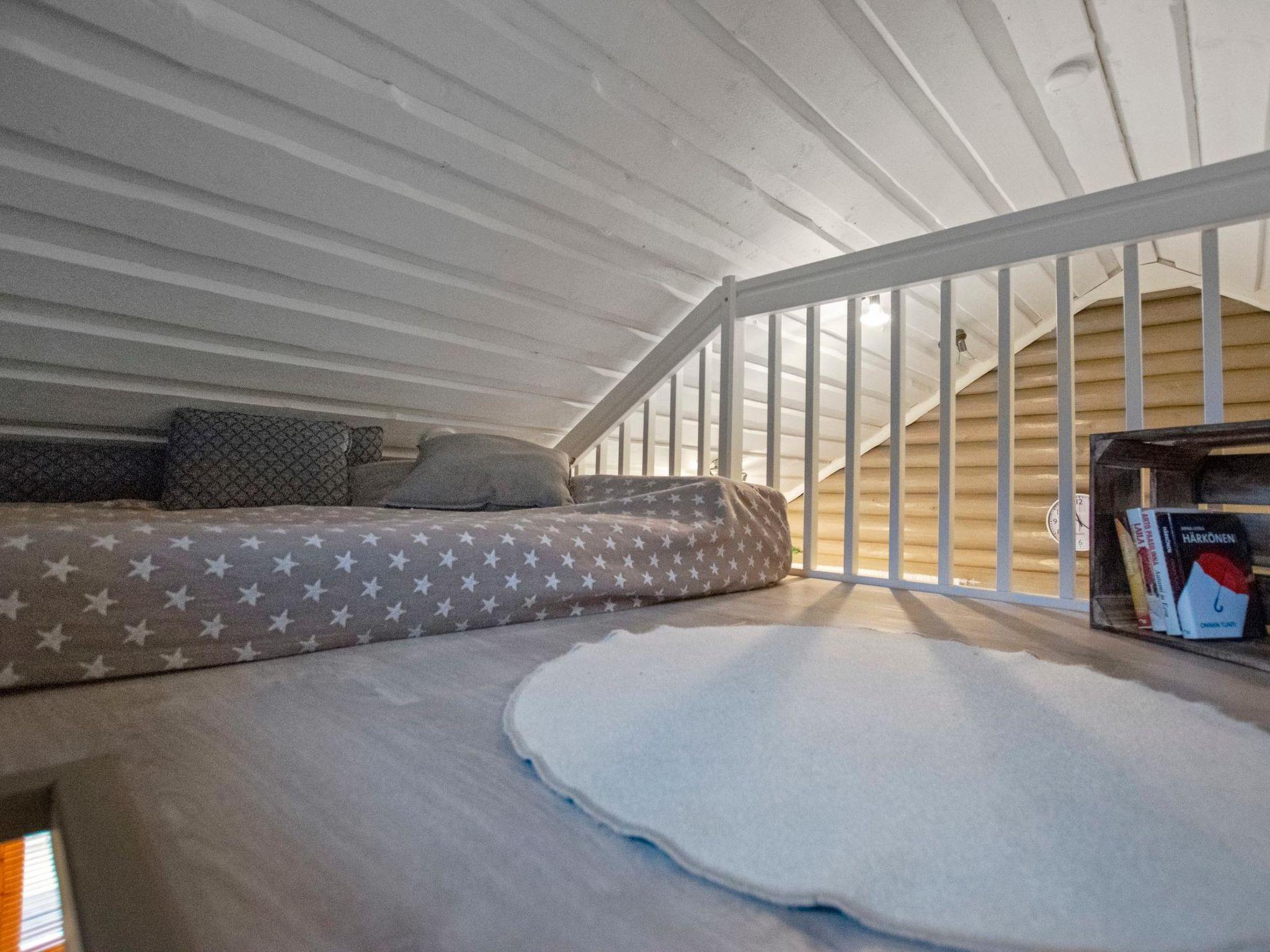 Separate well-equipped lakeside sauna (wood-burning sauna stove), washroom with WC, sauna has own kitchen equipment, spreadable sofa bed for two (140 x 190 cm), 120 x 200 cm mattress for one in the loft, steep stairs to the loft. The sauna terrace has terrace glazing.