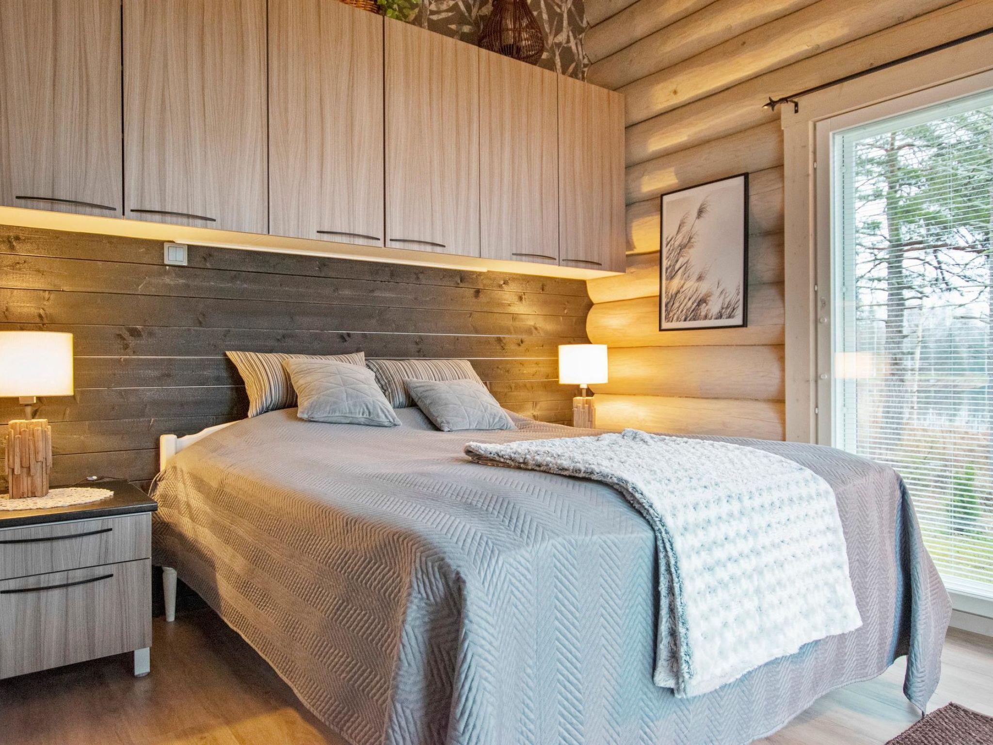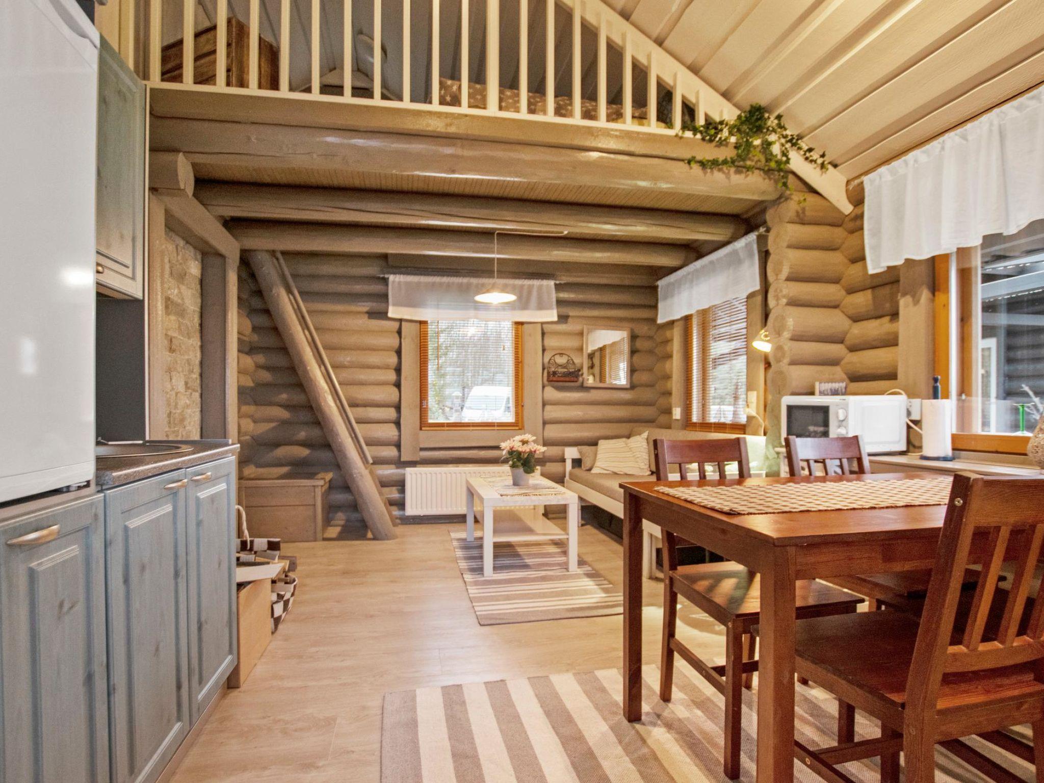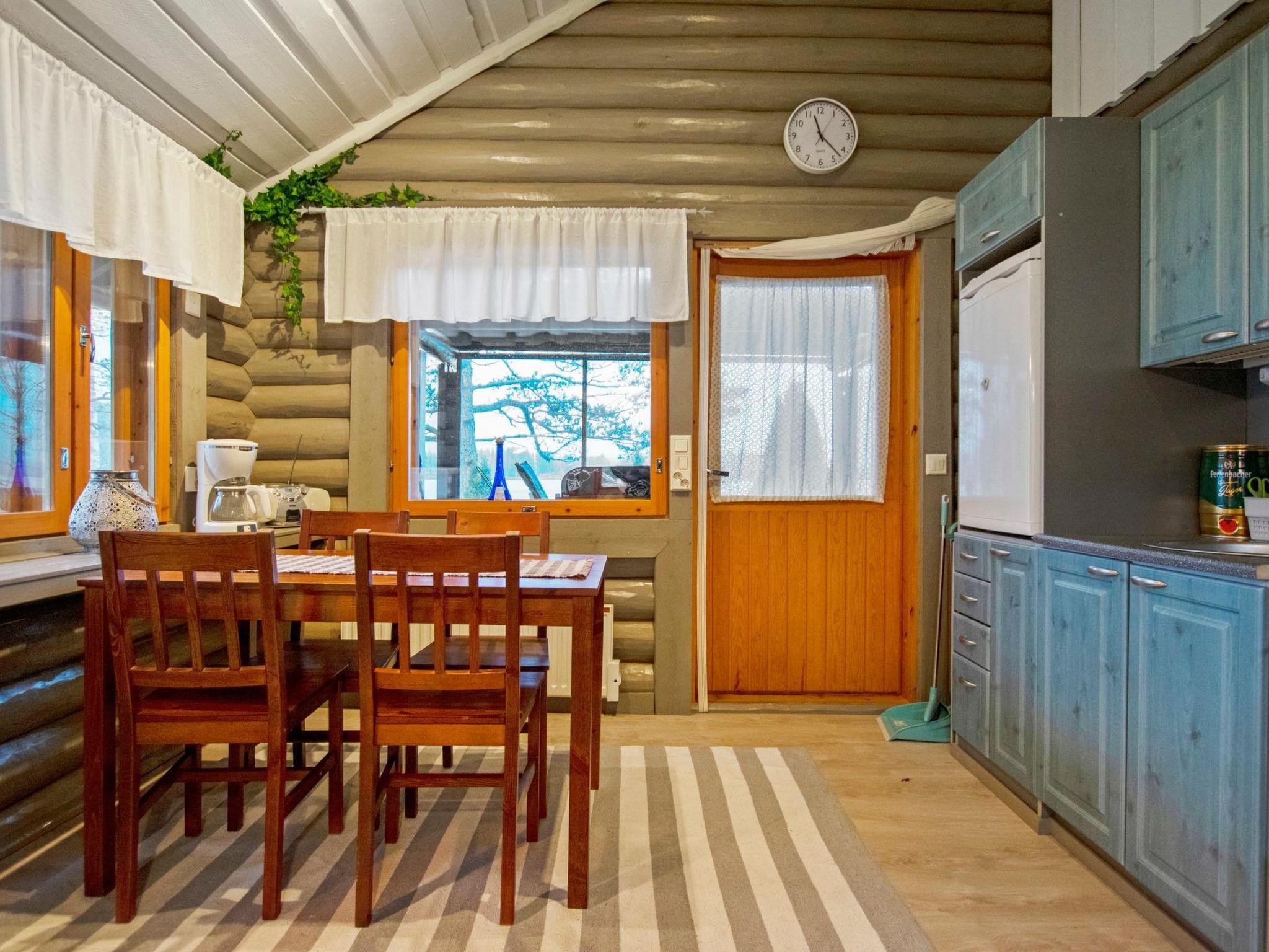 Log cabin 2021, living room, living room / kitchen, two bedrooms, bedroom 1: double bed, bedroom 2: two beds and washroom with WC. Spacious terrace with terrace furniture and gas grill. The cabin has geothermal heat, which also provides cooling function.