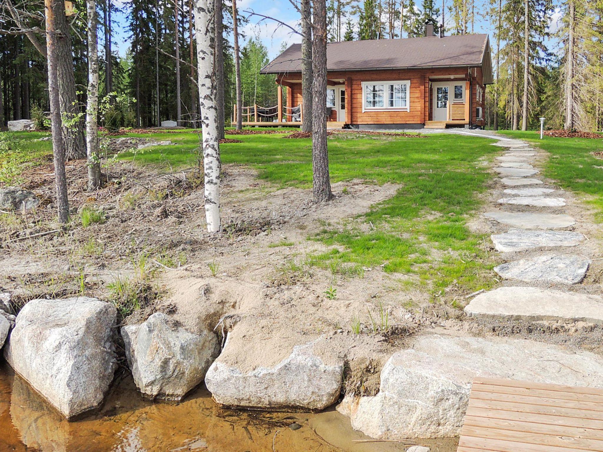 Lake Välivesi 25 m (132,3 ha), own shore, shallow sand bottom and own boat. Log cottage 2017, living room, kitchen, bedroom with double bed width 140 cm, bed room with two beds, sleeping gallery with two beds, dressing room, washroom, terrace.
