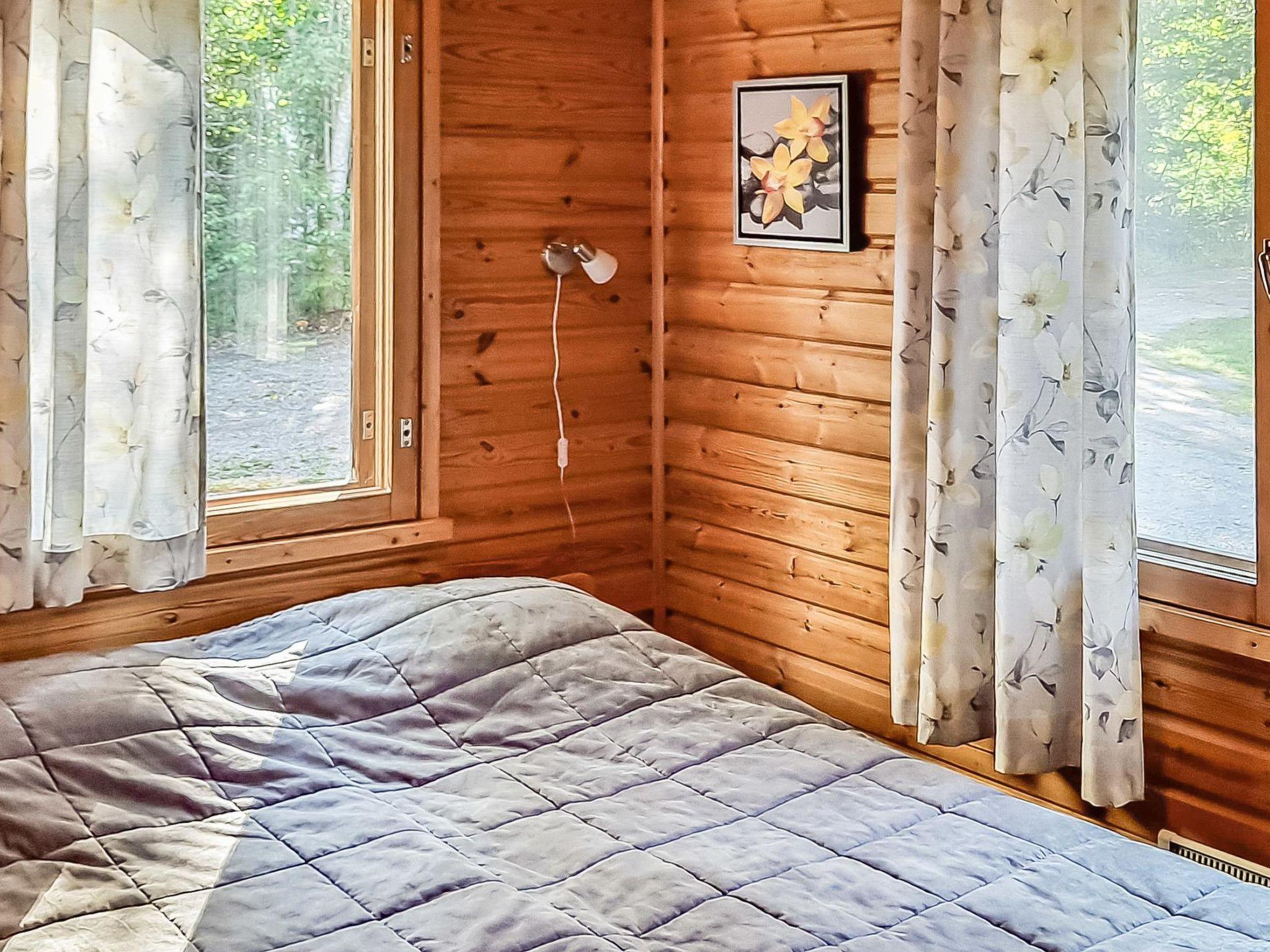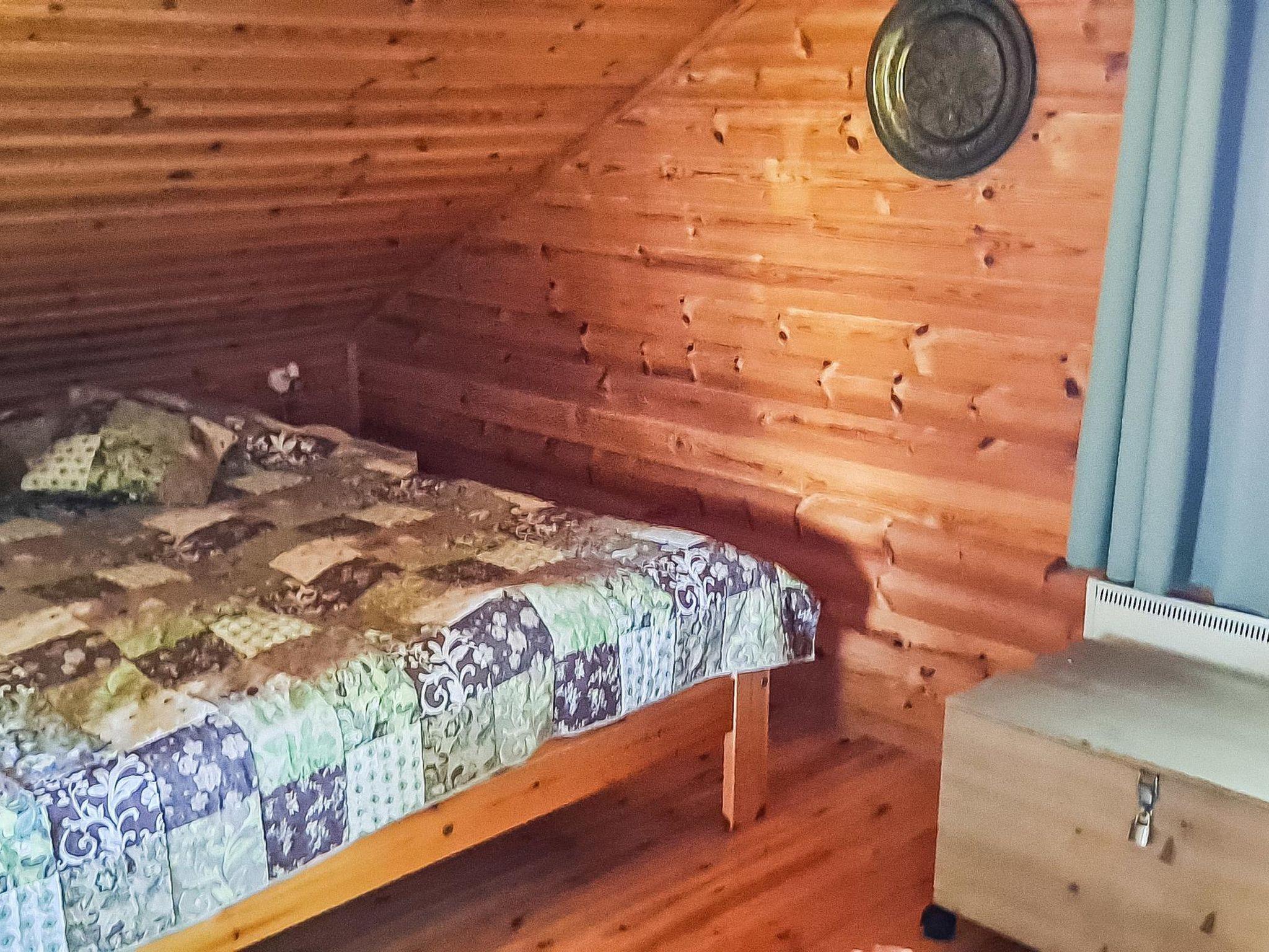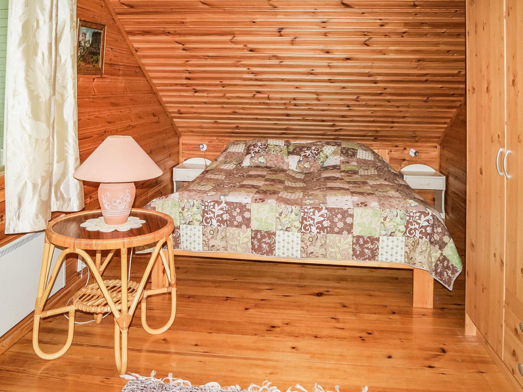 27 km north of Savonlinna. Lake Ylä-Enonvesi 20 m (length 9 km, breadth 1 km), shallow water, firm sandy bottom. Own boat. Wooden cabin 1989, kitchen, living room, 2 bedrooms with 2 beds in each, sauna, washing room, dressing room, open veranda. Upstairs: bedroom with 2 beds, sleeping loft 2 beds, balcony.