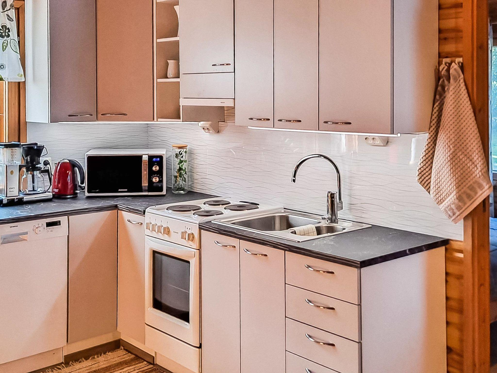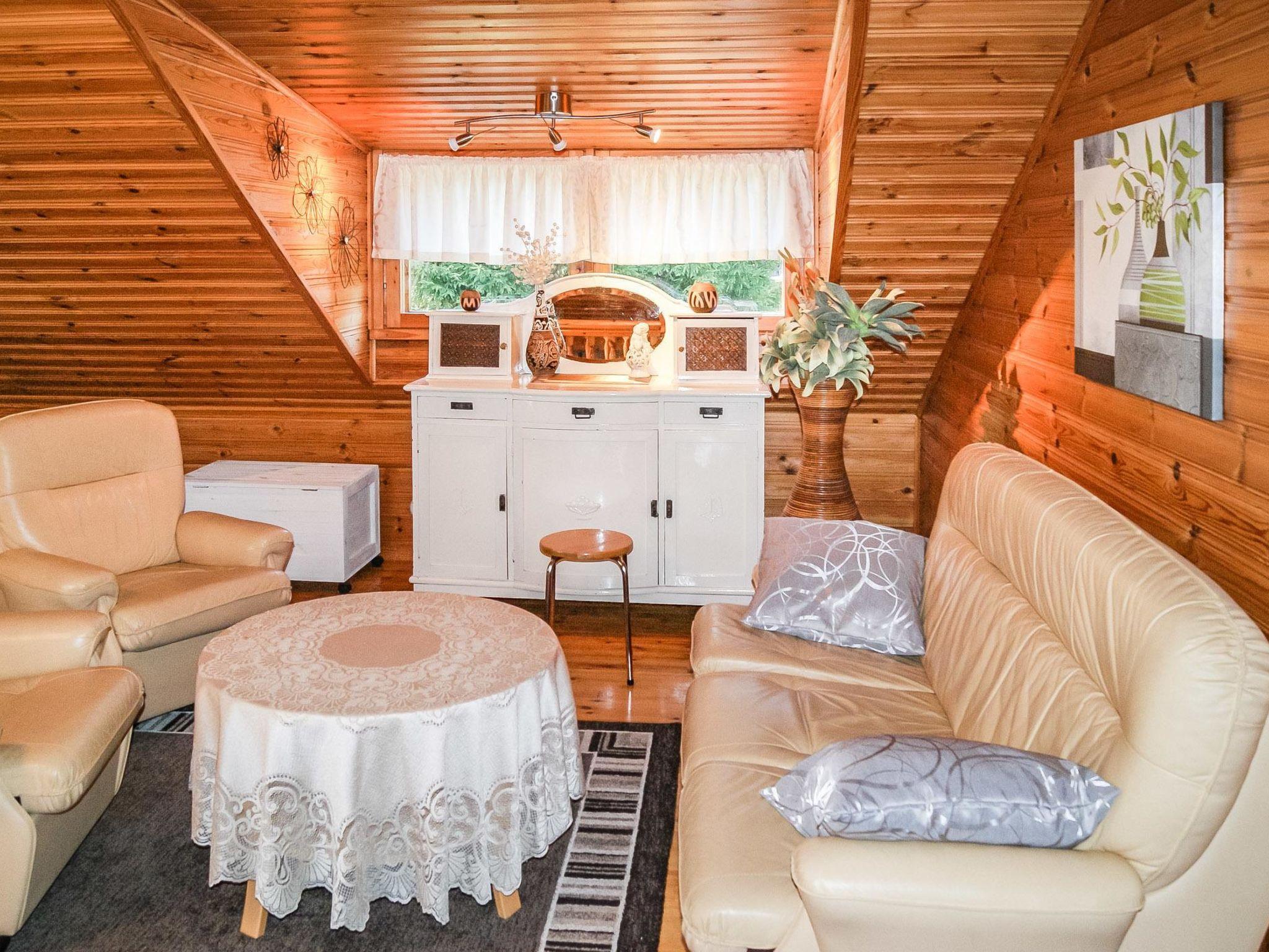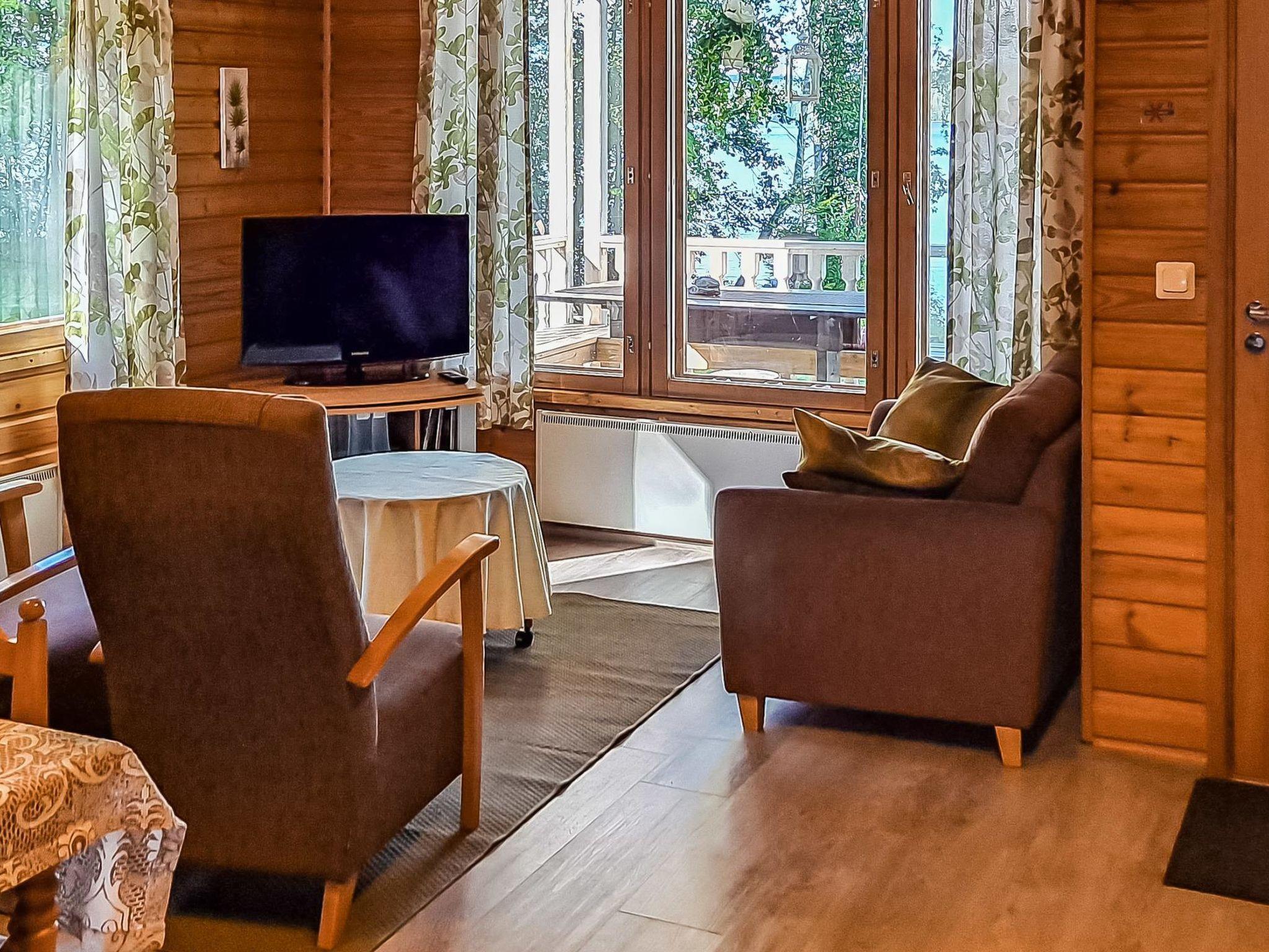27 km north of Savonlinna. Lake Ylä-Enonvesi 20 m (length 9 km, breadth 1 km), shallow water, firm sandy bottom. Own boat. Wooden cabin 1989, kitchen, living room, 2 bedrooms with 2 beds in each, sauna, washing room, dressing room, open veranda. Upstairs: bedroom with 2 beds, sleeping loft 2 beds, balcony.