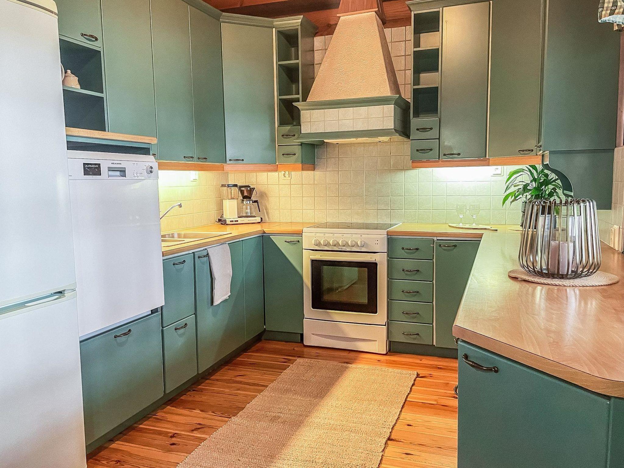 The living room has a sofa bed for two, well-equipped kitchen, two bedrooms, both with a double bed. Dressing room/utility room, washroom, electric sauna stove in the sauna. Air heat source pump for cooling.