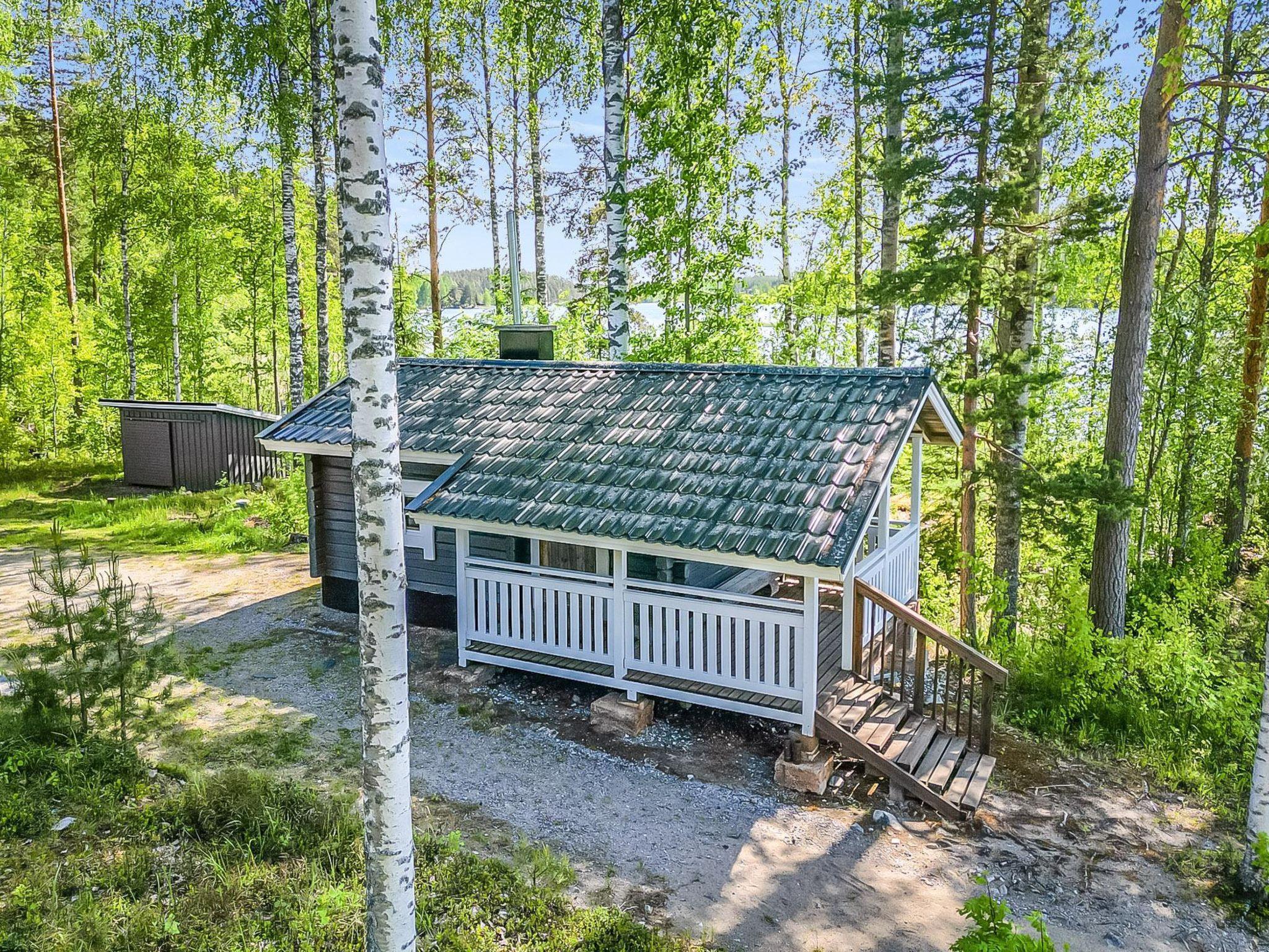 53 km to the north from Savonlinna, lake Saimaa 20 m, hard, sand beach, pier, and rowing boat. On a small island, a campfire site, a footbridge.