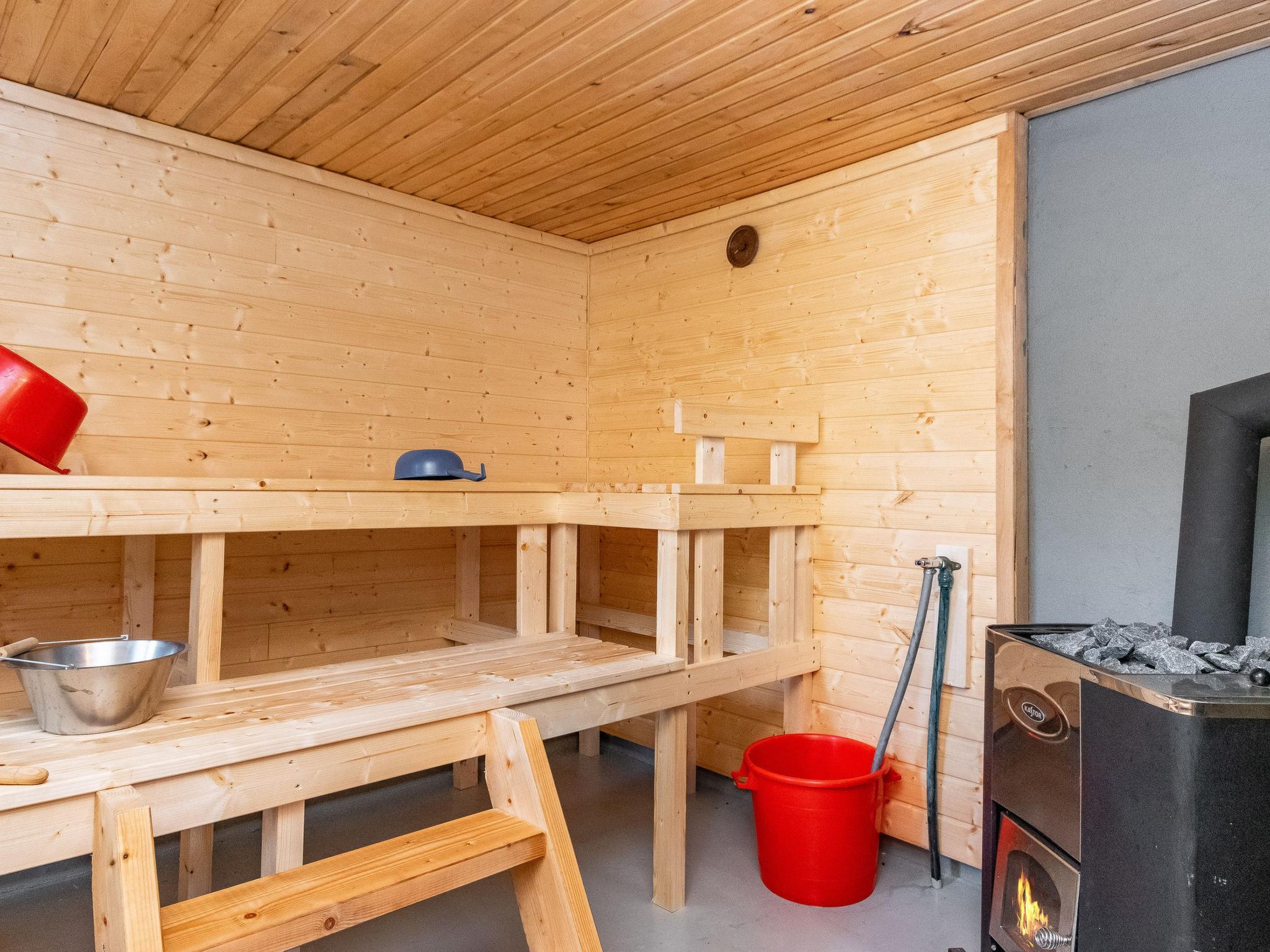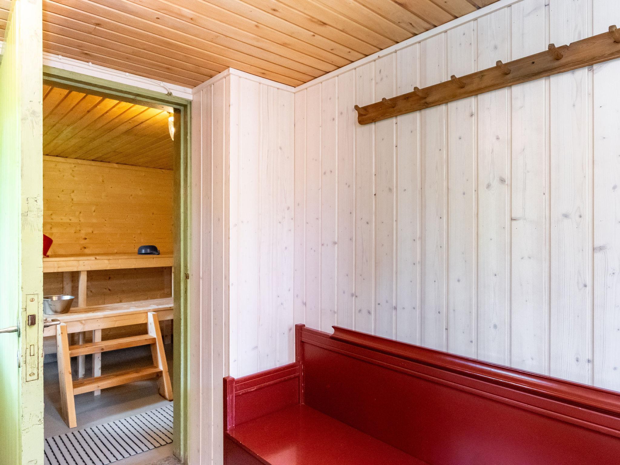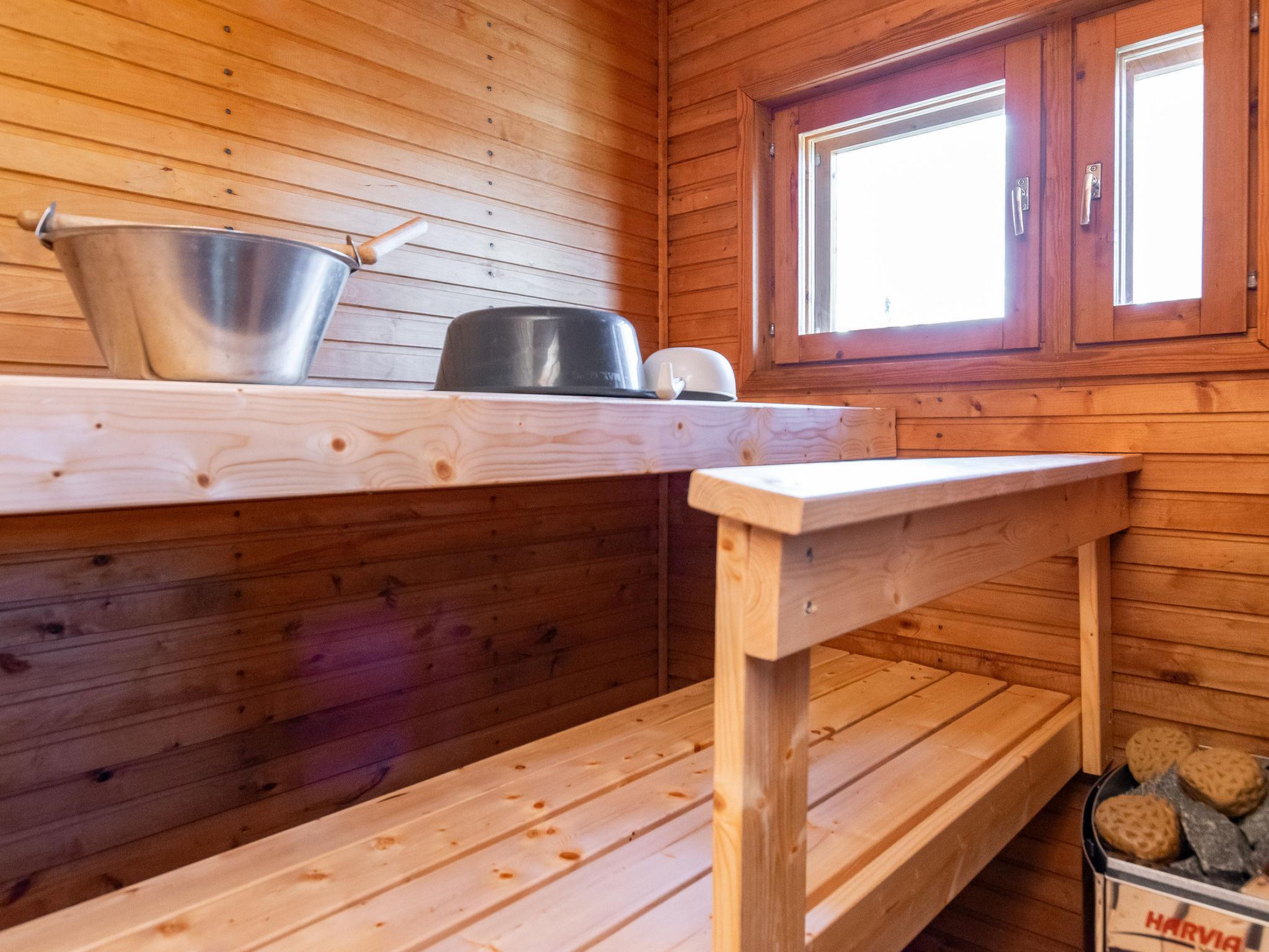 Outdoor sauna; separate dressing room, wood-burning stove in the sauna, pressurized water in summer, water is carried from the main cottage at other times.