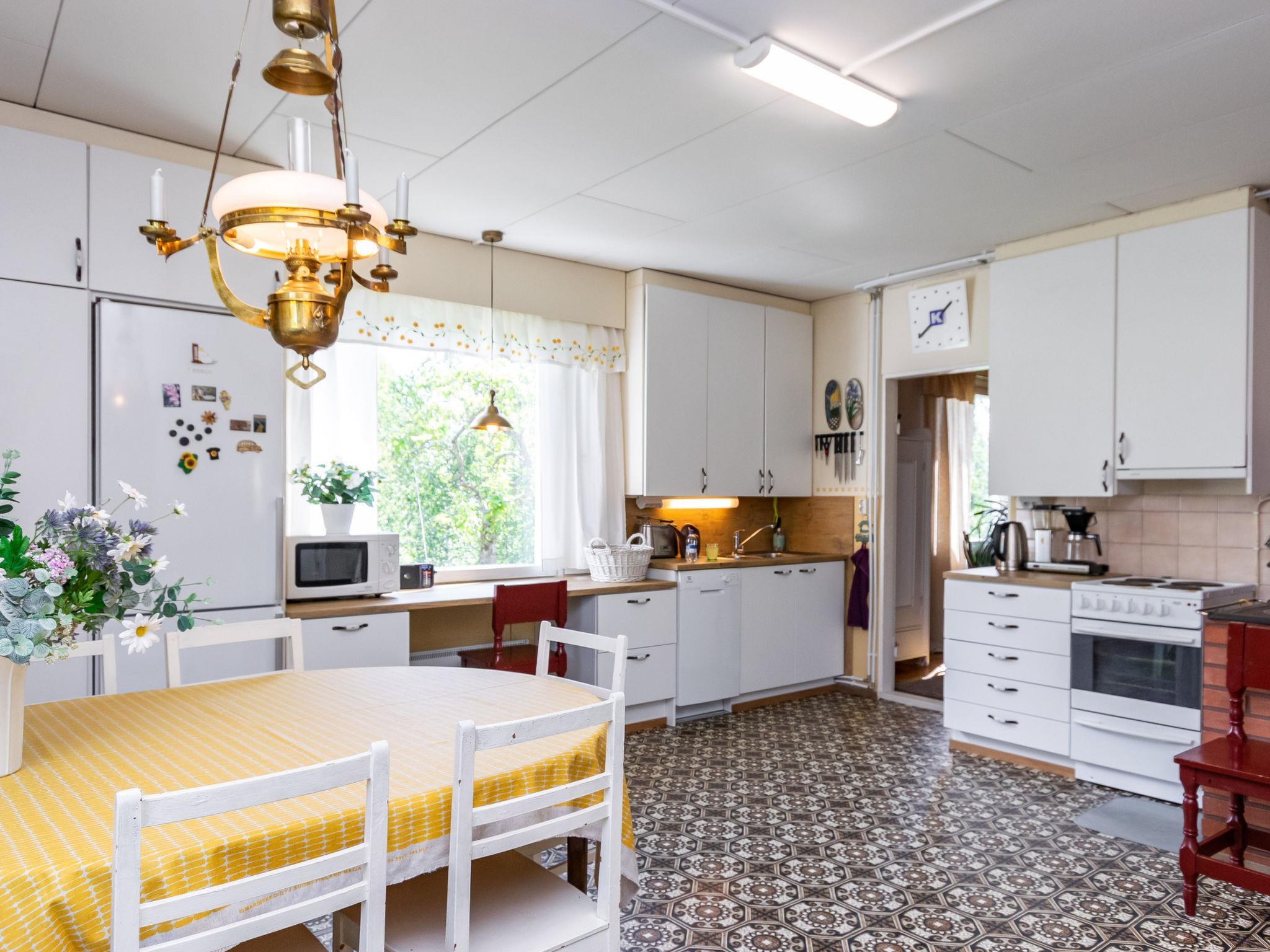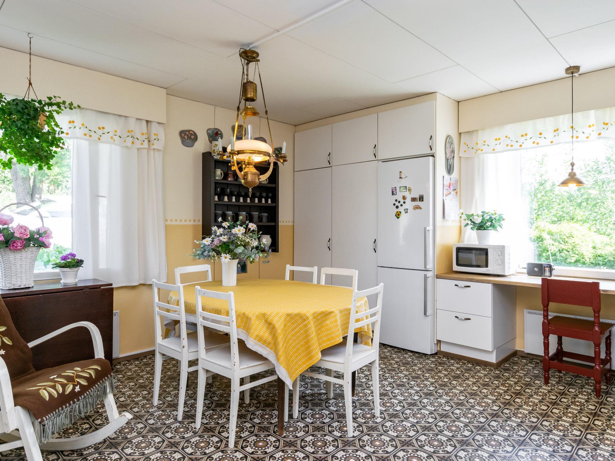 Wooden cottage 1948, extended 1985, interior renovated 2025, living room, kitchen, fireplace room, washroom, electric heater in the sauna, separate toilet.