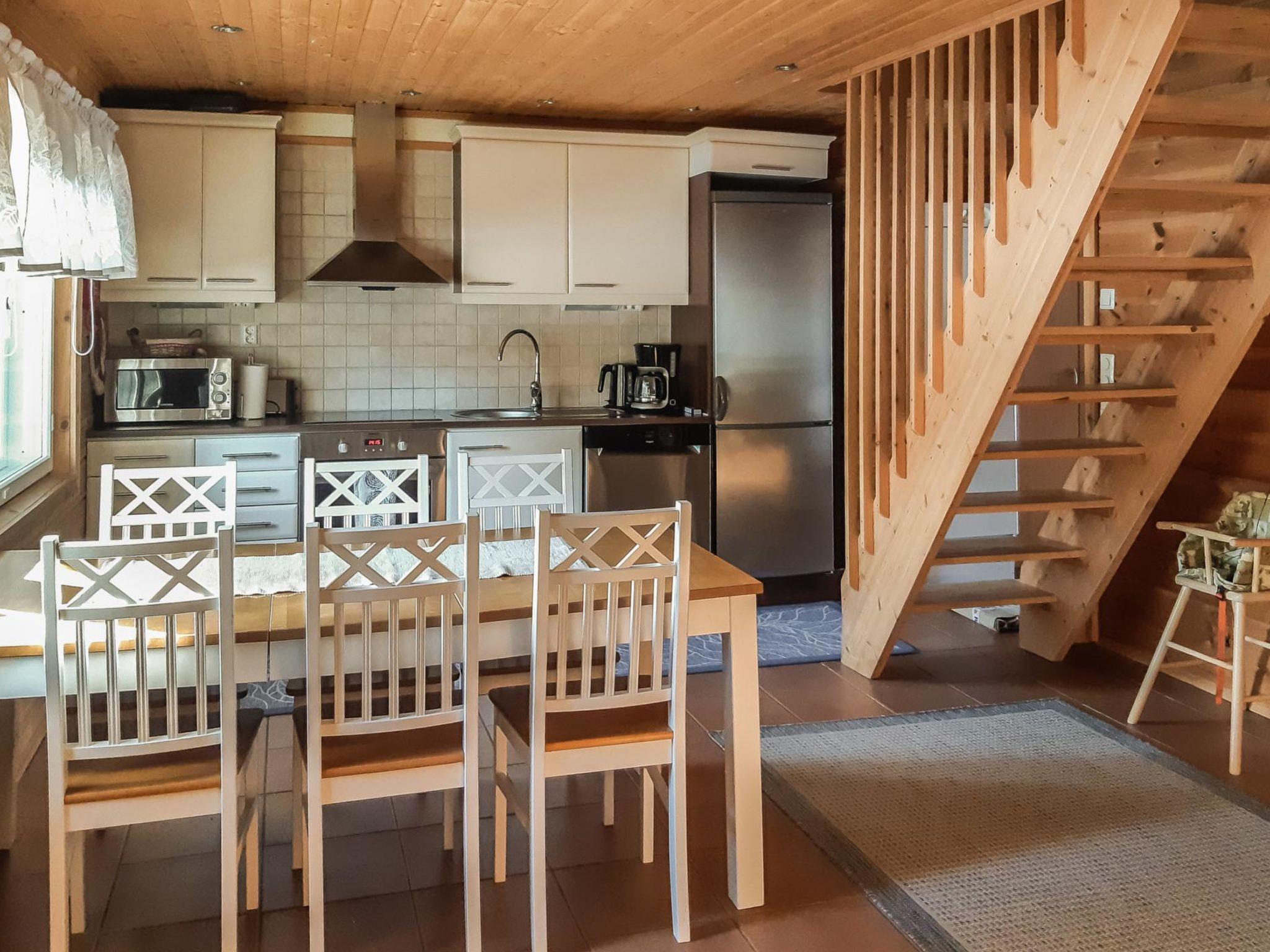 Log cottage 2008, living room, kitchen. Downstairs: bedroom 2 beds. Upstairs: 2 bedrooms, both with 2 beds, sleeping loft convertible sofa/double bed, sauna (electric stove - renovated 2015), washroom (2 showers), WC, open porch, balcony.