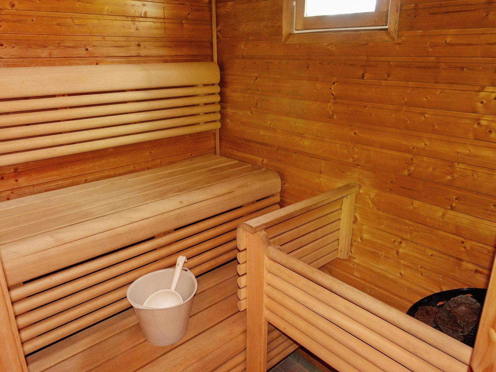 Living room/kitchen, bedroom with 2 beds, sleeping loft (12 m², sloping ceilings, highest point 190 cm, steep stairs) with 4 beds. Electric heated sauna and bathroom in the same building.