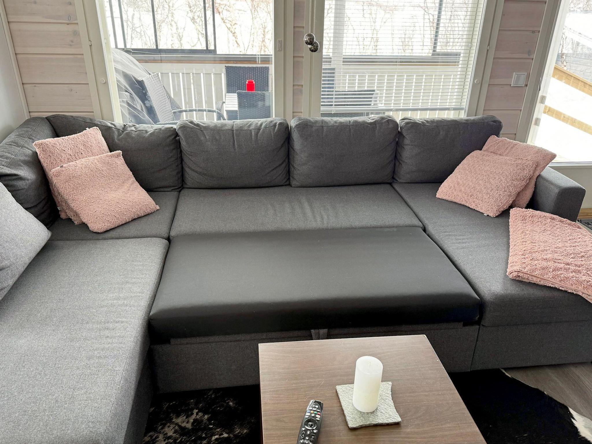 Wood-built villa, built in 2022. Living room/kitchen, 2 bedrooms, both with 2 beds, in the another bedroom also double mattress pad available. Sauna, washroom, utility room with WC and separate WC. The living room couch works as an extra bed.
