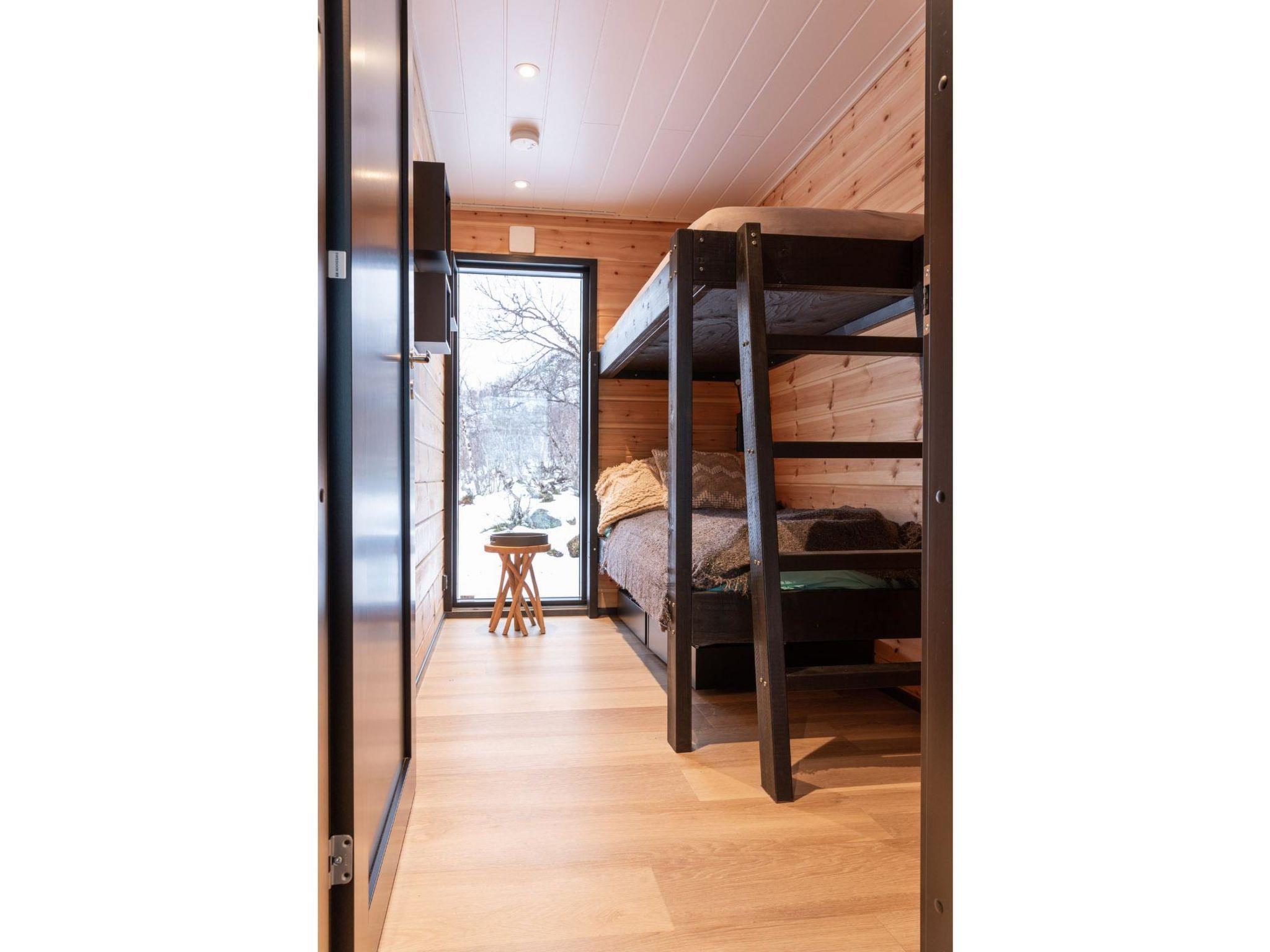 Wood-built cabin, built in 2022. Living room/kitchen, 2 separate motor beds in bedroom, bunk bed in another bedroom, sauna, washroom/WC, covered terrace and small storage.