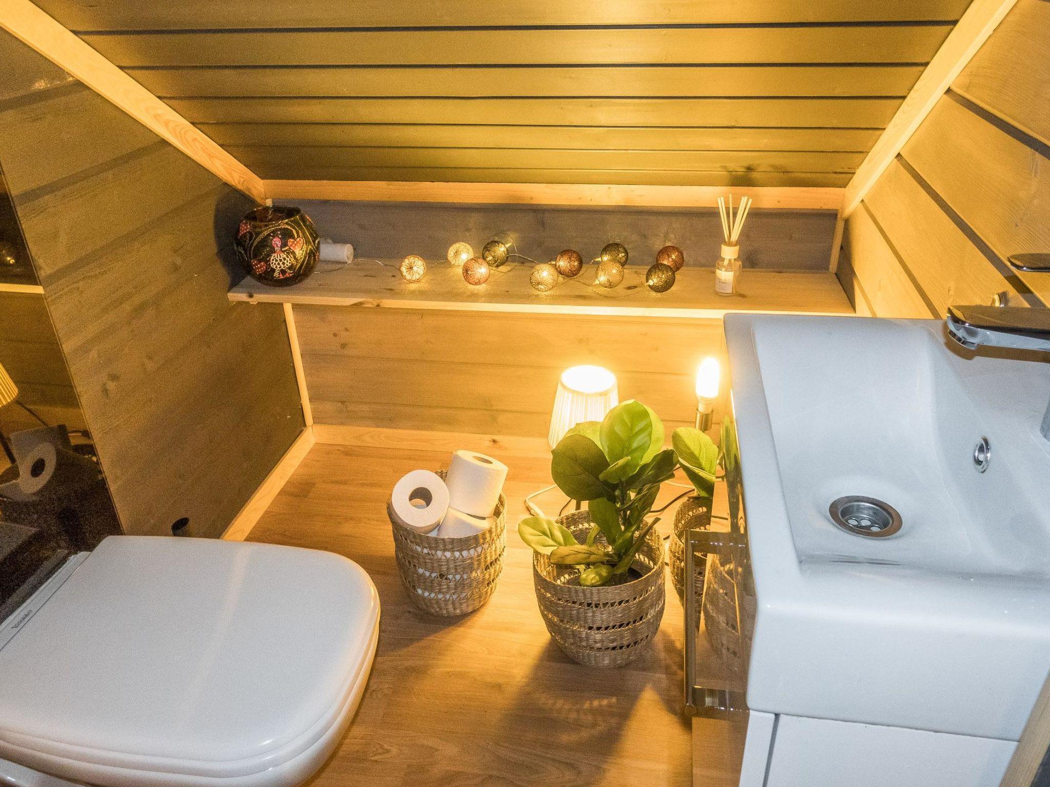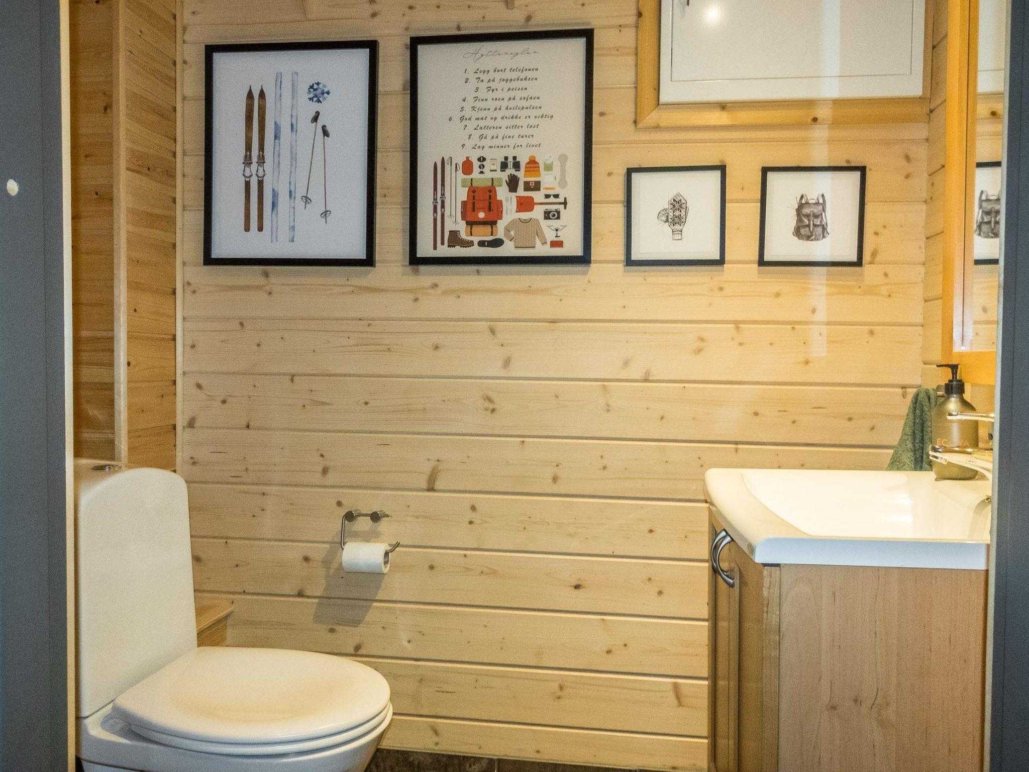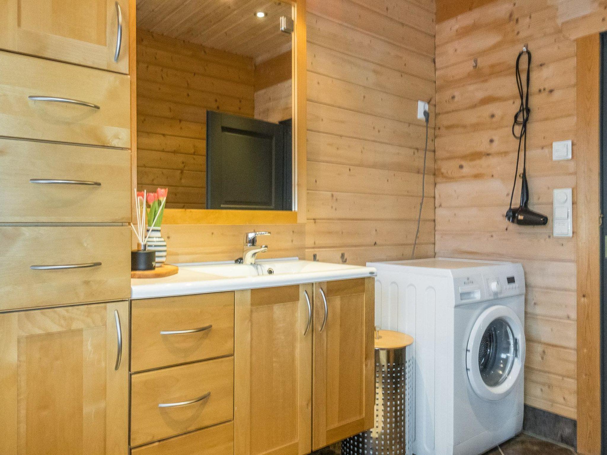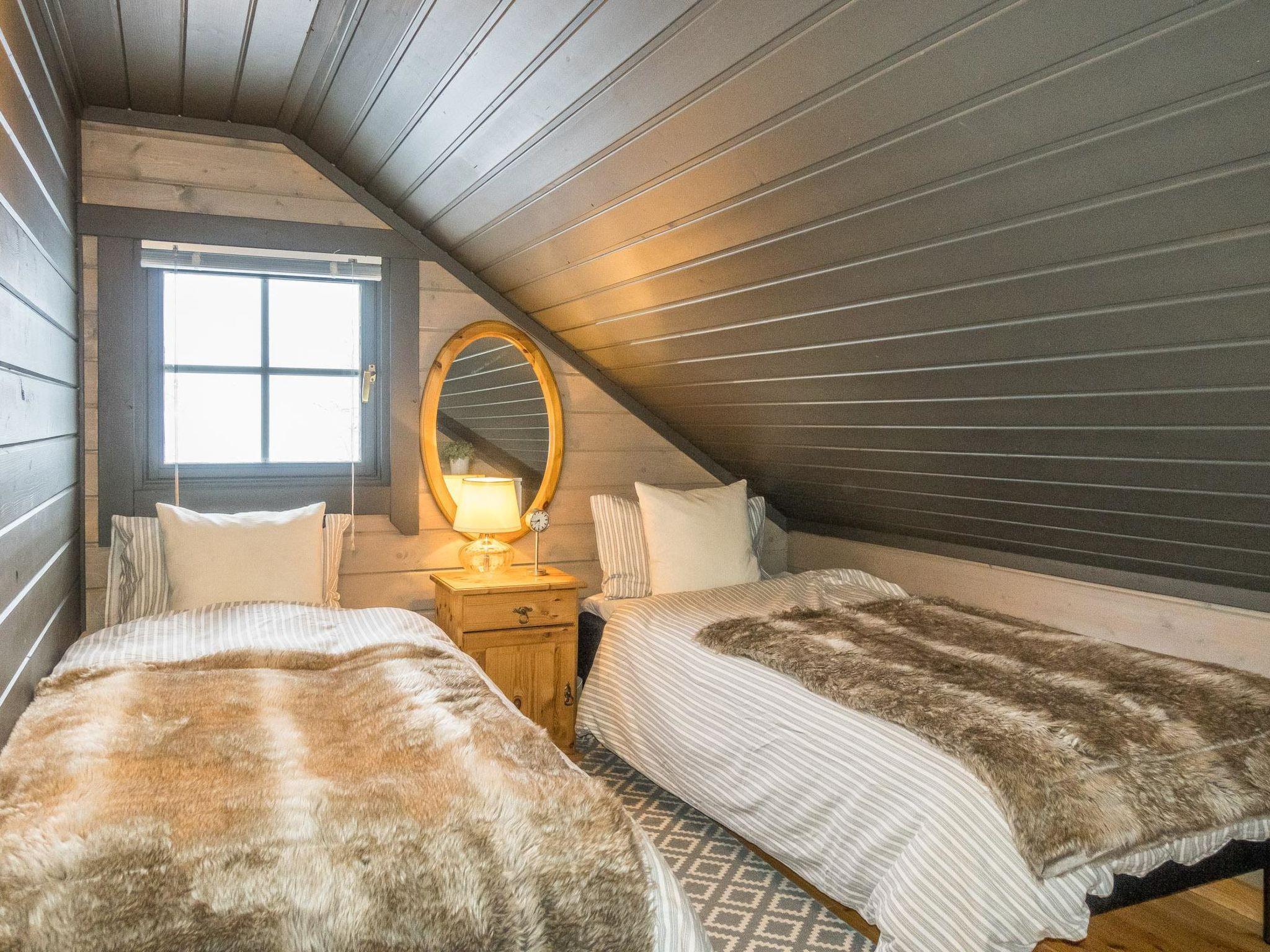 On the ground floor, living room/kitchen, bedroom with double bed, sauna, washroom, separate WC.