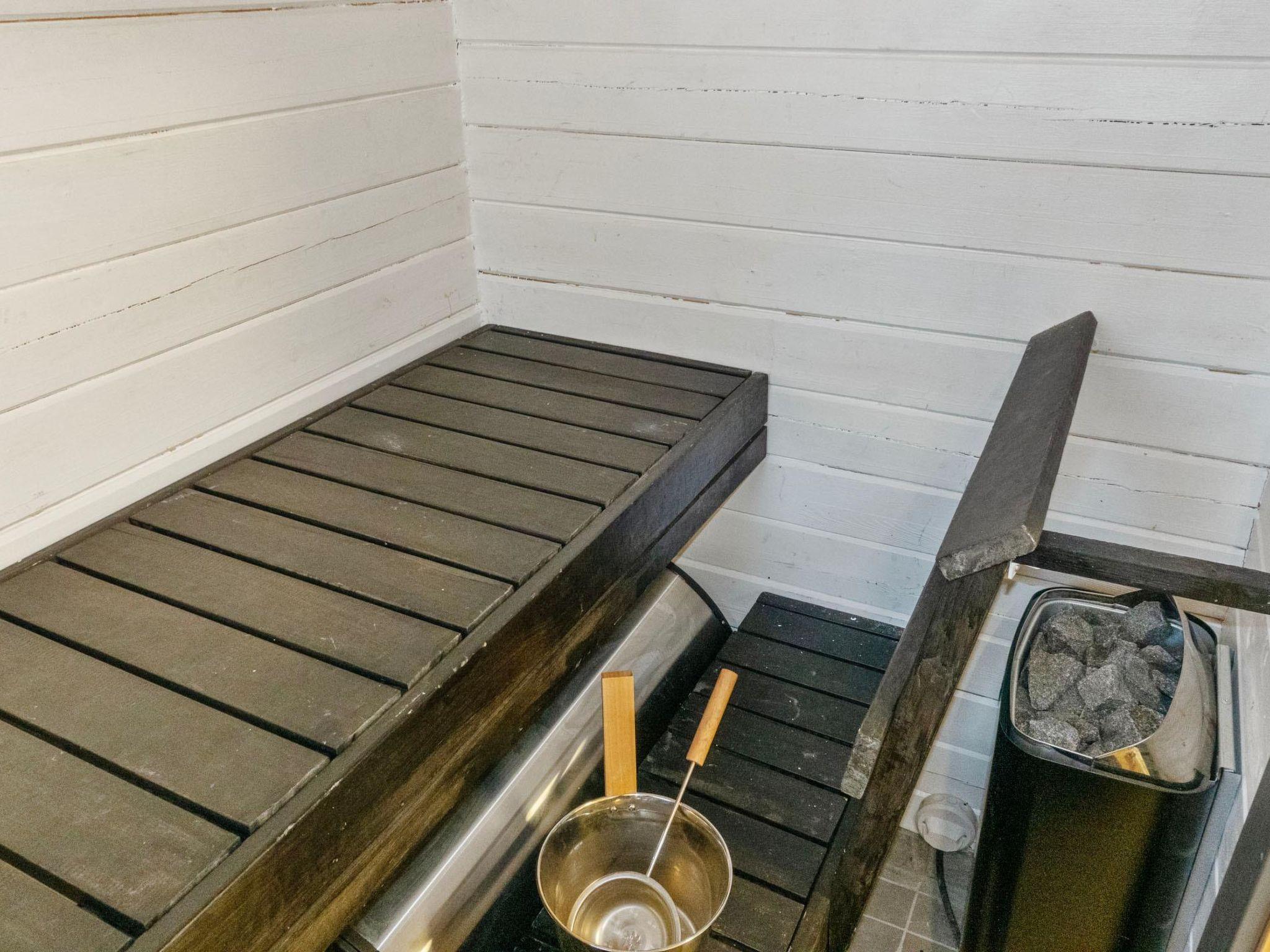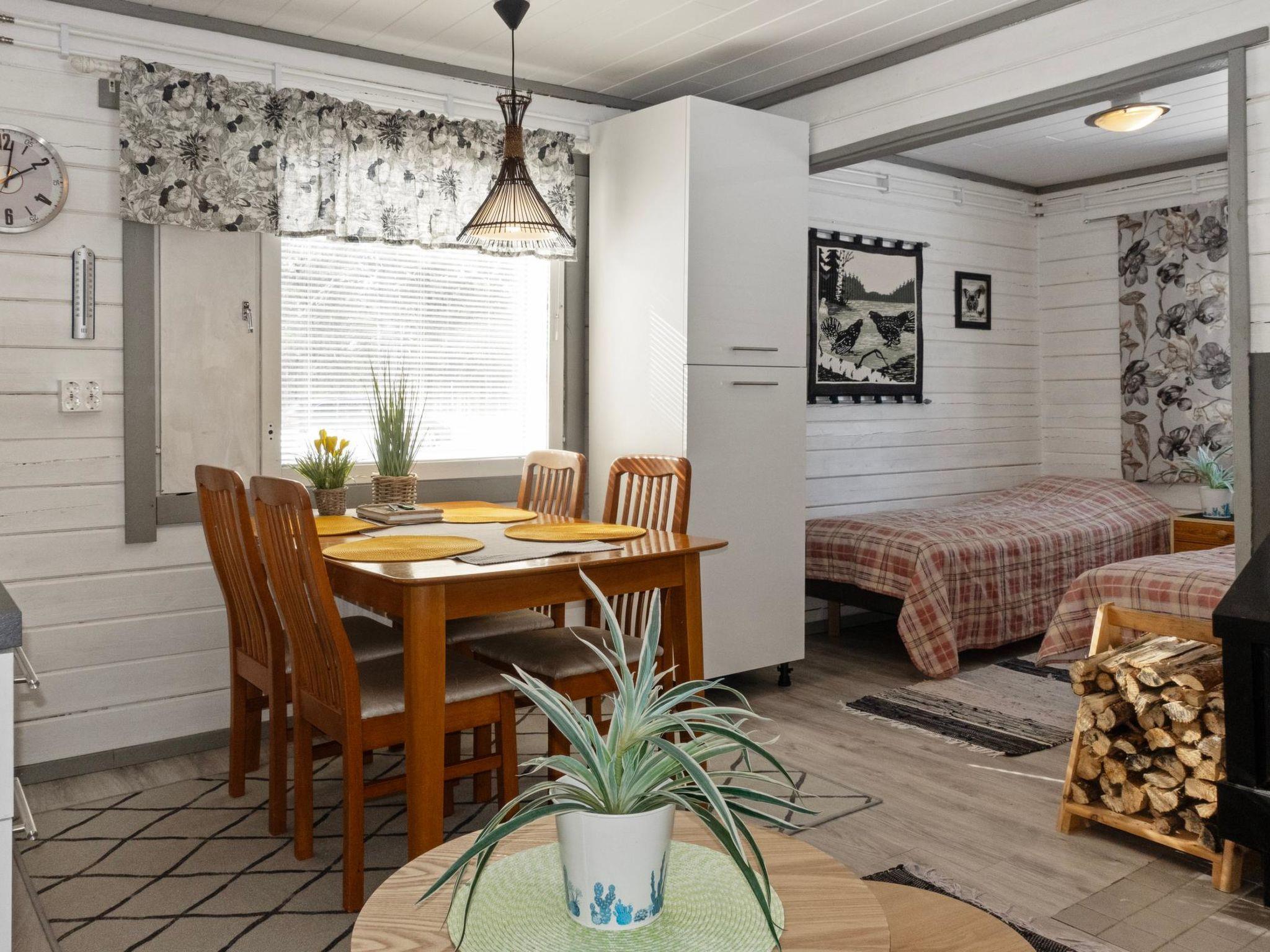 Log cabin, built in 2022. Sofa bed in the kitchen/living room, 2 beds in the alcove (no door, curtain, etc.), sauna, washroom/WC and small covered terrace.