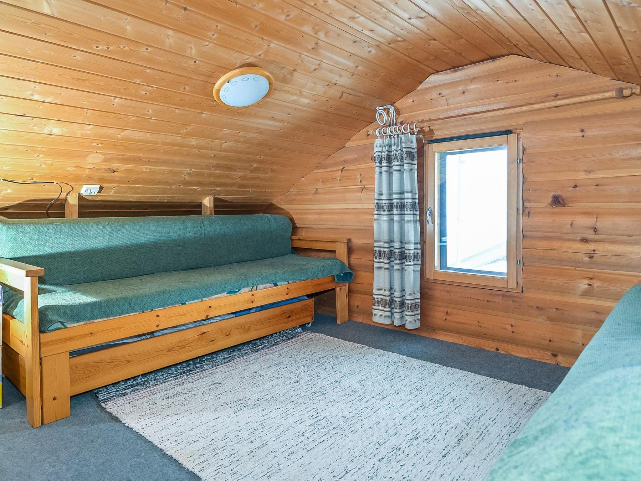 Round log cabin, built in 2006. Sofabed in the living room/kitchen (218 x 140 cm), bunk bed in the bedroom (lower bed is 160 x 200 cm wide, upper bed is 100 x200 cm wide), separate bed and spreadable sofa and 4 mattresses in the loft, steep stairs to the loft. Sauna, washroom and separate WC. Storage.