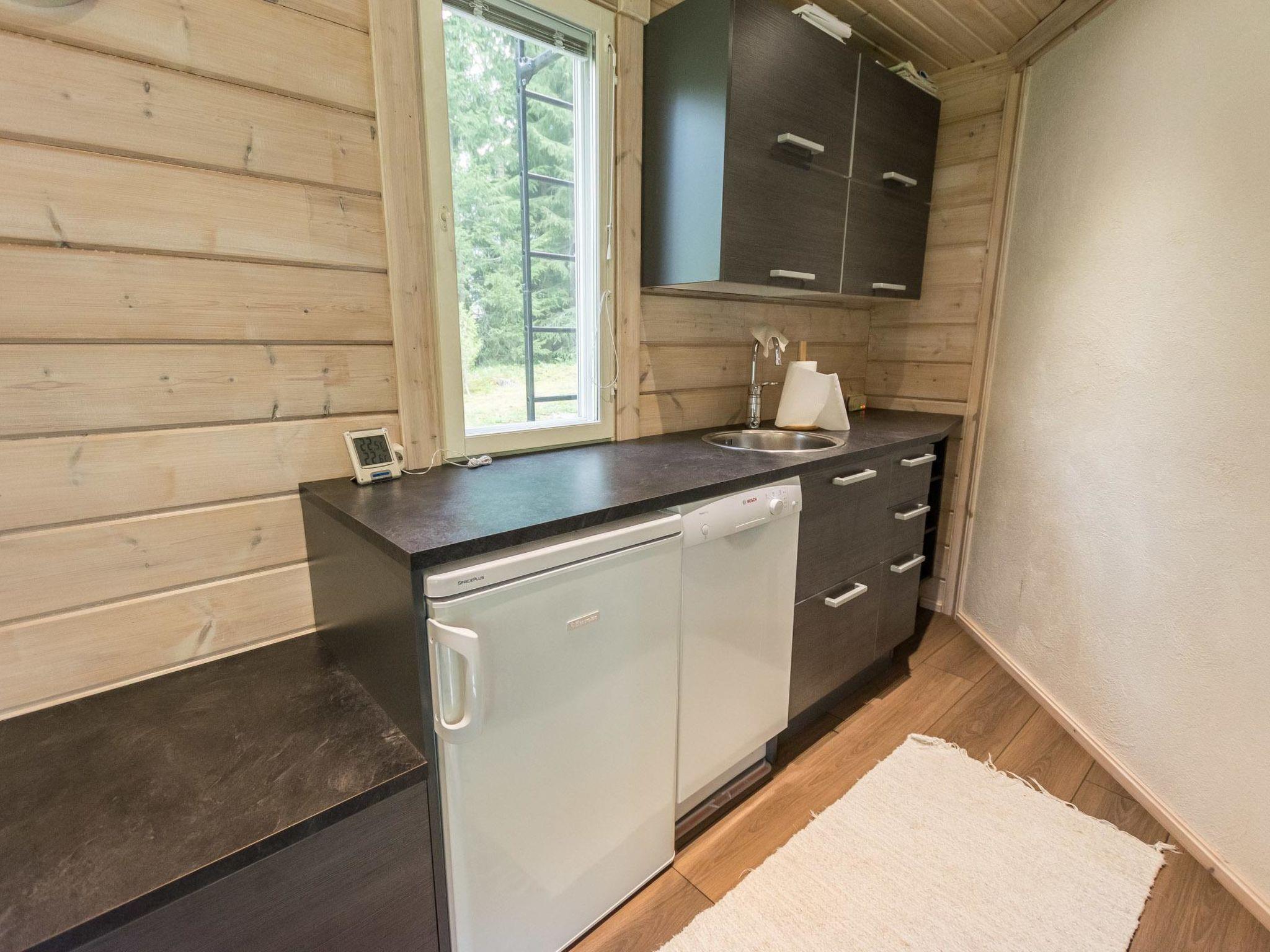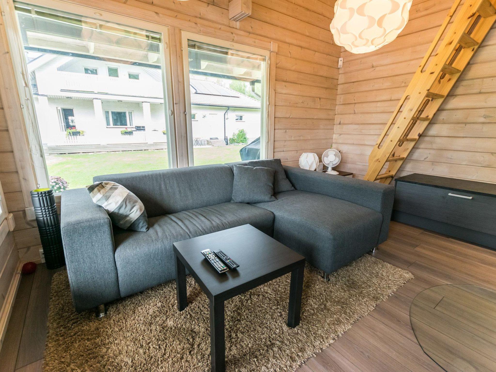 Log-built sauna building 25 m²: wood-heated sauna, TV lounge, 140 wide sofa bed and 2 mattresses, sleeping loft with 120 cm wide bed, separate WC, fridge, dishwasher.