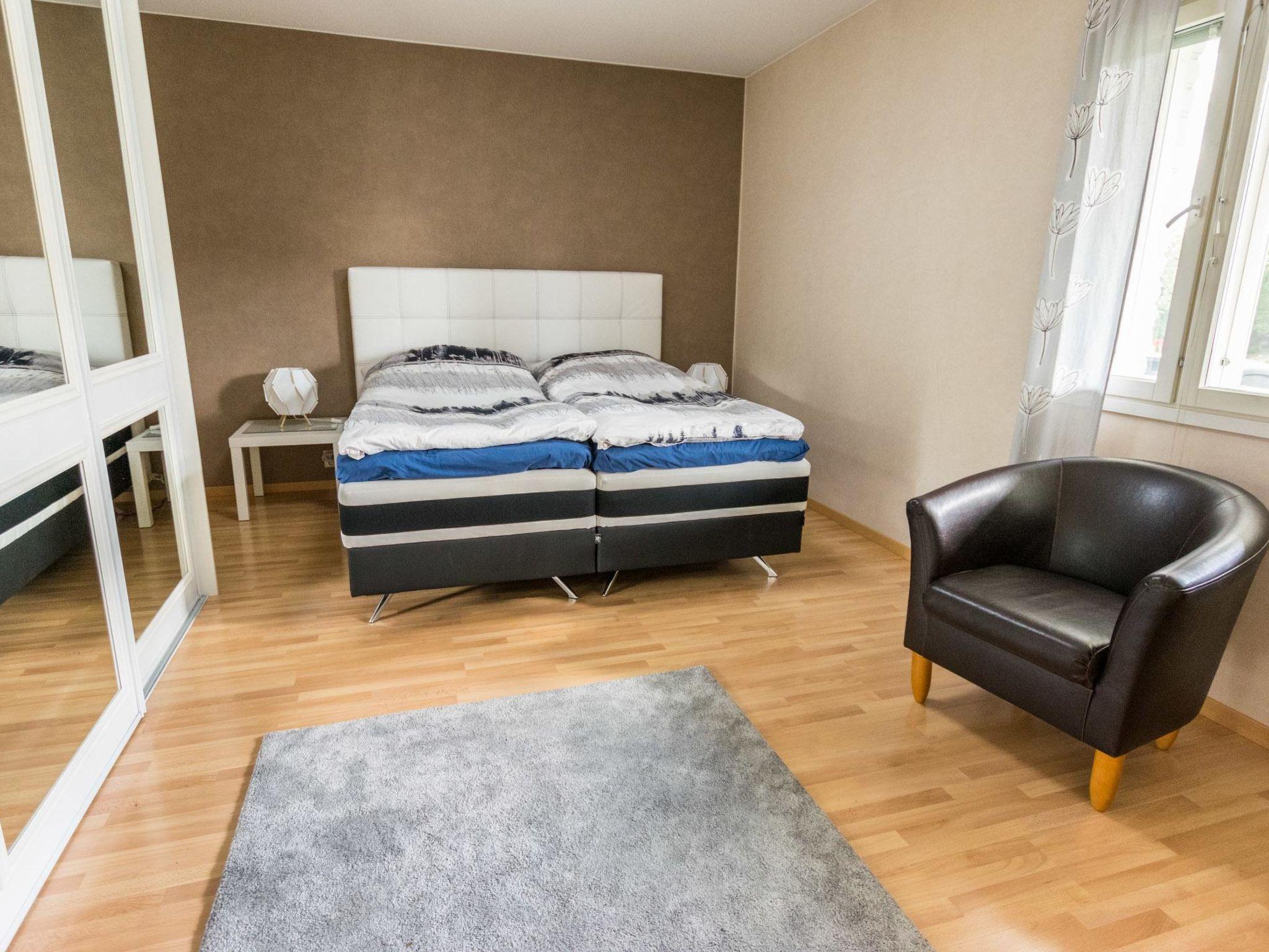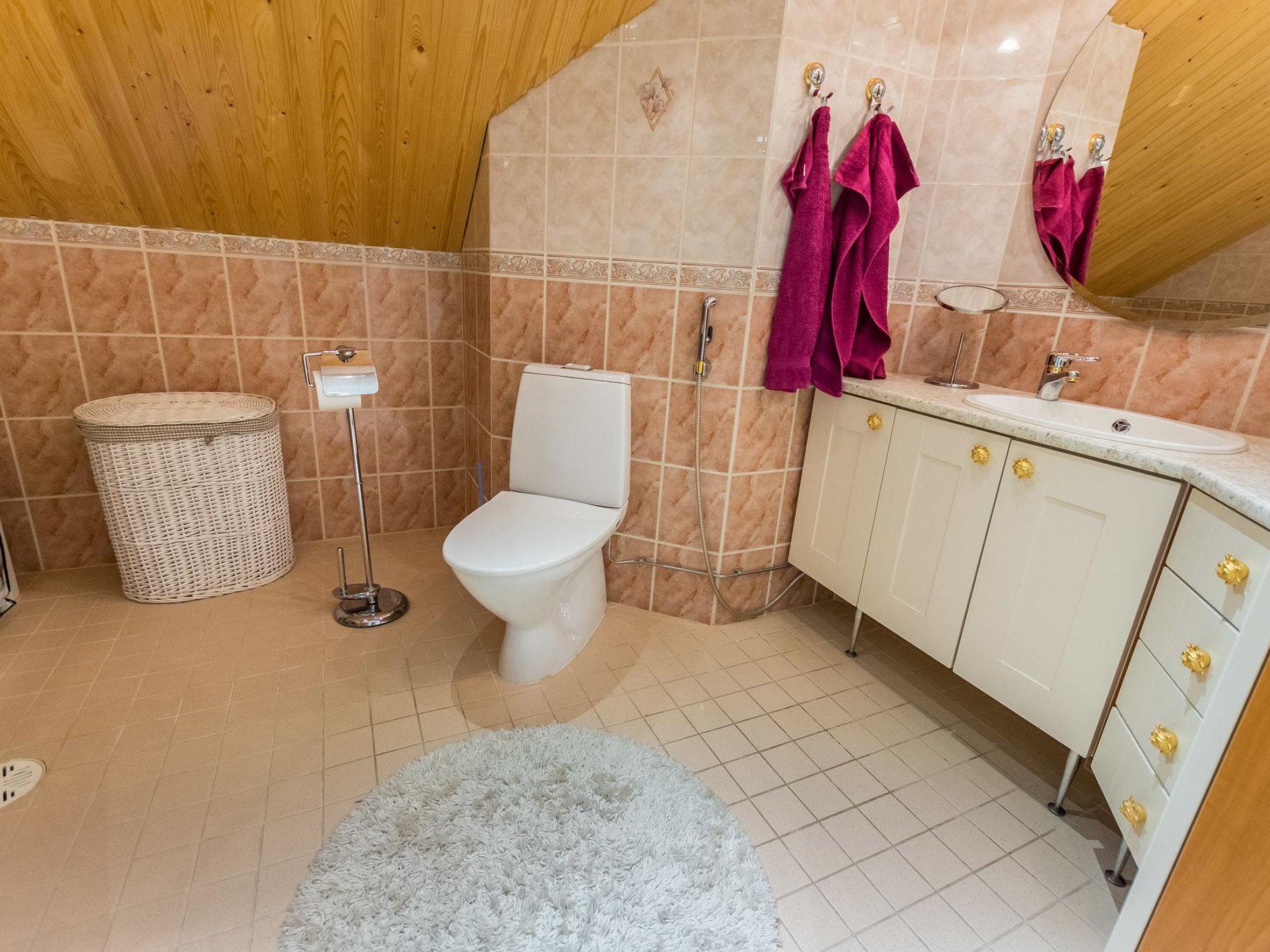 Main building 190 m²: On the ground floor, 3 bedrooms: 180 cm wide motor bed in the master bedroom (beds can be separated if necessary), in the second bedroom a 160 cm wide double bed and in the third two single beds. Kitchen, separate WC, instant ready electric sauna stove, hydro massage bath. On the upper floor, 2 bedrooms with two separate beds each, separate WC, living area. In alcove 2 beds, laver to be spread and mattress.