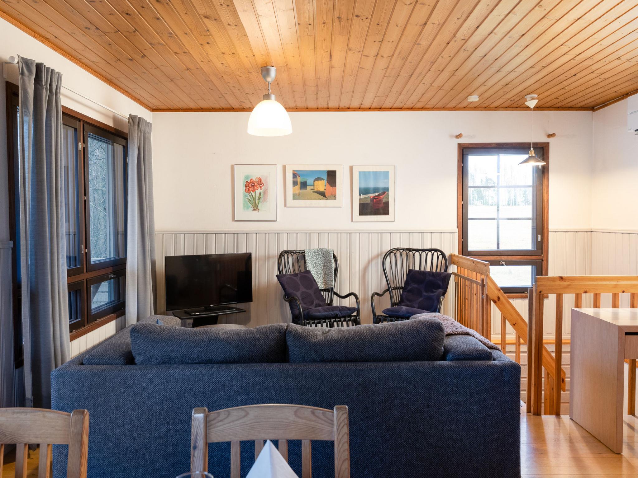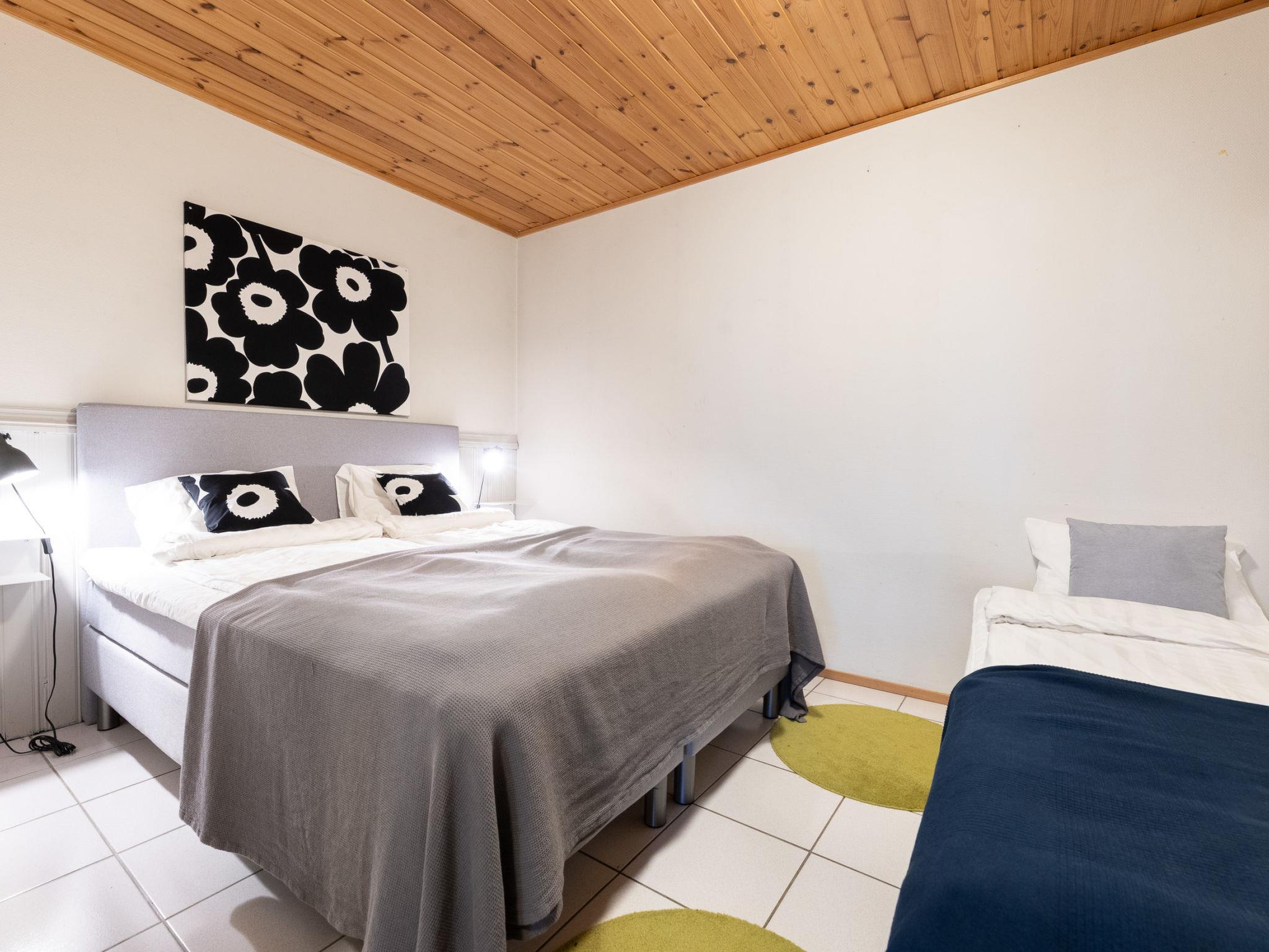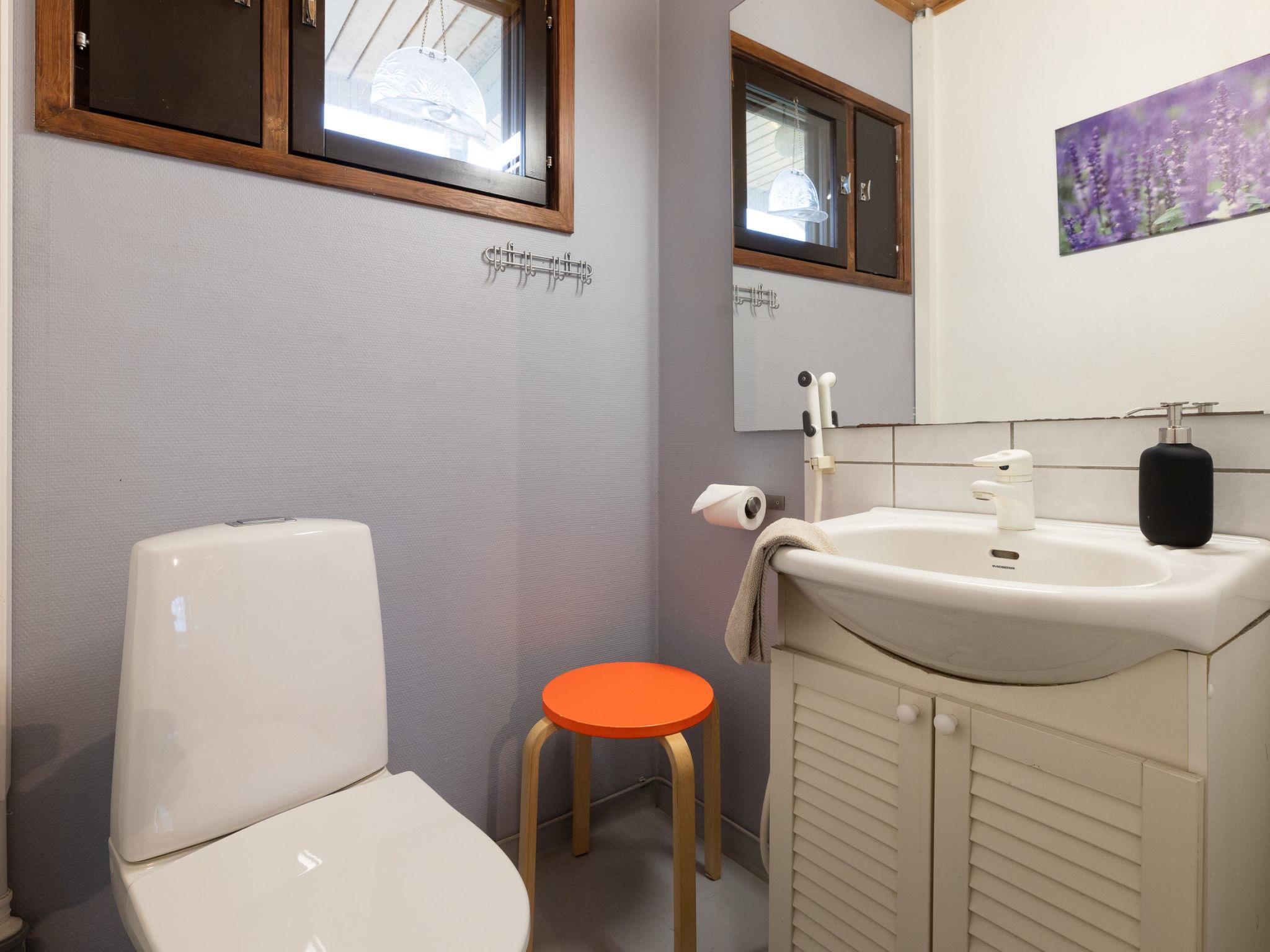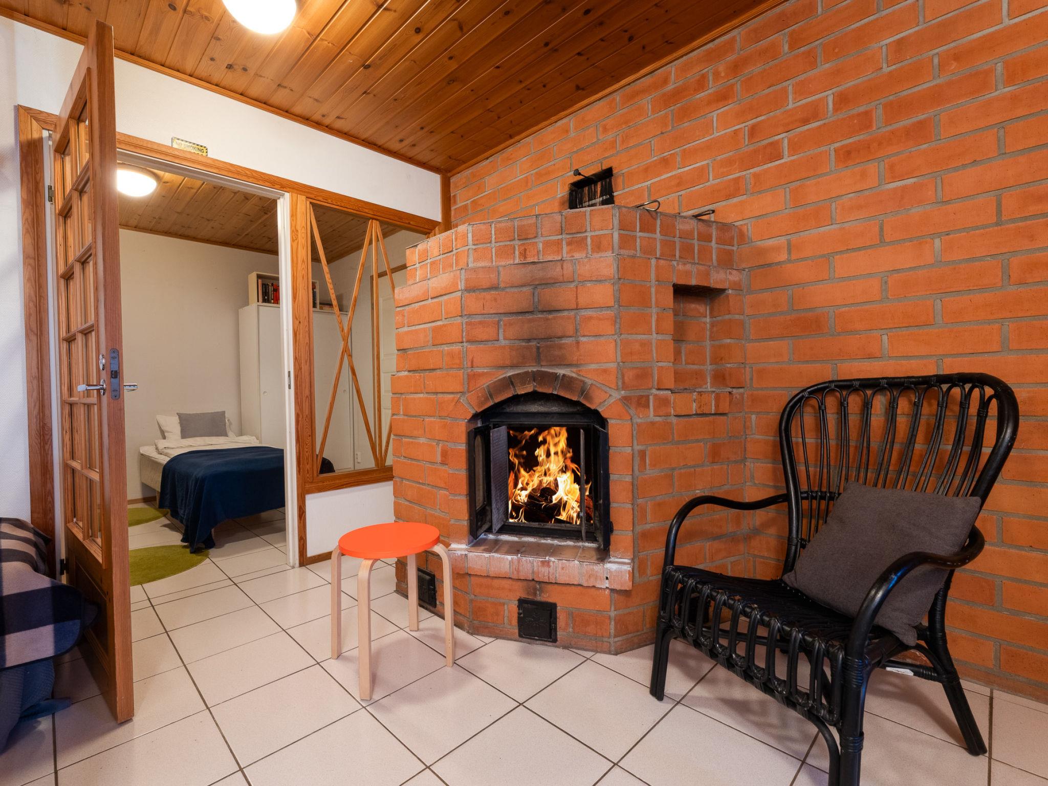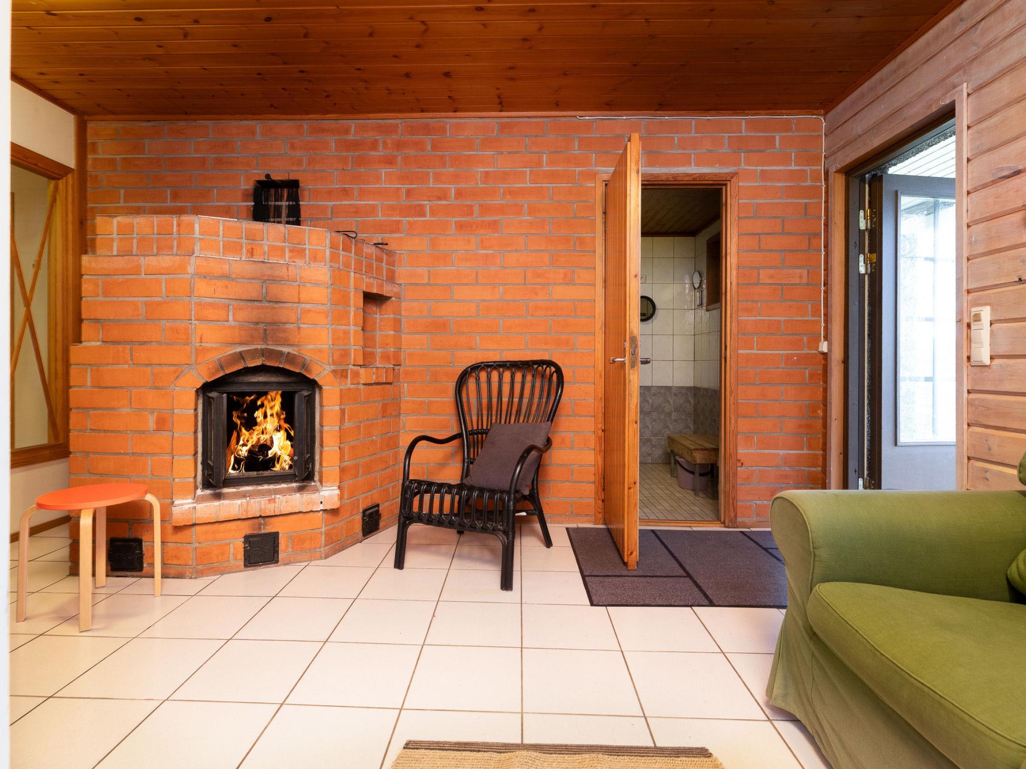 Downstairs: bedroom 3 beds, room with fireplace with 1 extra bed, sauna (wood-burning stove), washroom (shower). Cottage has balcony and open terrace towards evening sun.