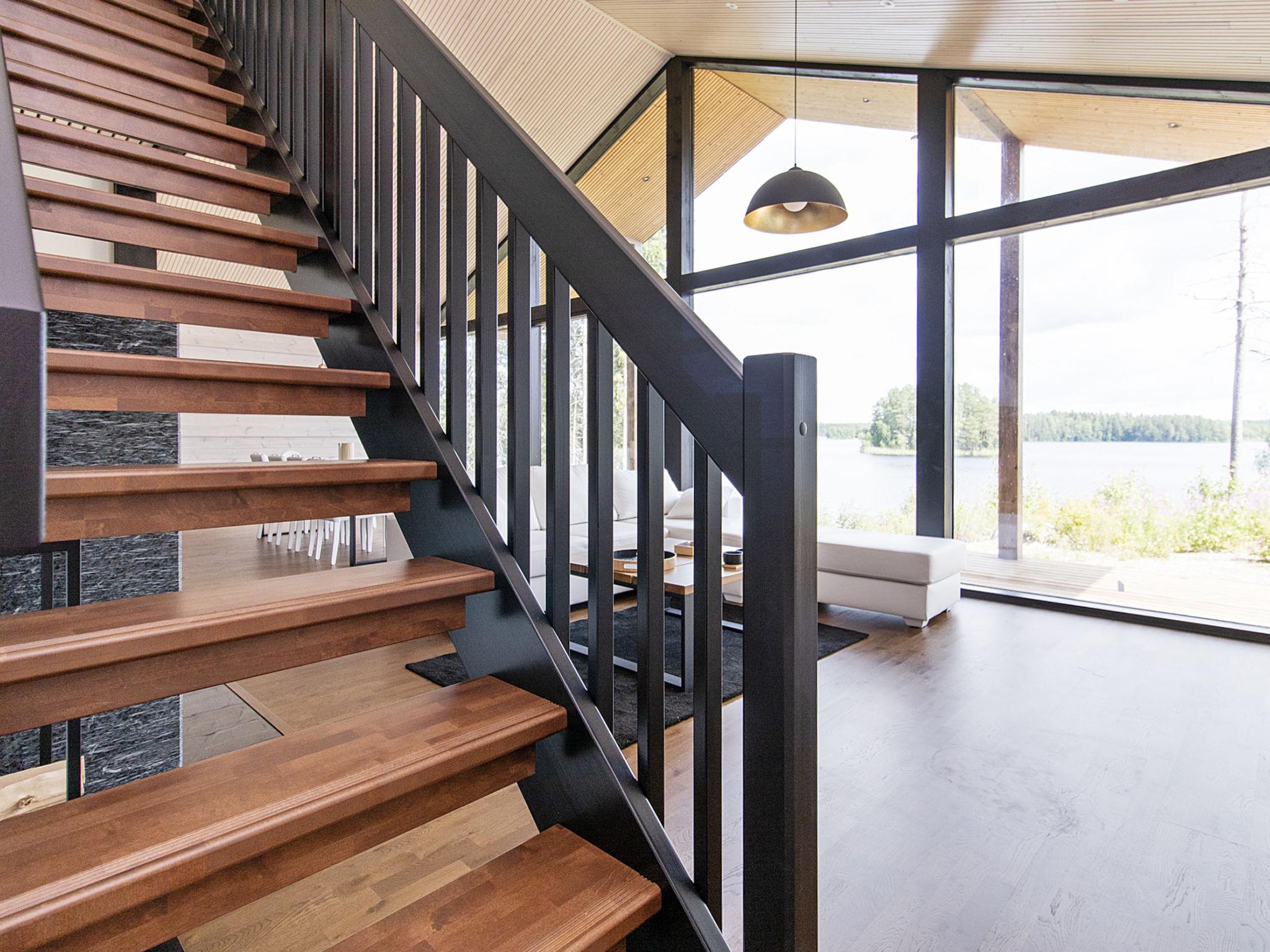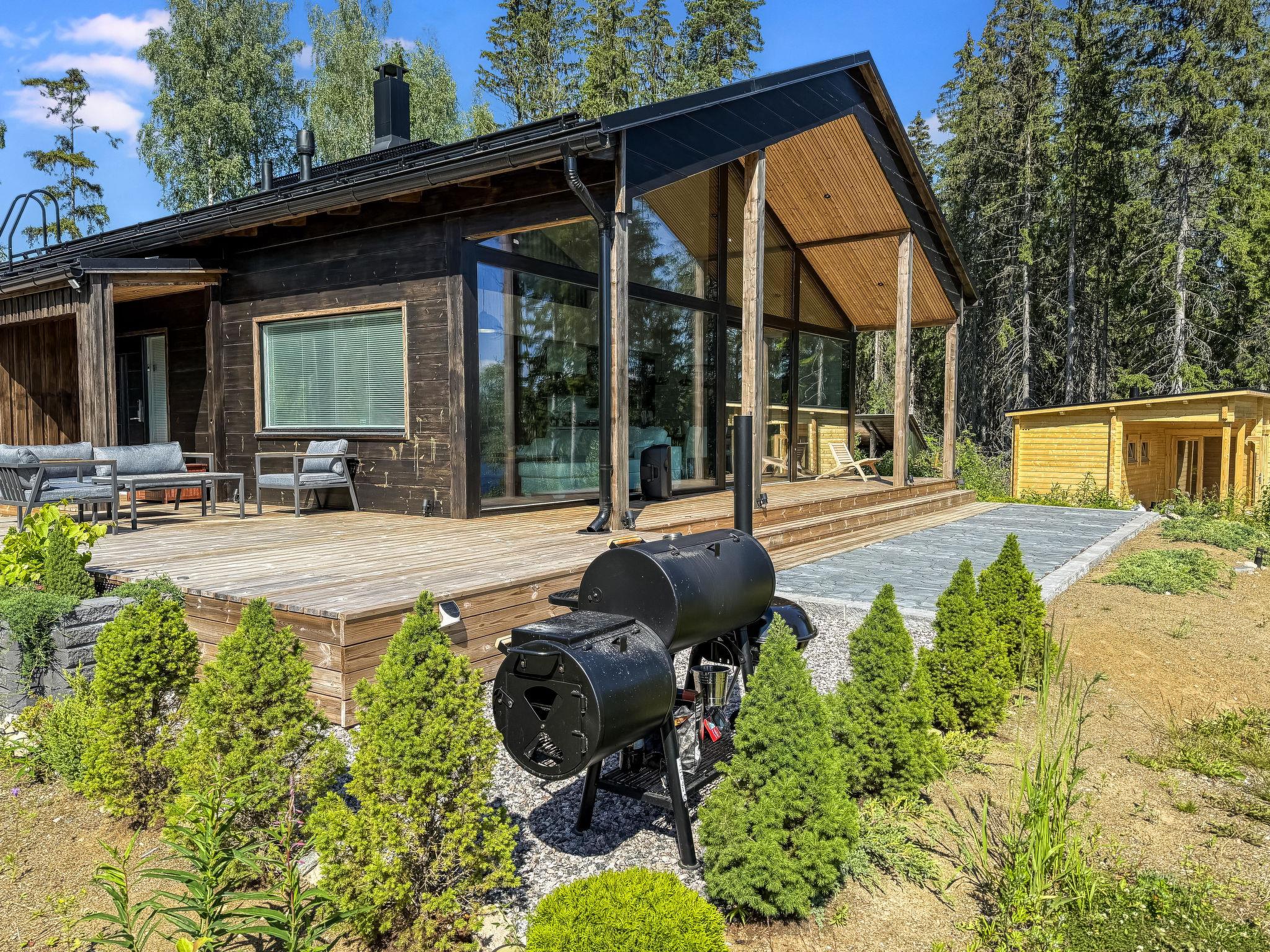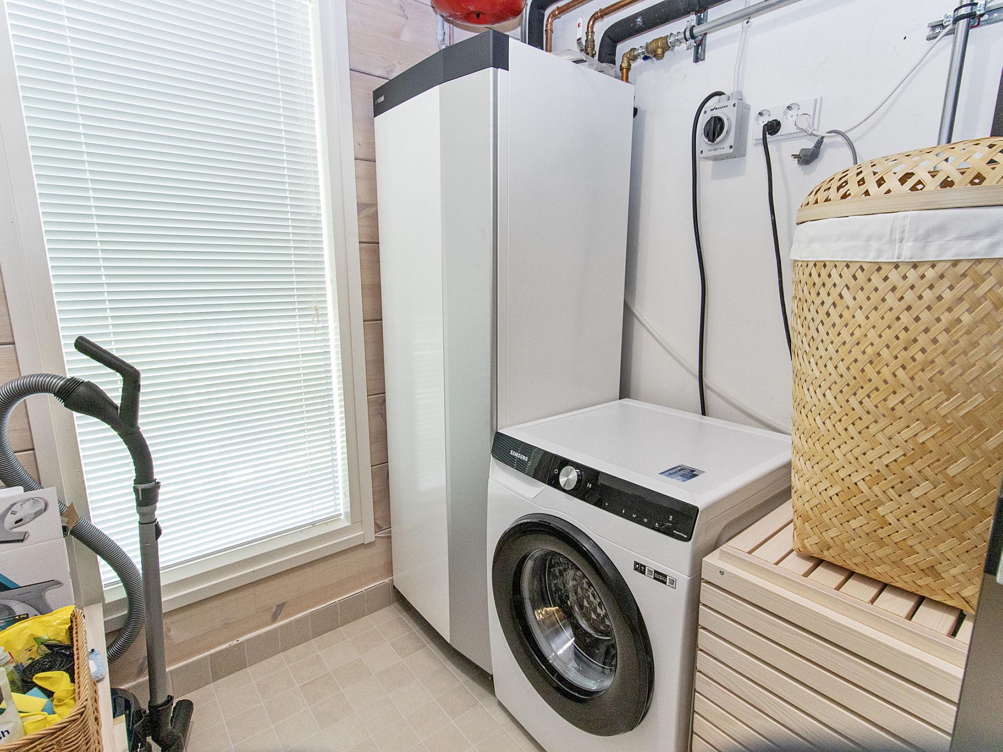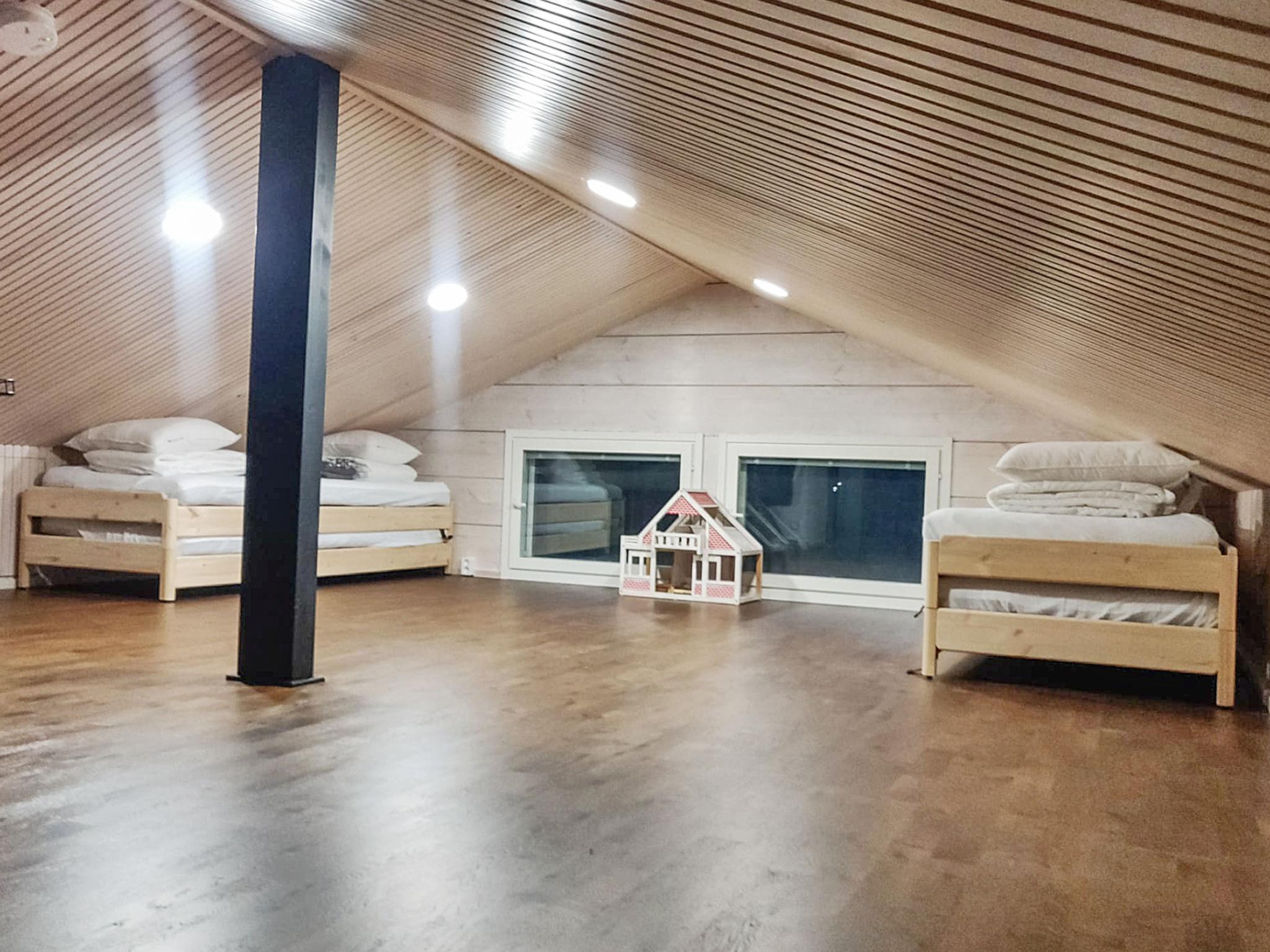 There is a large landscape window which gives a wonderful view of the fishy Lake Sääjärvi. The well-equipped living room and kitchen are open to the ceiling. In addition there are 2 spacious bedrooms on the ground floor. One with double bed (160 cm) and other with bunk bed (2 x 80 cm). Upstairs a large low loft with 2 beds (80 cm). In addition an utility room.