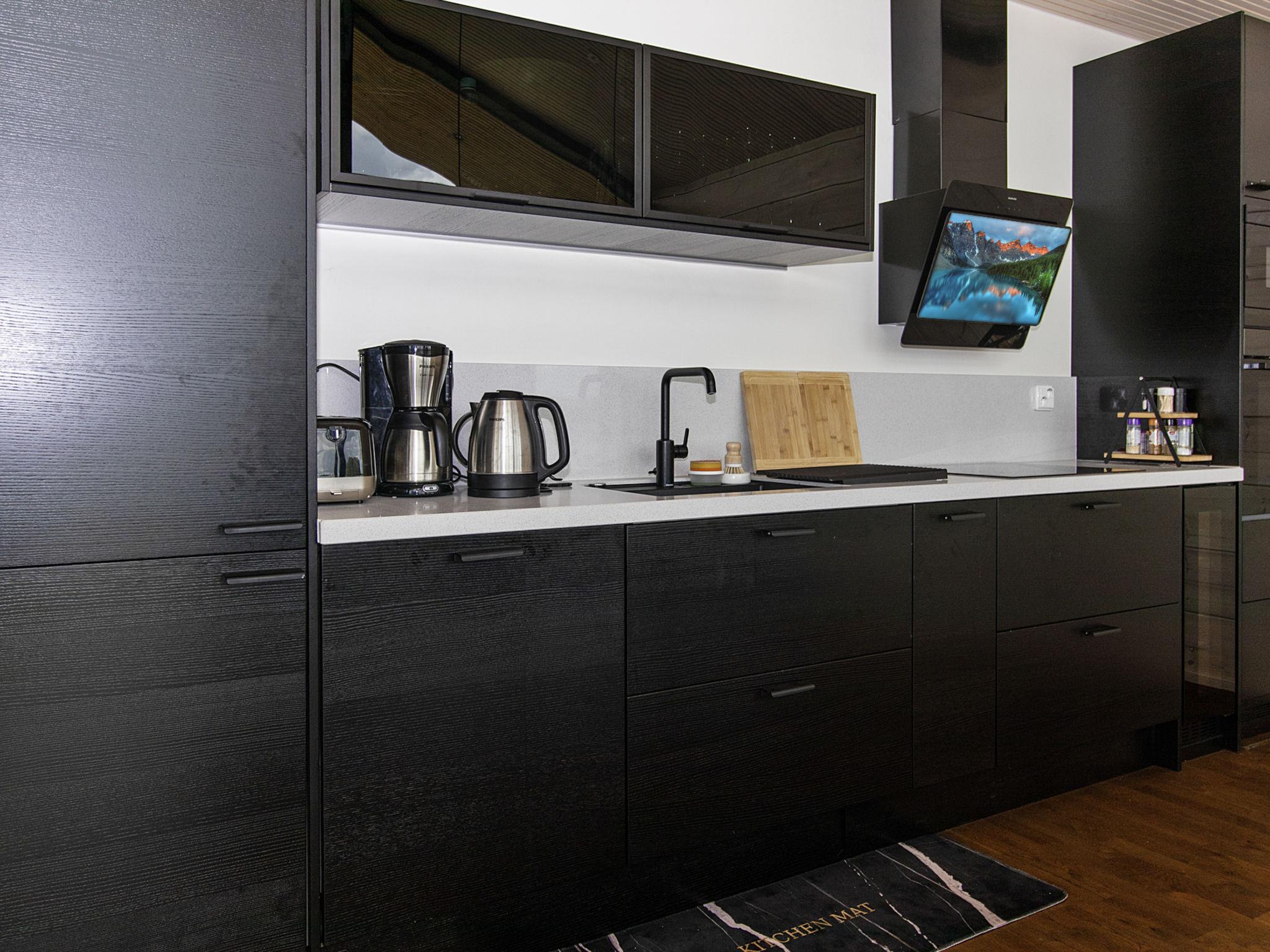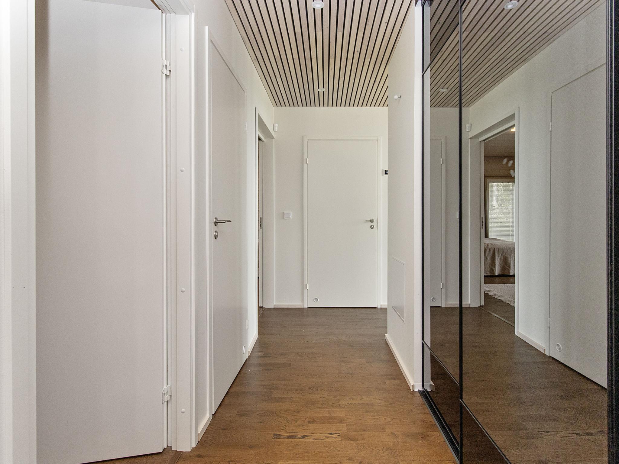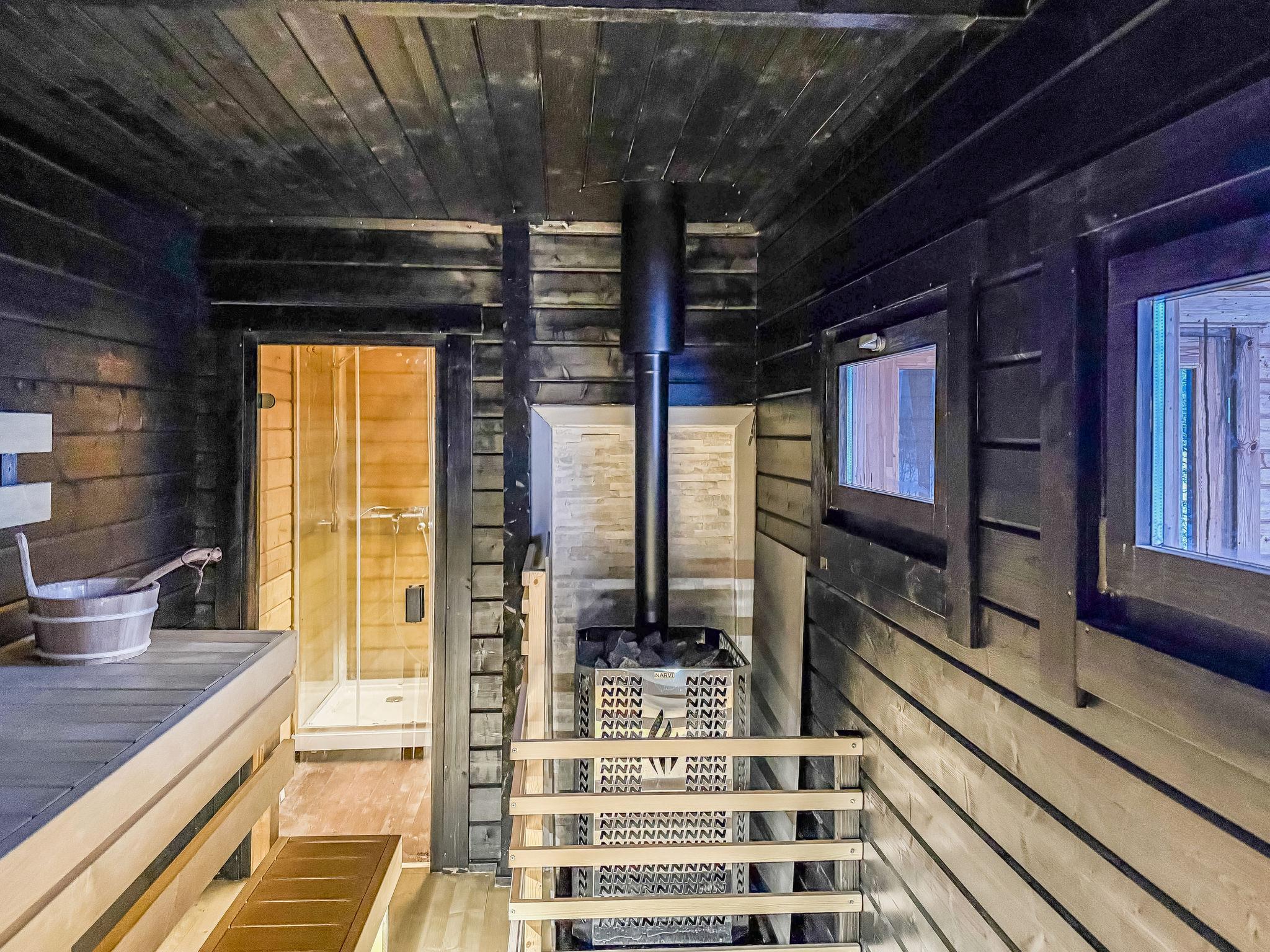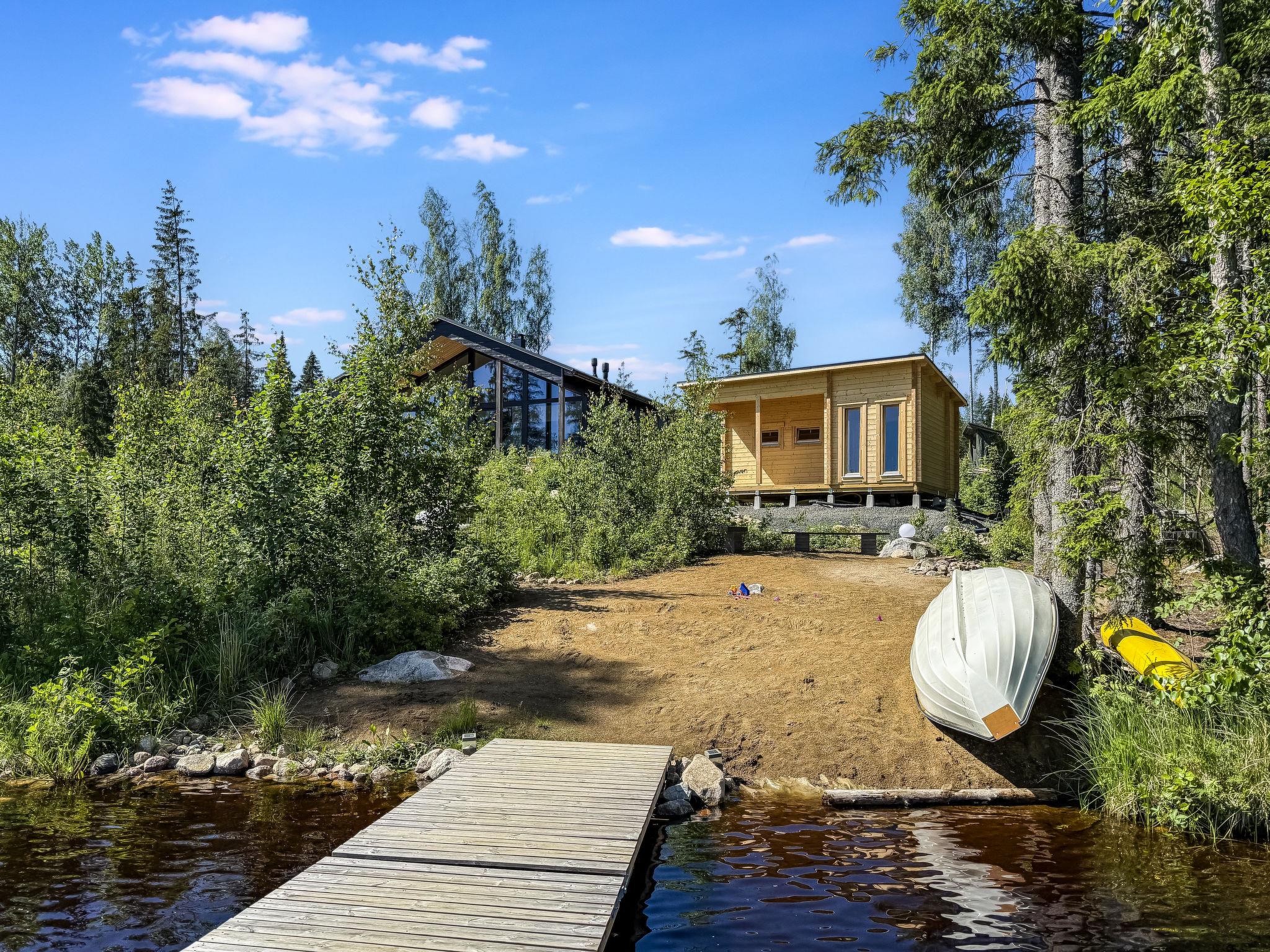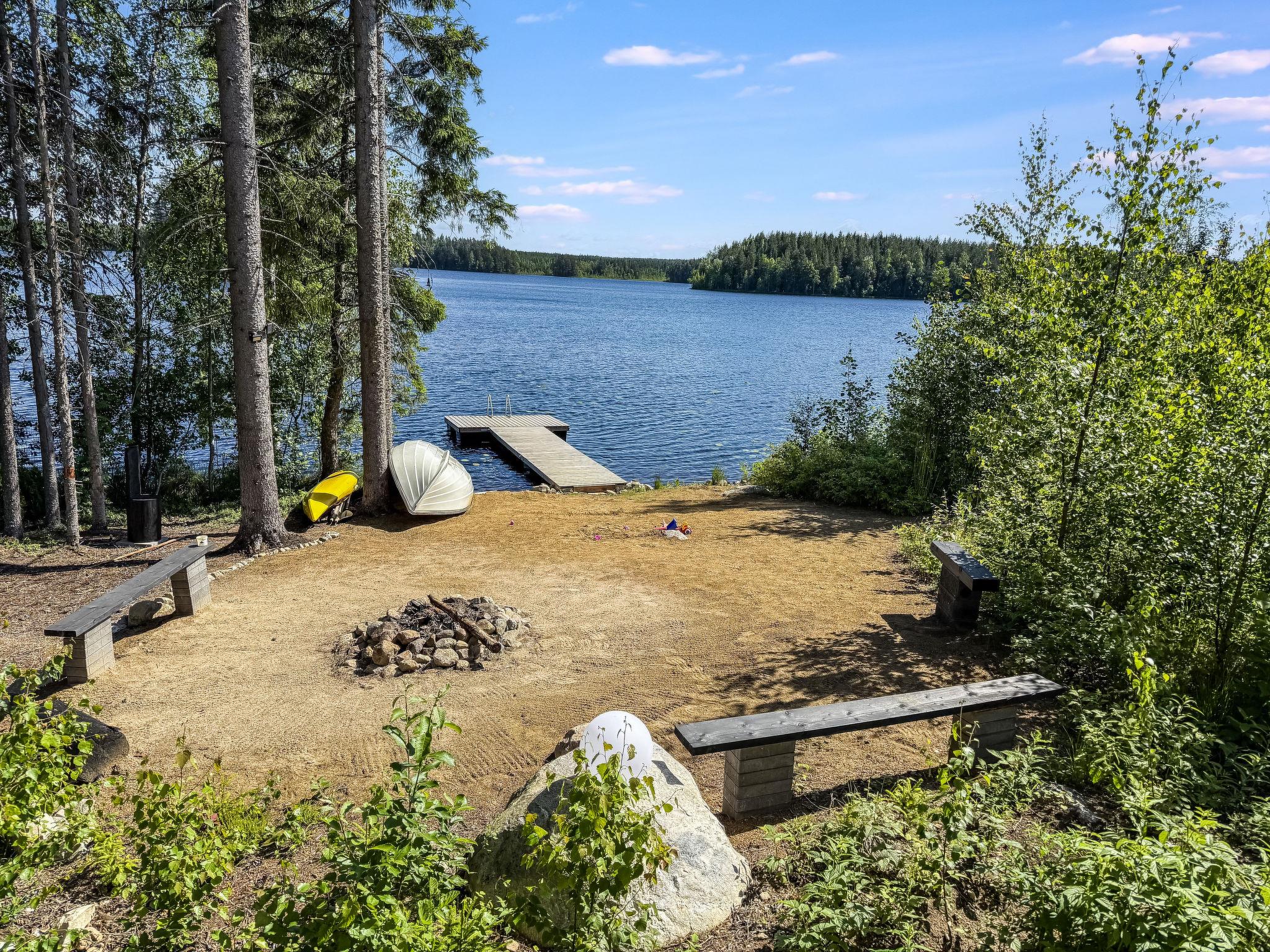 There is a large landscape window which gives a wonderful view of the fishy Lake Sääjärvi. The well-equipped living room and kitchen are open to the ceiling. In addition there are 2 spacious bedrooms on the ground floor. One with double bed (160 cm) and other with bunk bed (2 x 80 cm). Upstairs a large low loft with 2 beds (80 cm). In addition an utility room.