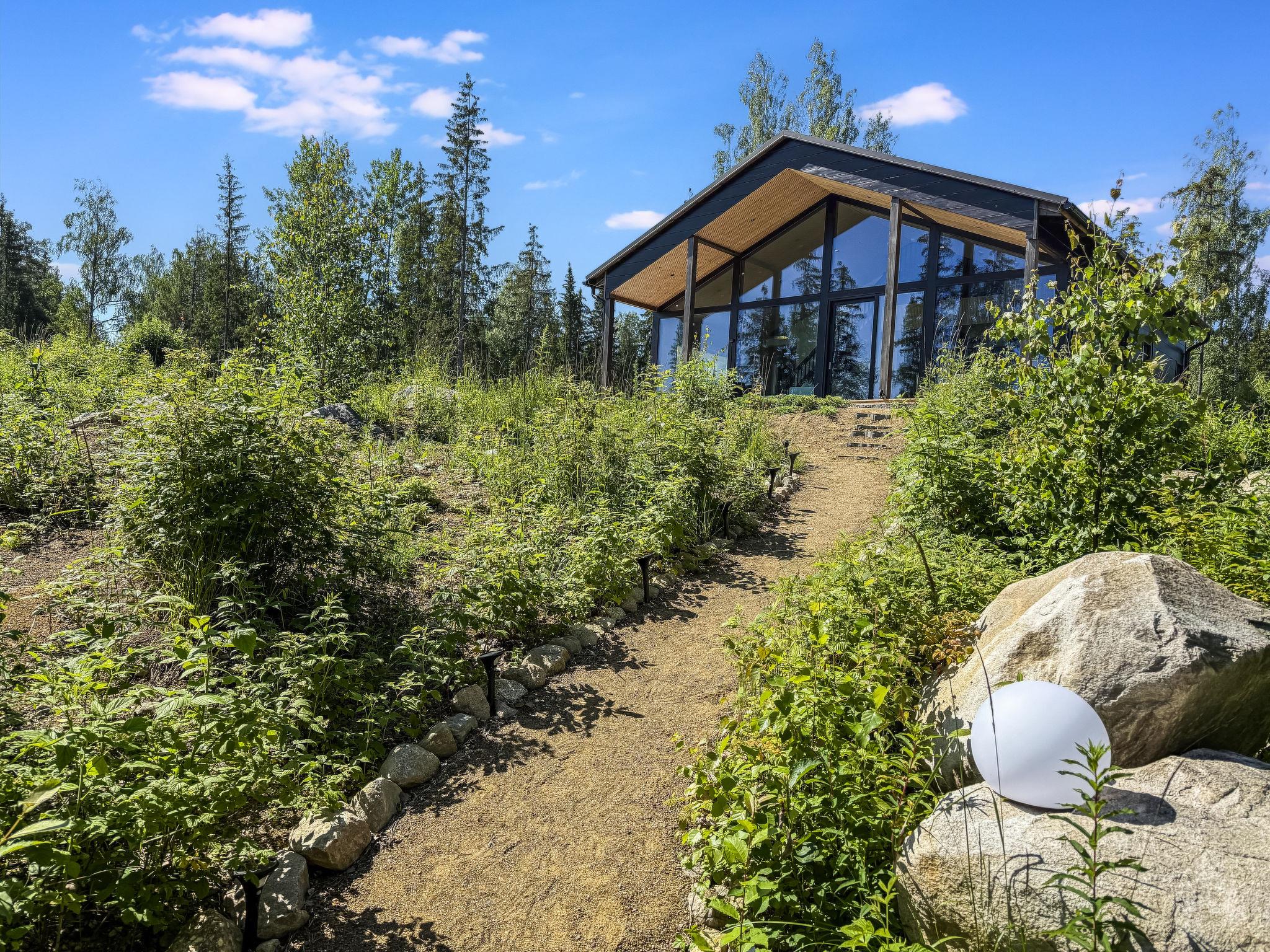 110 km to the north from Helsinki in Harviala, Janakkala, this modern 105 m² lakeside villa was built in 2023 by lake Sääjärvi. There is a campfire site and a pier by the lake. The bottom of the lake is soft near the shore, and you can access it for swimming from the pier.