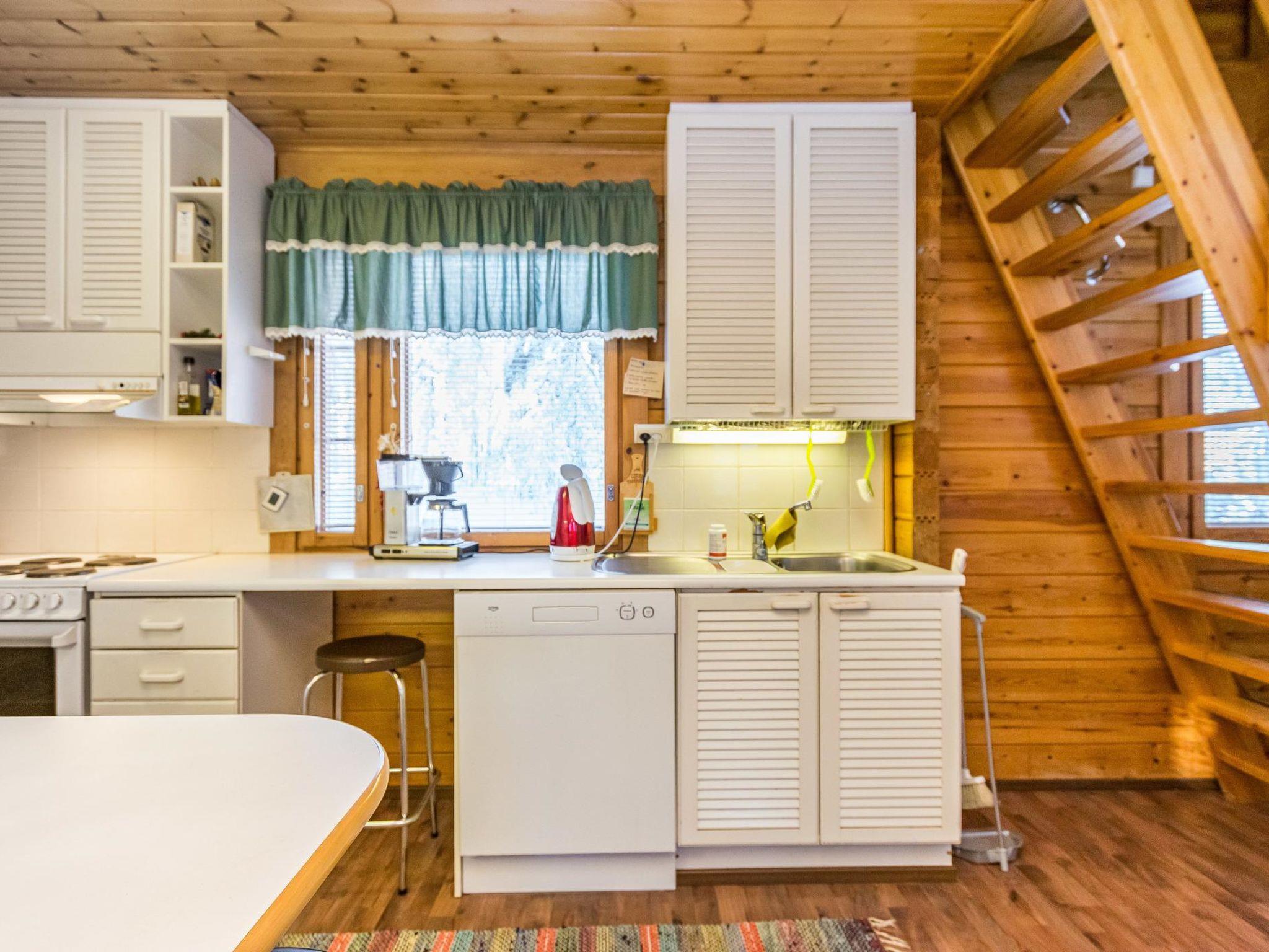 Kitchen, sleeping corner including a bunk bed, loft lobby, sauna, shower room/toilet, balcony, terrace, fireplace.