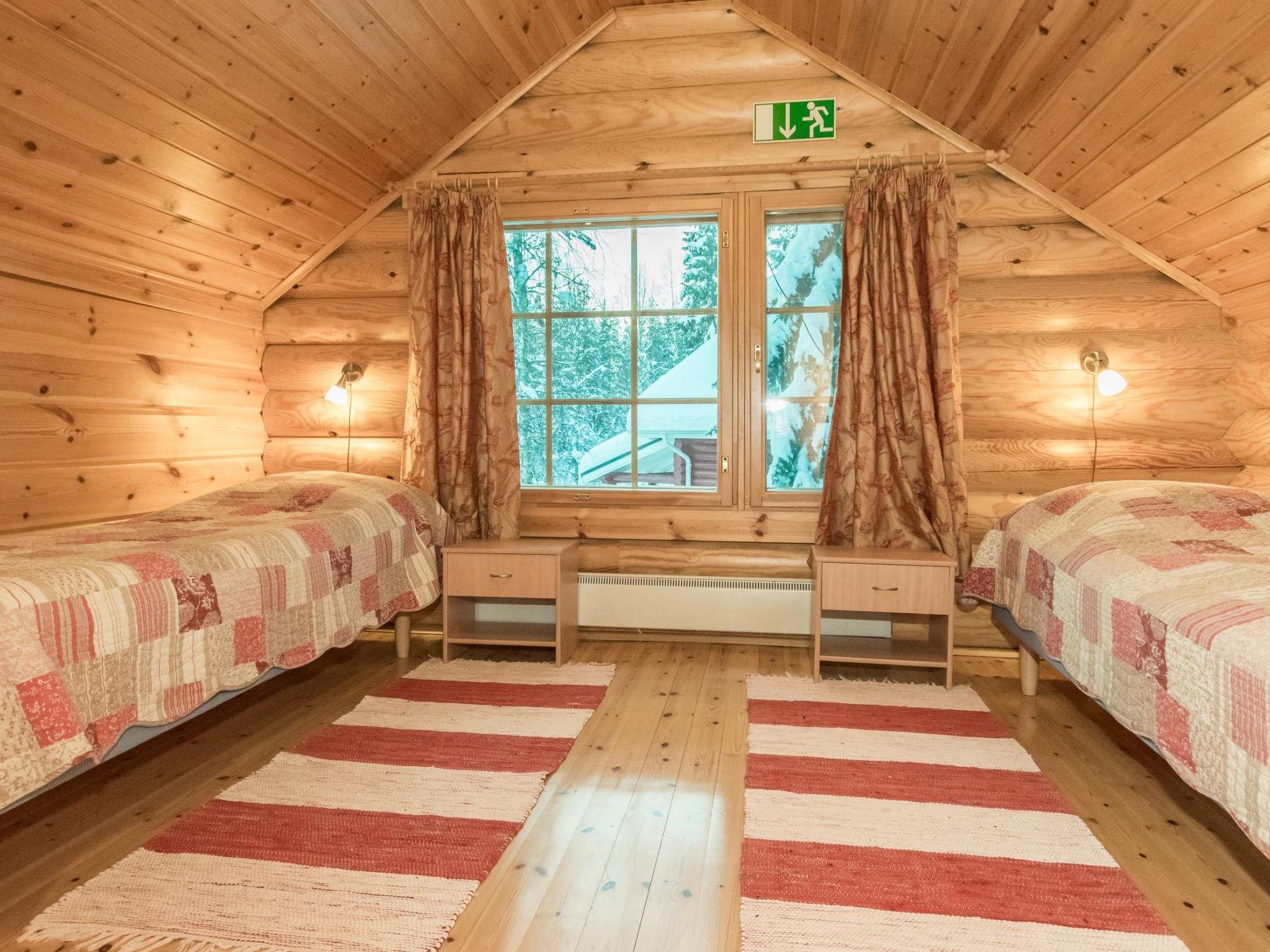 Log cottage located in the Ukkohalla tourism centre, for 6 persons, 114m², built in 2008, kitchen, 2 bedrooms (one is on the loft), loft lobby, sauna/electric sauna, shower room/toilet, separate toilet on the loft, fire place, wifi until 18.1.2025. Price includes 1 bag of firewood.