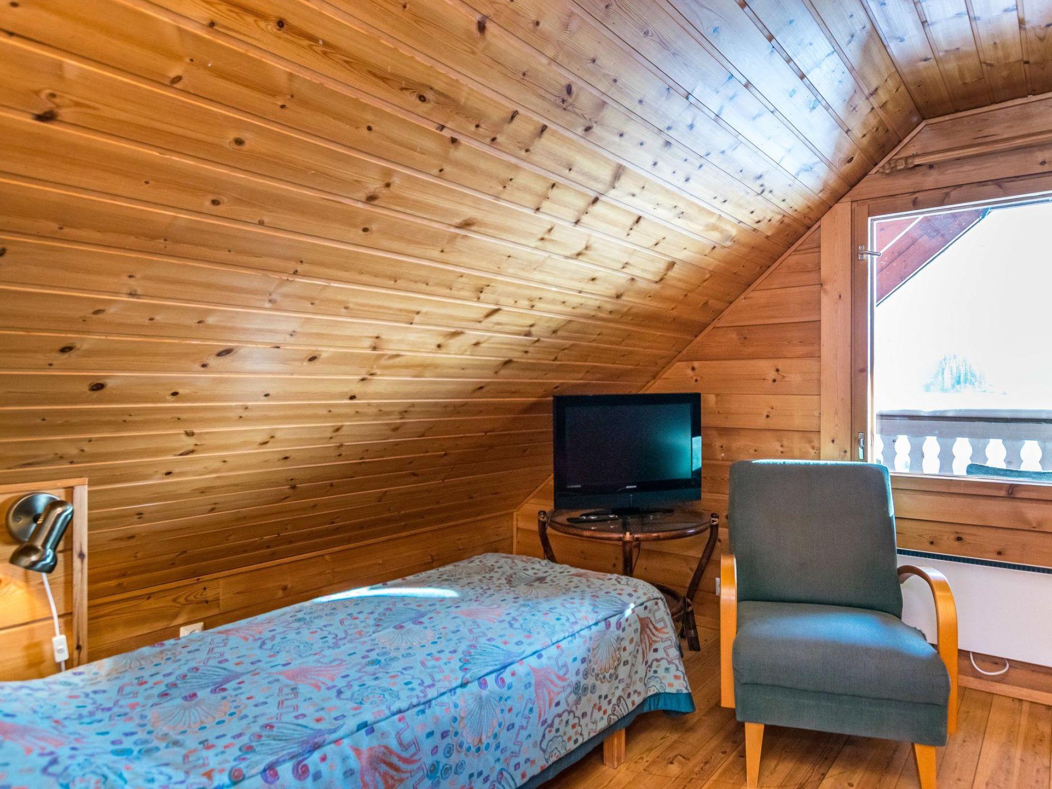 The upstairs of a semi-detached house located in the Ukkohalla tourism centre, 8 + 2 persons, 45m2 + loft 30m2, built in 1992. Kitchen, 2 bedrooms with bunk beds, loft lobby, sauna, shower room/toilet, balcony, fireplace, 2 double beds and 2 beds on the loft.