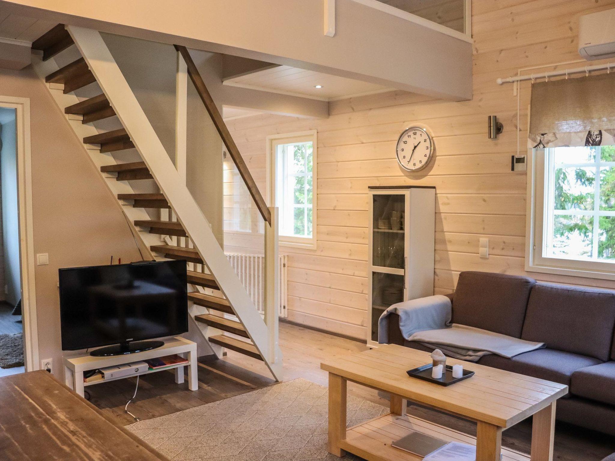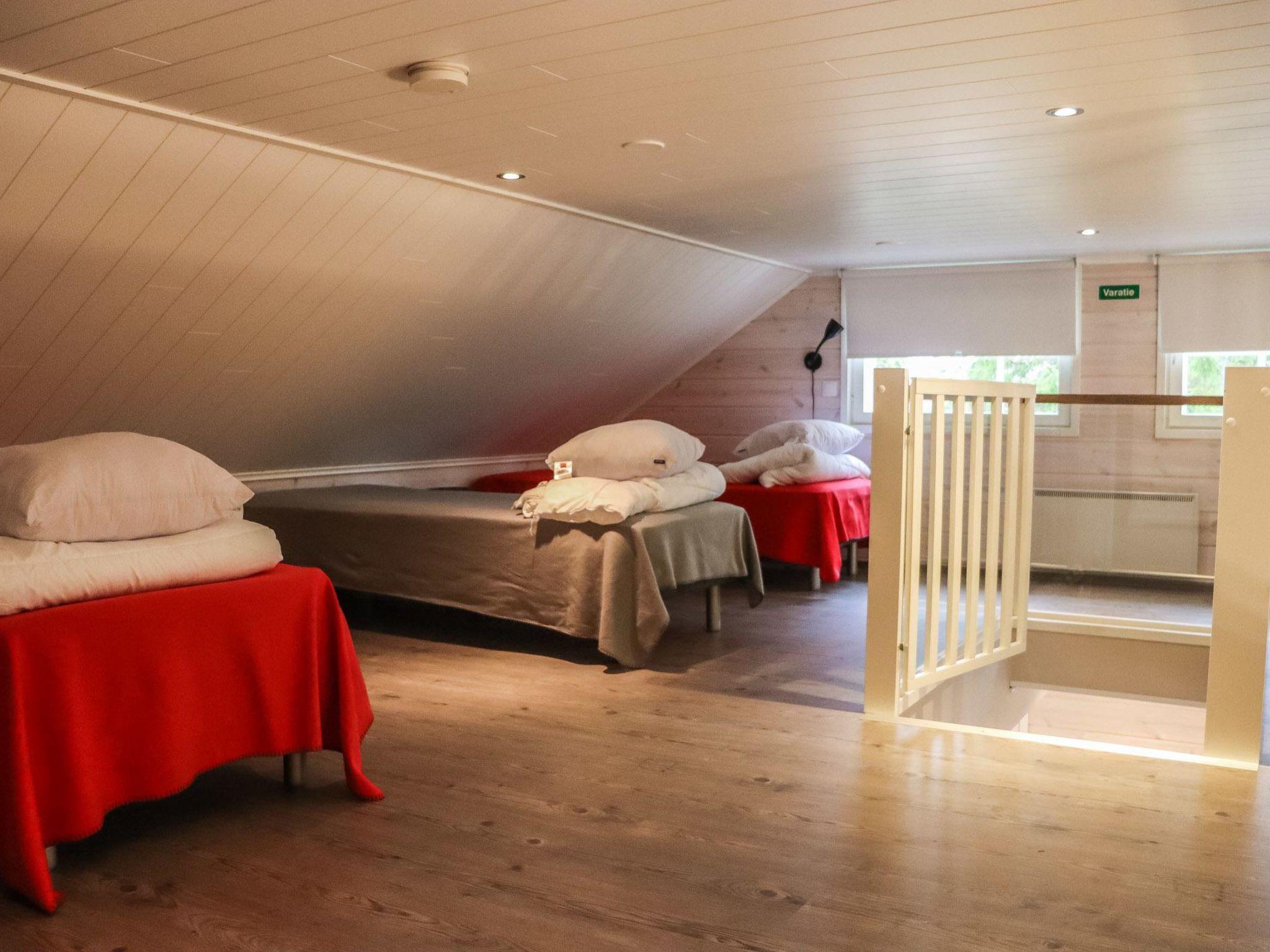 Kitchen, 3 bedrooms (one on the loft), loft lobby, sauna, shower room, 2 separate toilets, dressing room, vestibule, terrace, storage, fireplace and firewood. 2 bedrooms with 2 x 80 cm beds/room, a double bed in one of the bedrooms, a sofa-bed+ 2 spare mattresses on the loft. WLAN.